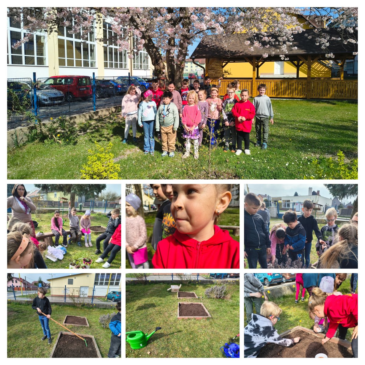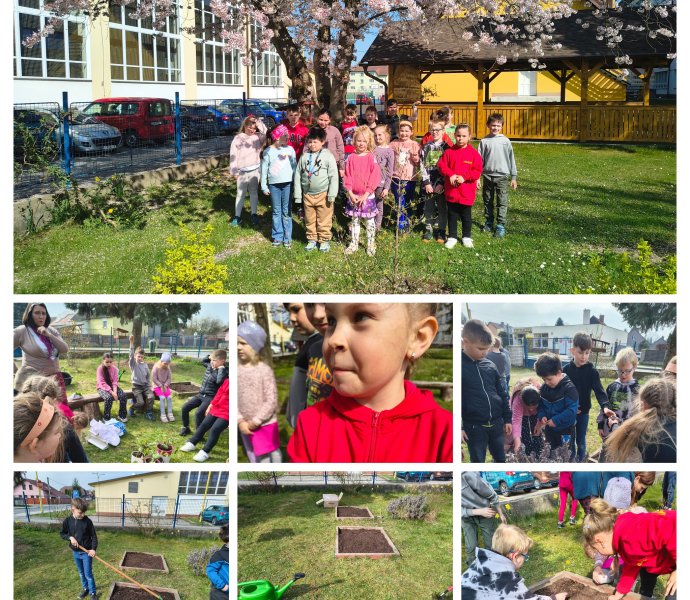 První jarní paprsky nás nenechaly v klidu a vylákaly nás ze tříd ven. Žáci 2. ročníku se s chutí pustili do práce a proměnili se v malé zahradníky. Společně jsme: