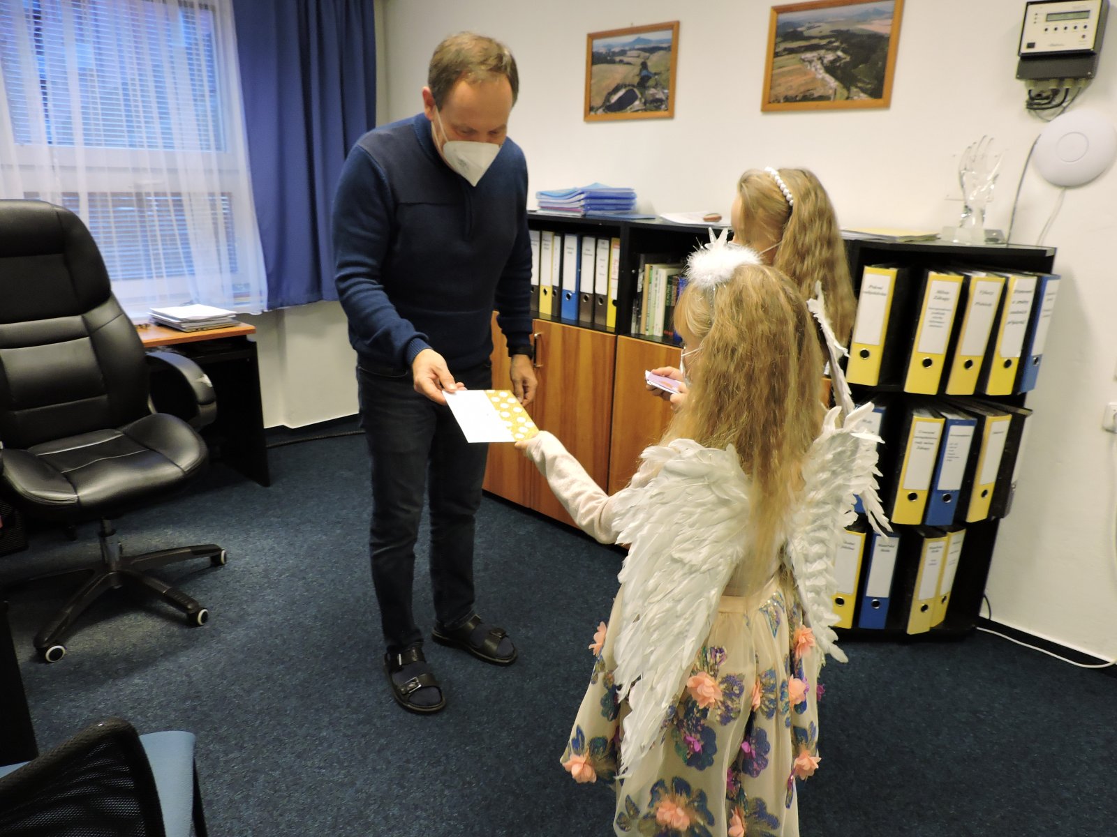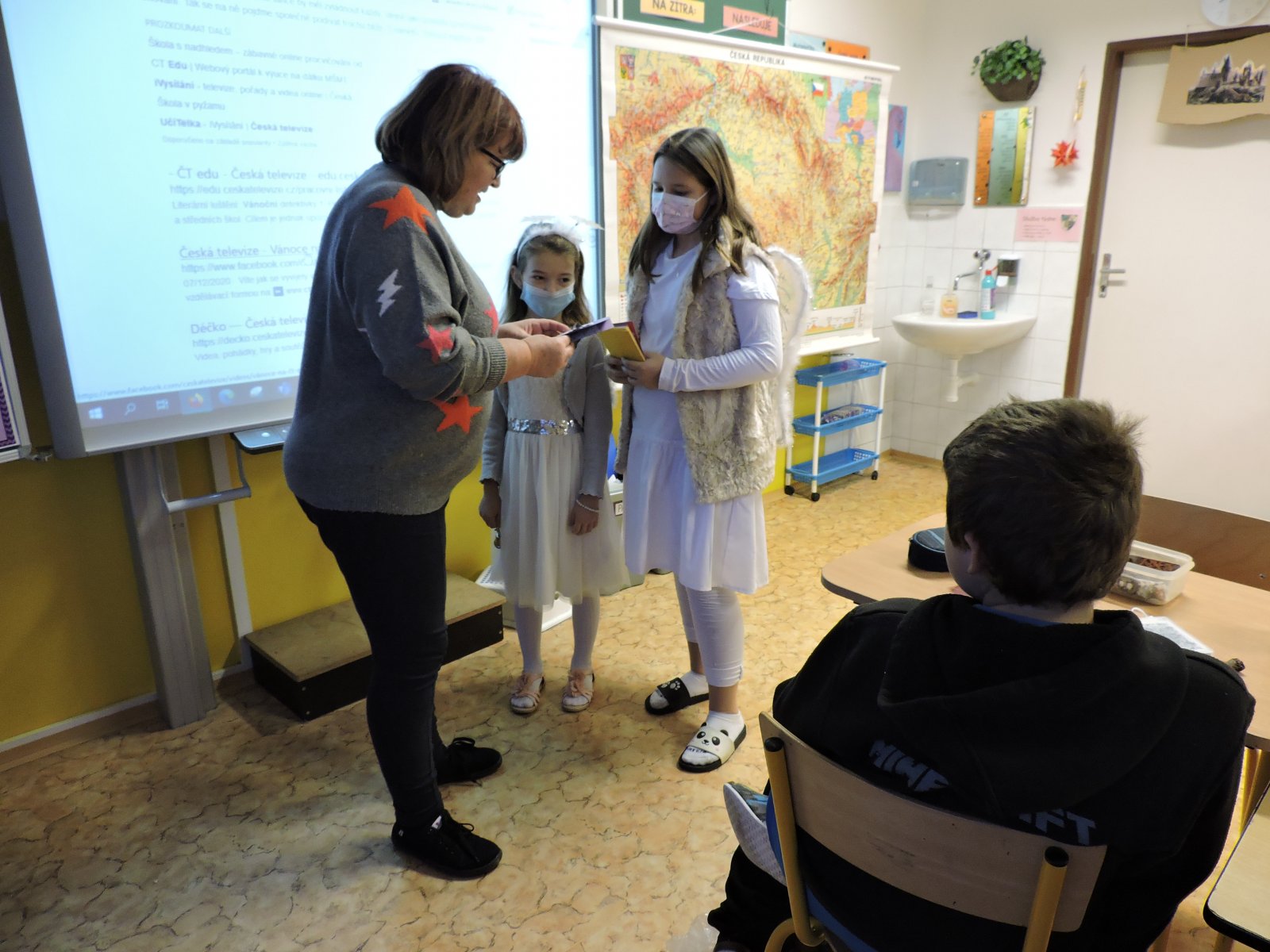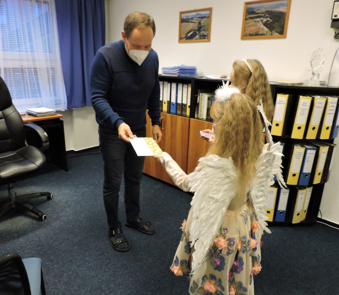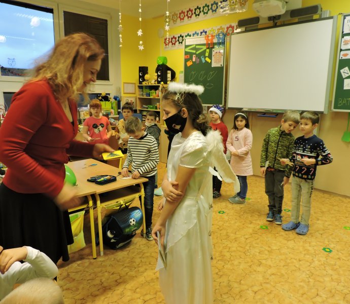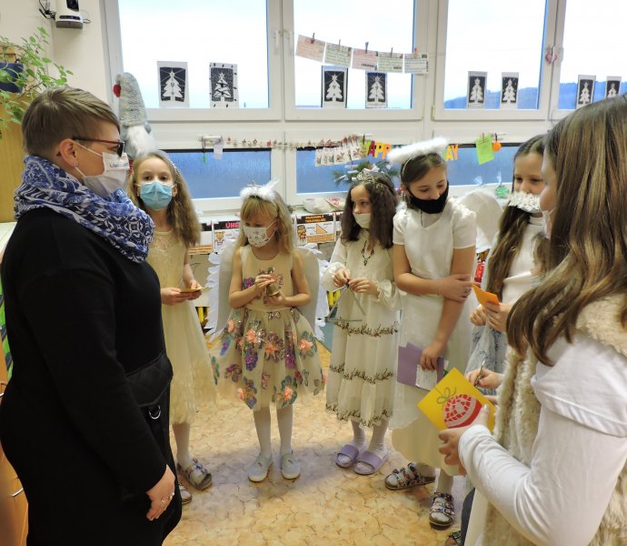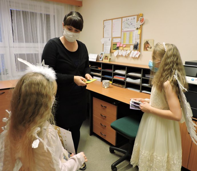 V pátek 17.12. se k nám do naší školy slétli andělé. Ti obešli zaměstnance školy. Všem předali přání krásných a požehnaných Vánoc a popřáli hodně sil do nového roku 2022. Přání tajně a andělsky vyrobili žáci školy. Učitelé a i ostatní zaměstnanci byli touto andělskou poštou příjemně zaskočeni a dojati. A tak se nám v covidové době povedlo potěšit a na chvíli zapomenout.