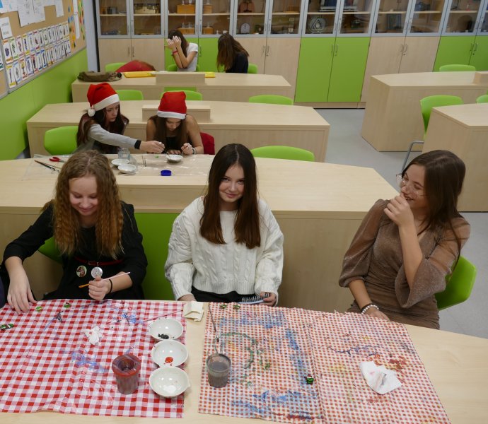 V pátek 20.12.proběhly vánoční dílničky v rámci projektového dne "Vánoční svátky, zvyky a tradice" i na II. stupni. Žáci devátých tříd se zapojili i do matematické a češtinářské dílničky, aby využili každé chvilky na přípravu na přijímací zkoušky.