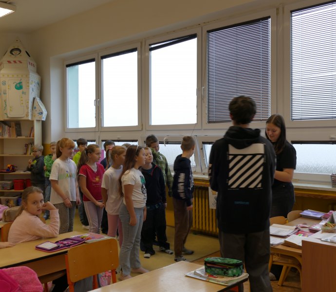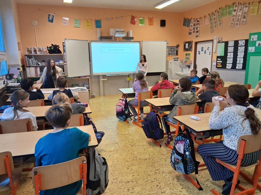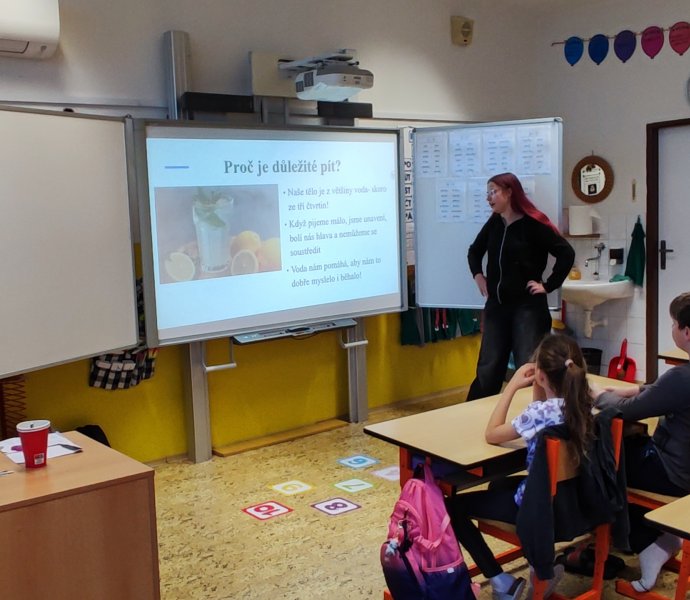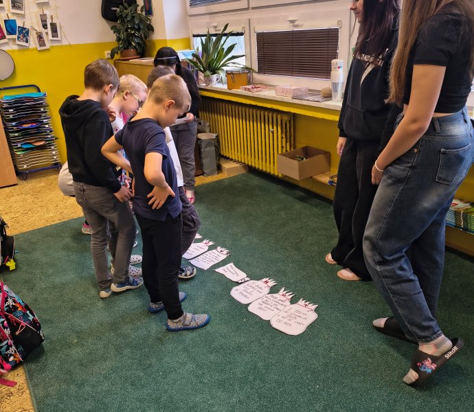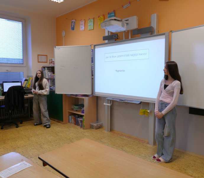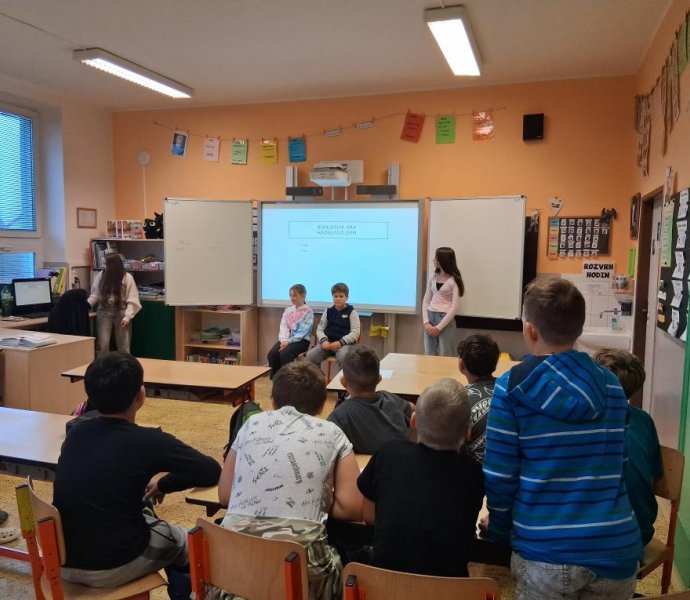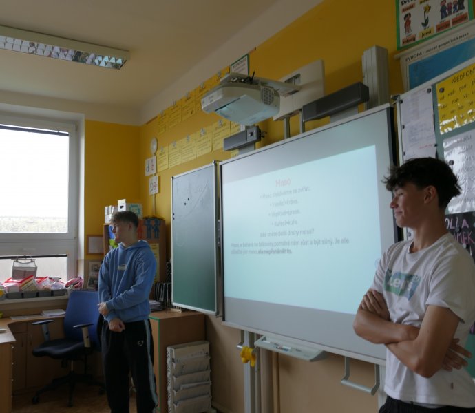 V letošním roce se do projektového dne zapojili i žáci 9. tříd, kteří si pro žáky I. stupně připravili prezentace o zdravé výživě, ale i soutěže s úkoly.