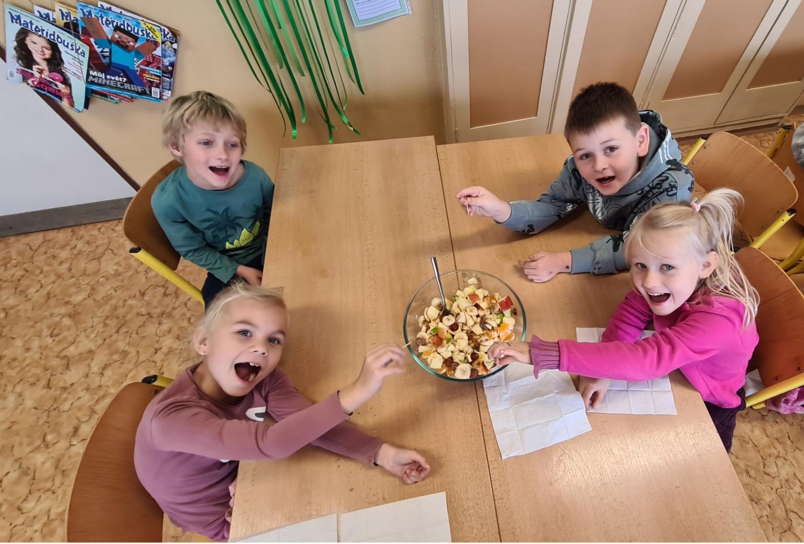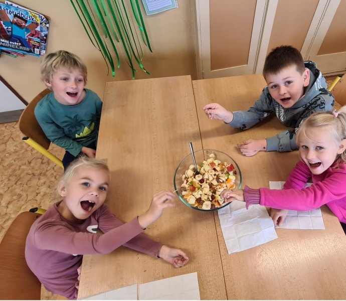U nás se jednotlivé ročníky vždy věnují dílčím tématům zdravé výživy, a to: 1. ročník Ovoce a zelenina, 2. ročník Tuky, sůl cukr. Obilniny, pečivo, těstoviny a rýže., 3. ročník Pitný režim a pyramida zdraví, 4. ročník Mléko a mléčné výrobky a 5. ročník Maso, ryby, vejce a luštěniny.