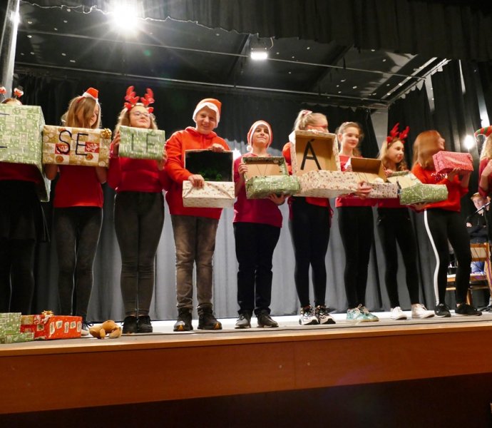 Žáci a pedagogové školy připravili vystoupení s vánoční tematikou. Žádná ze tříd se nenechala zahanbit a pečlivě si připravily vystoupení: vánoční písně, koledy - české i cizojazyčné, dramatizace písní, dokonce scénky ze života Ježíška. Krásná představení si připravil taneční a pěvecký kroužek. Milé bylo také společné vystoupení prvňáčků a deváťáků.