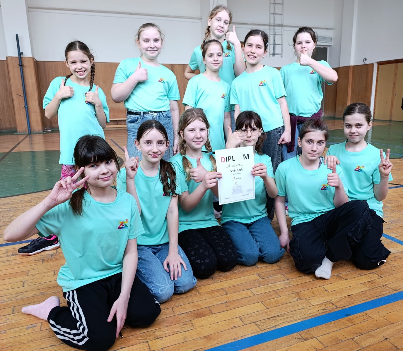 S velkou radostí gratulujeme našim žákyním k vítězství v okresním kole ve vybíjené. Turnaje se zúčastnilo pět týmů a naše družstvo dokázalo zvítězit ve všech čtyřech utkáních – navíc velmi přesvědčivým způsobem. Výsledky jako 8:0 či 9:2 hovoří jasně o jejich kvalitě a odhodlání.