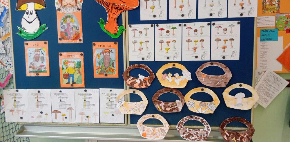 Nastal čas hub- a letos je úroda obzvlášť veliká...A tak i my,v družině PIRÁTŮ ,jsme se pustili do jejich poznávání .Houby jsme vyhledávali v atlasu,měli jsme i zapůjčené makety hub,přiřazovali jsme názvy,luštili tématickou křížovku,tvořili,vybarvovali a popisovali.Celý týden byl ukončen hledáním hub-obrázků-v lese.Zúčastněné děti dostaly medaily NEJLEPŠÍ HOUBAŘ a sladkou odměnu.