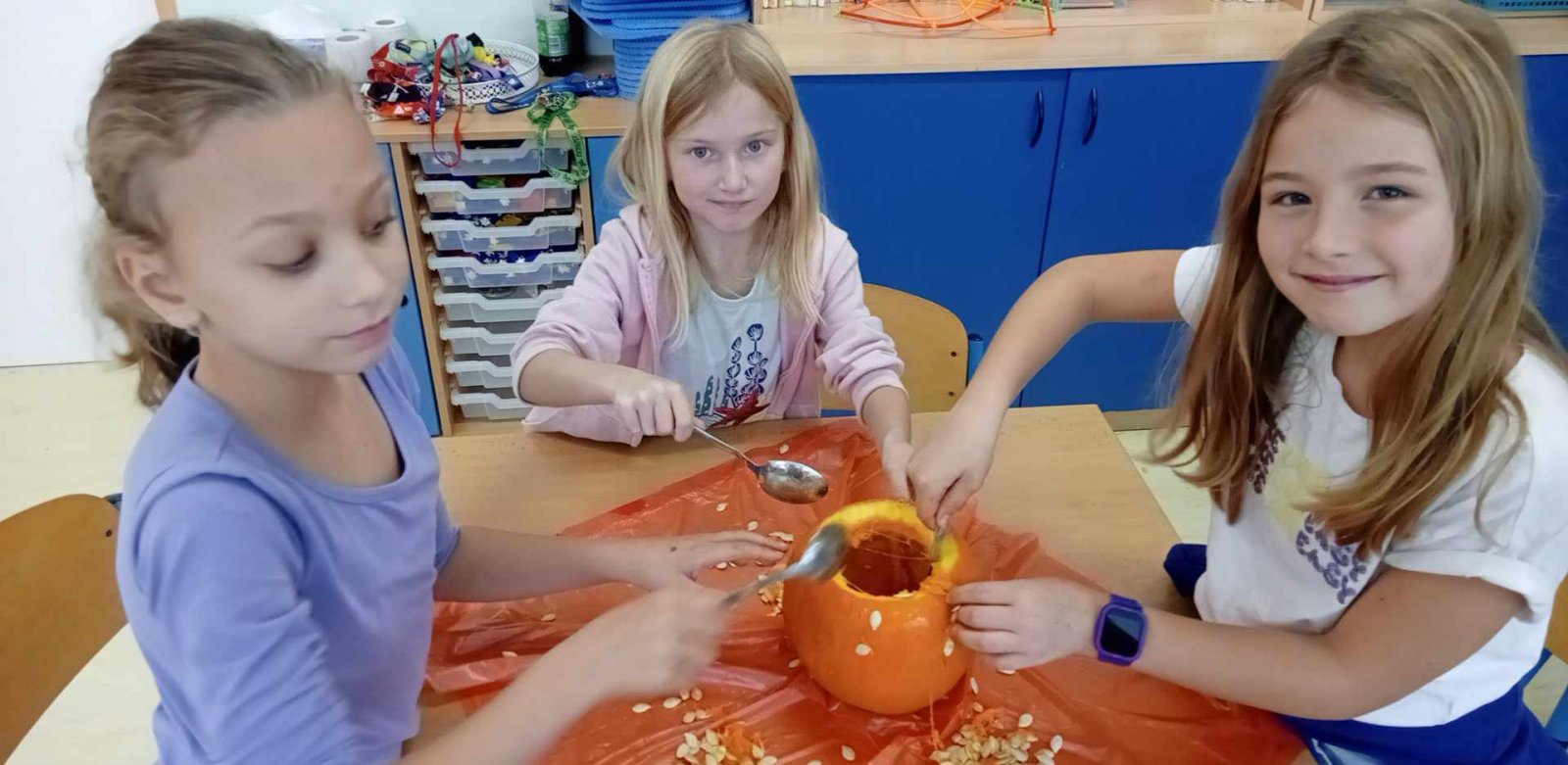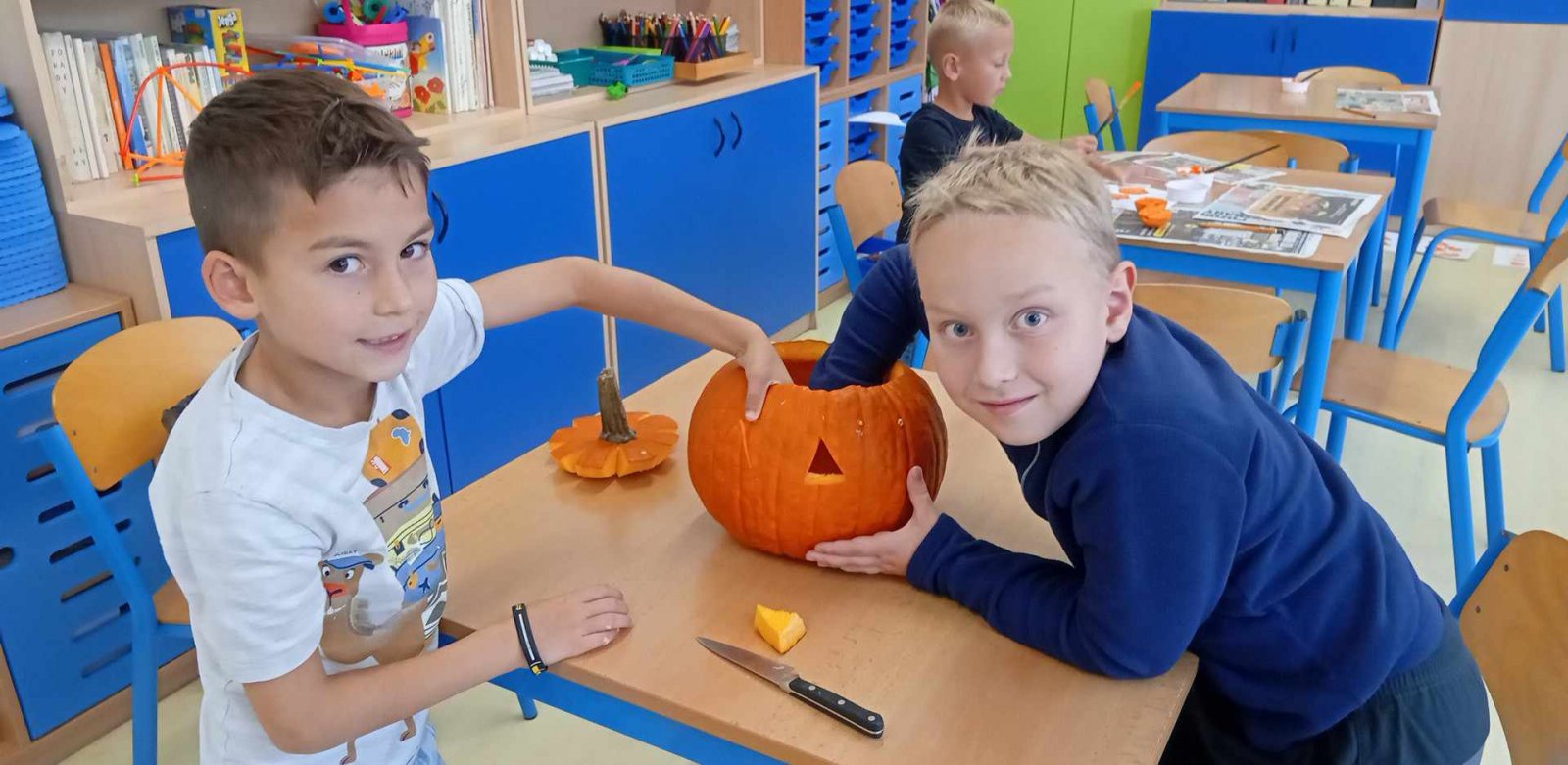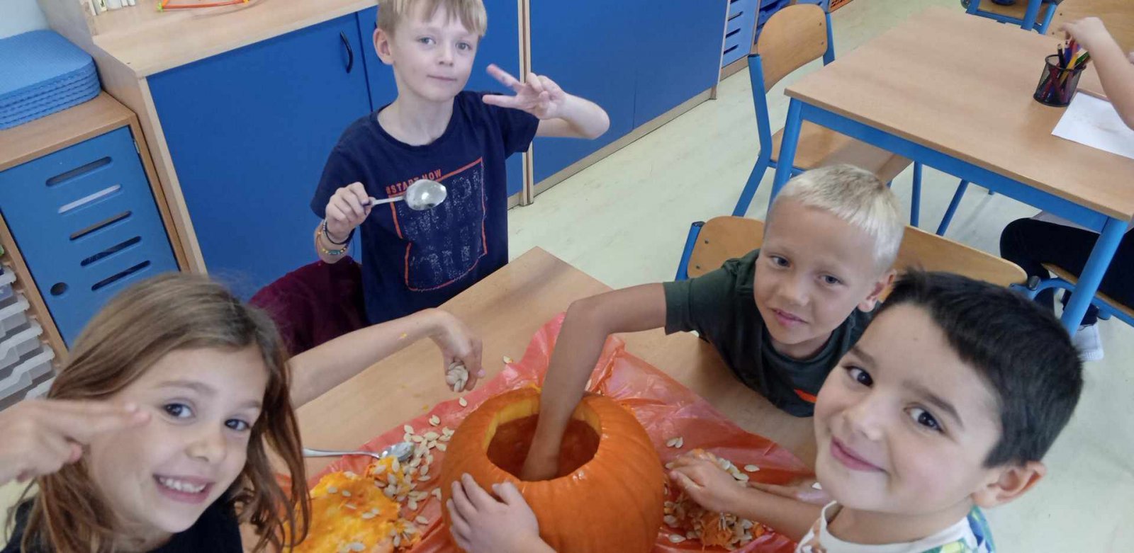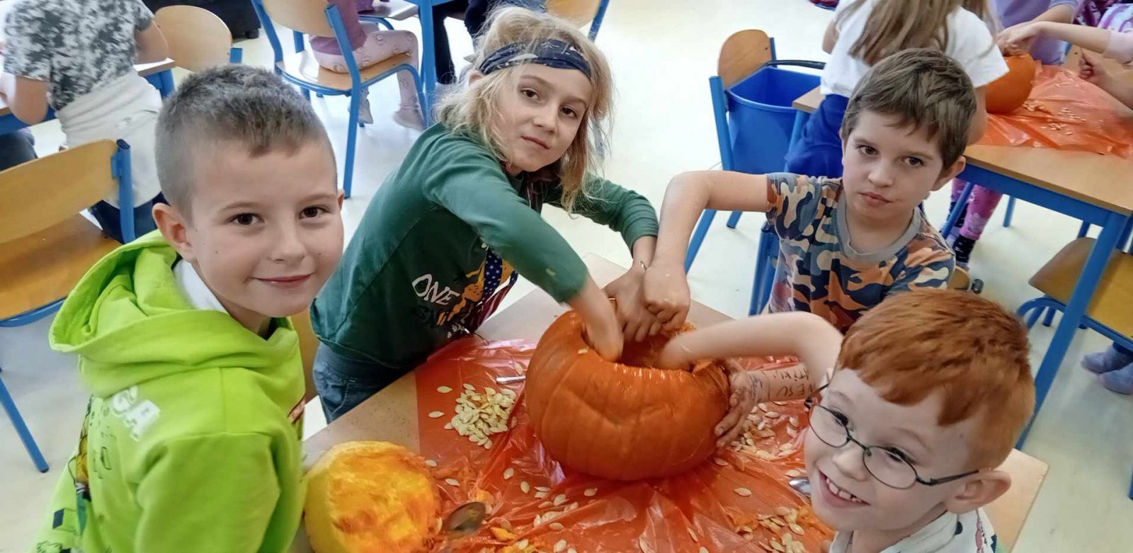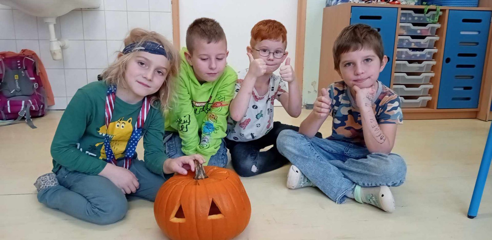 Ve dnech 21.-25.10. jsme si s dětmi povídali o nastávajících Dušičkách a také o Halloweenu.Děti luštily strašidelnou křížovku,vydlabávaly dýně ,otiskávaly jablka do tvarů dýní a řešily Haloweenský kvíz.Také jsme se byli podívat na hřbitově.Na závěr týdne je čekala Halloweenská stezka s úkoly.Děti získaly jako odměnu strašidelná lízátka.