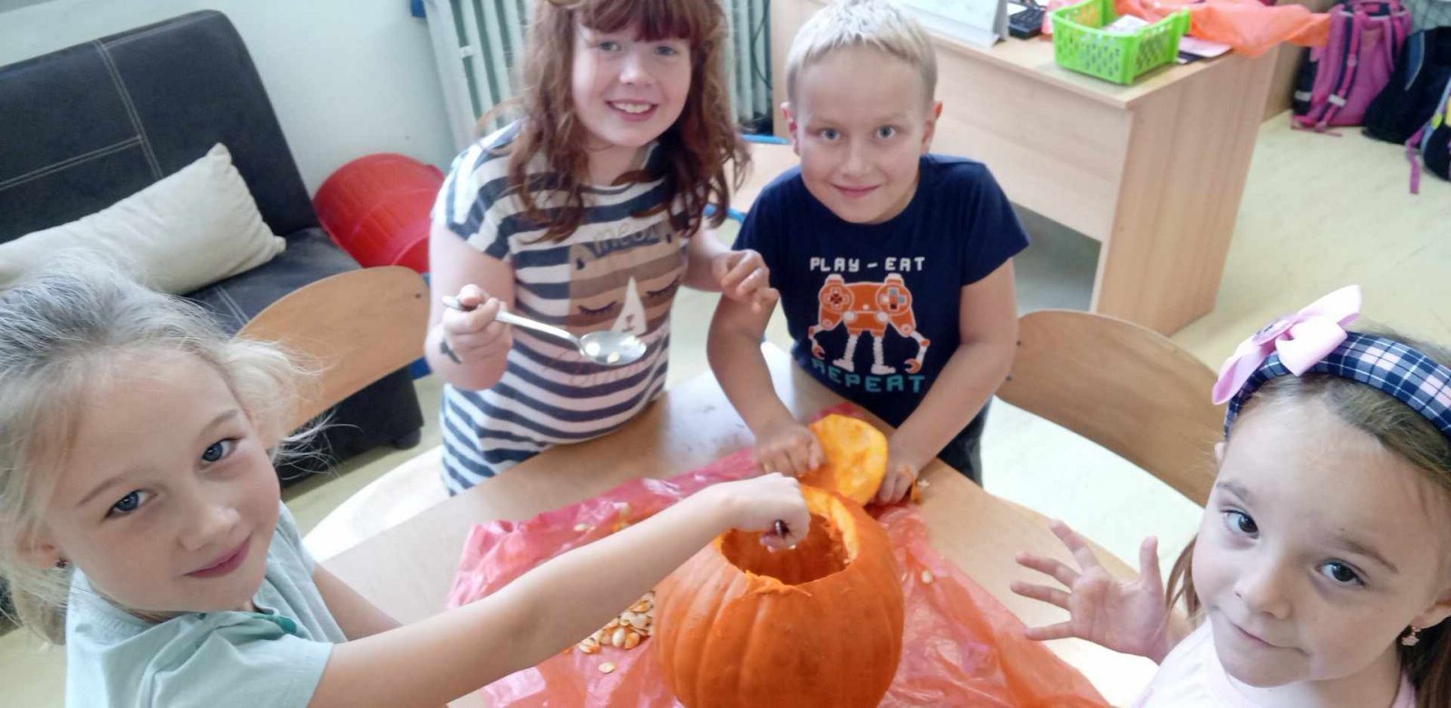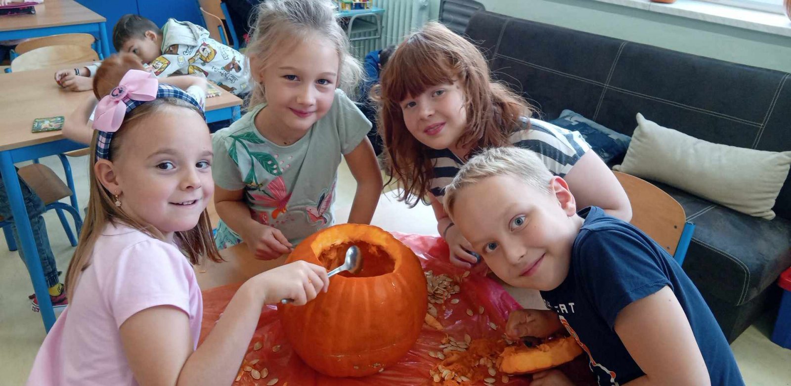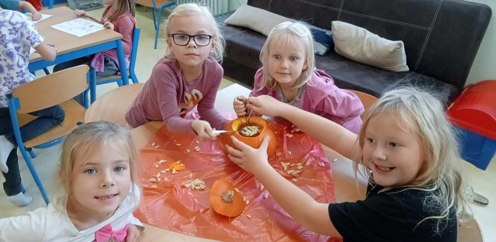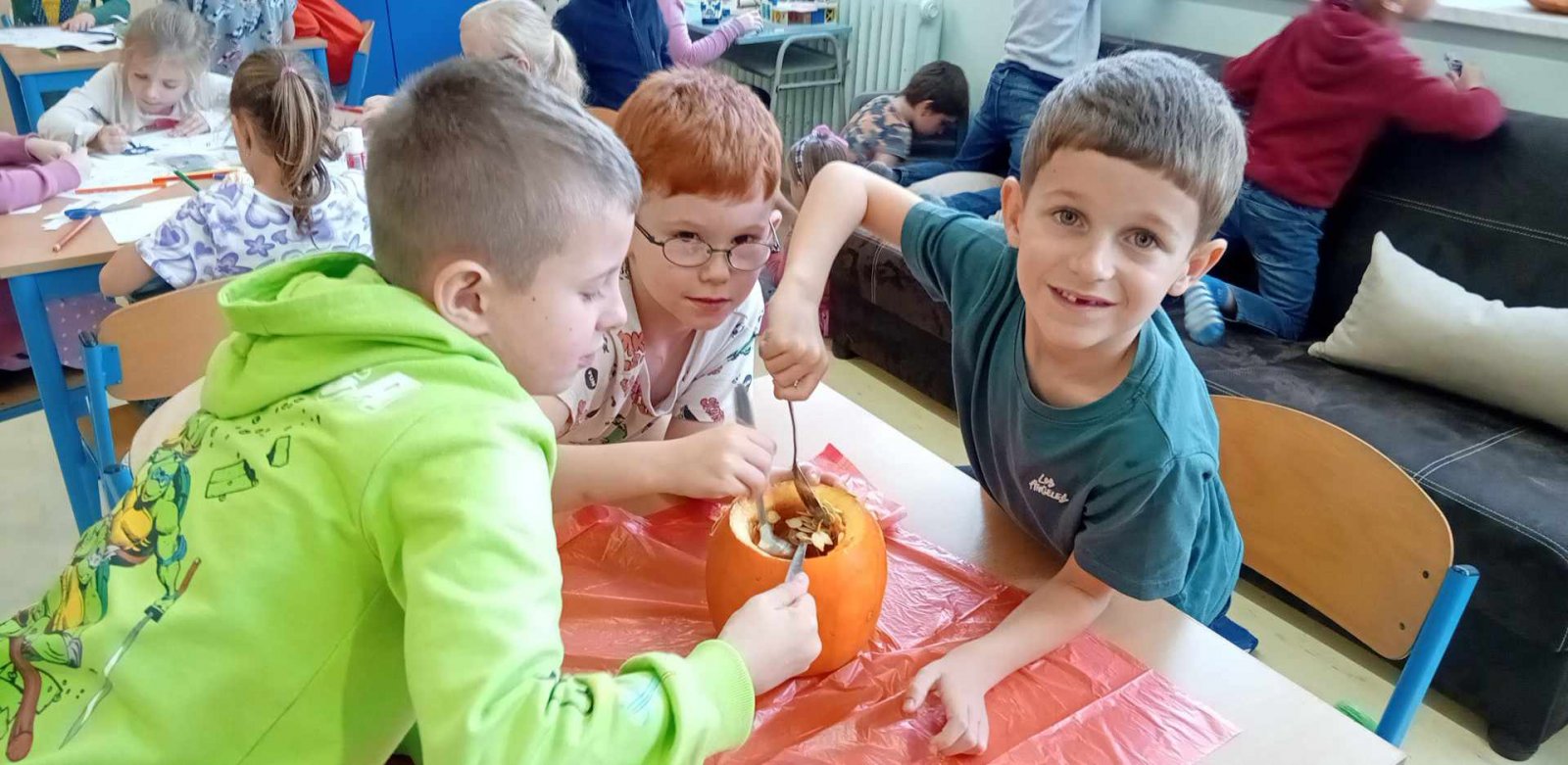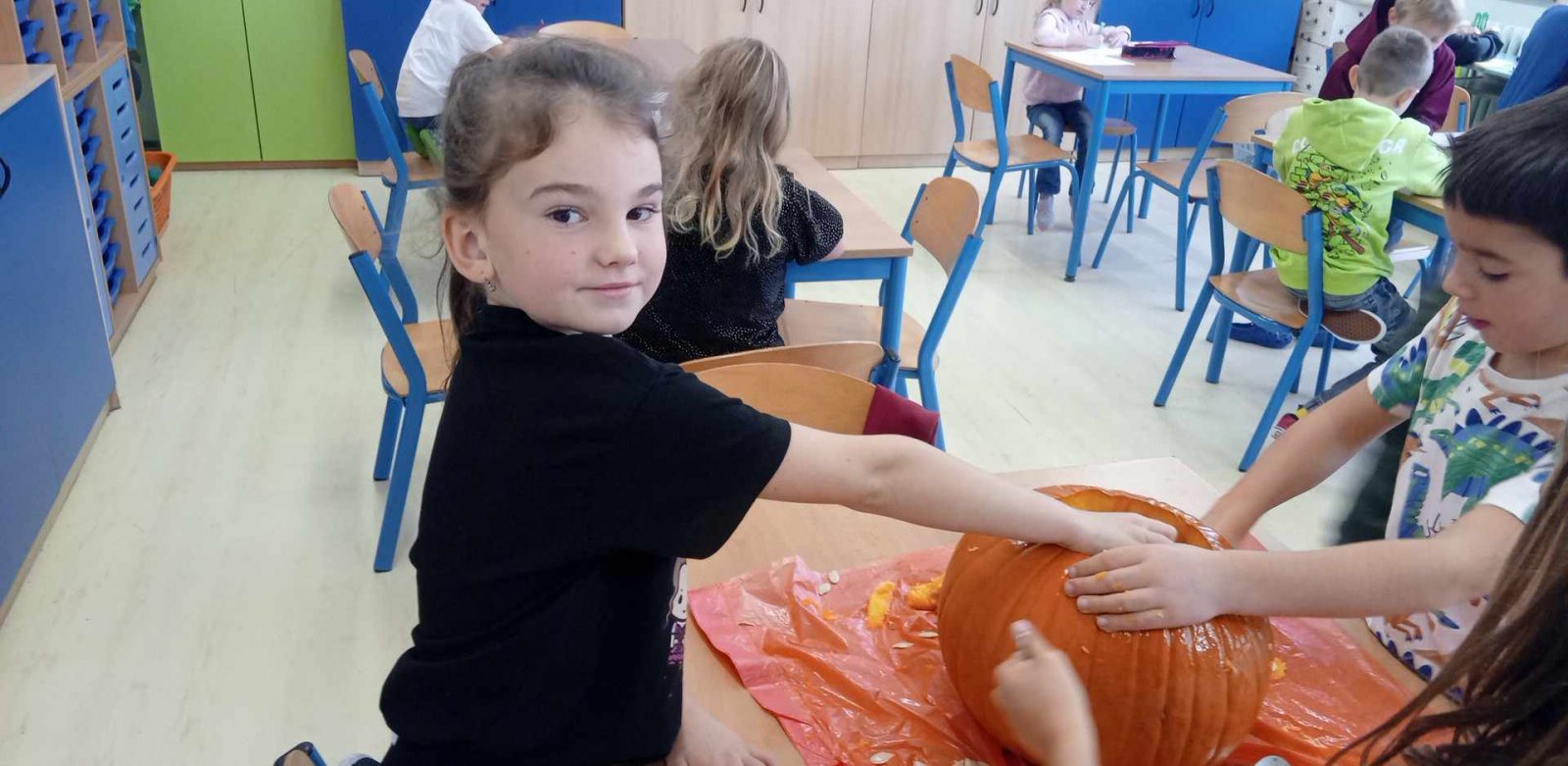 Ve dnech 21.-25.10. jsme si s dětmi povídali o nastávajících Dušičkách a také o Halloweenu.Děti luštily strašidelnou křížovku,vydlabávaly dýně ,otiskávaly jablka do tvarů dýní a řešily Haloweenský kvíz.Také jsme se byli podívat na hřbitově.Na závěr týdne je čekala Halloweenská stezka s úkoly.Děti získaly jako odměnu strašidelná lízátka.