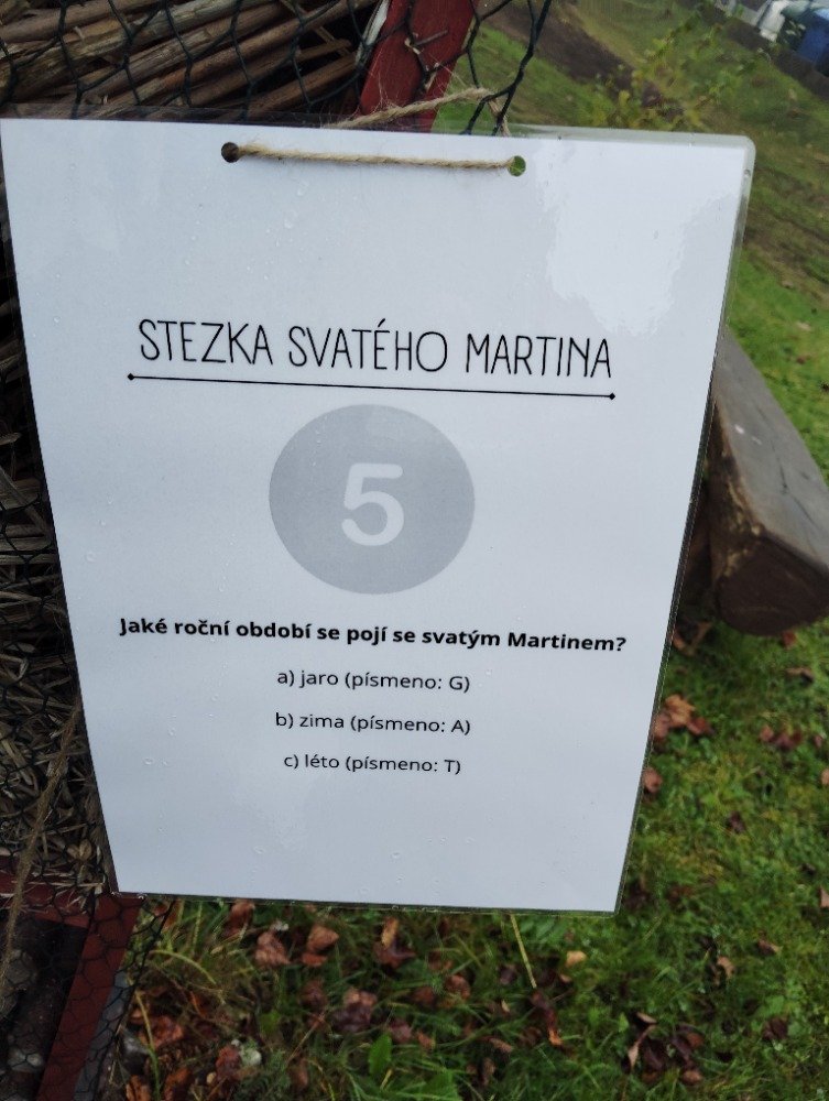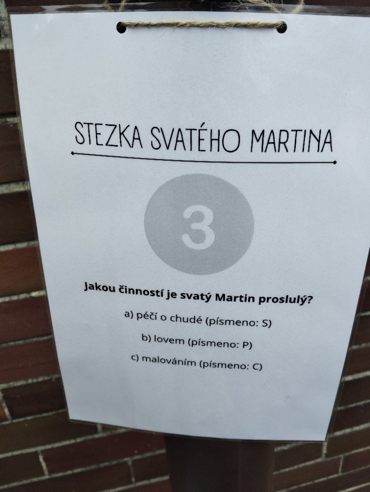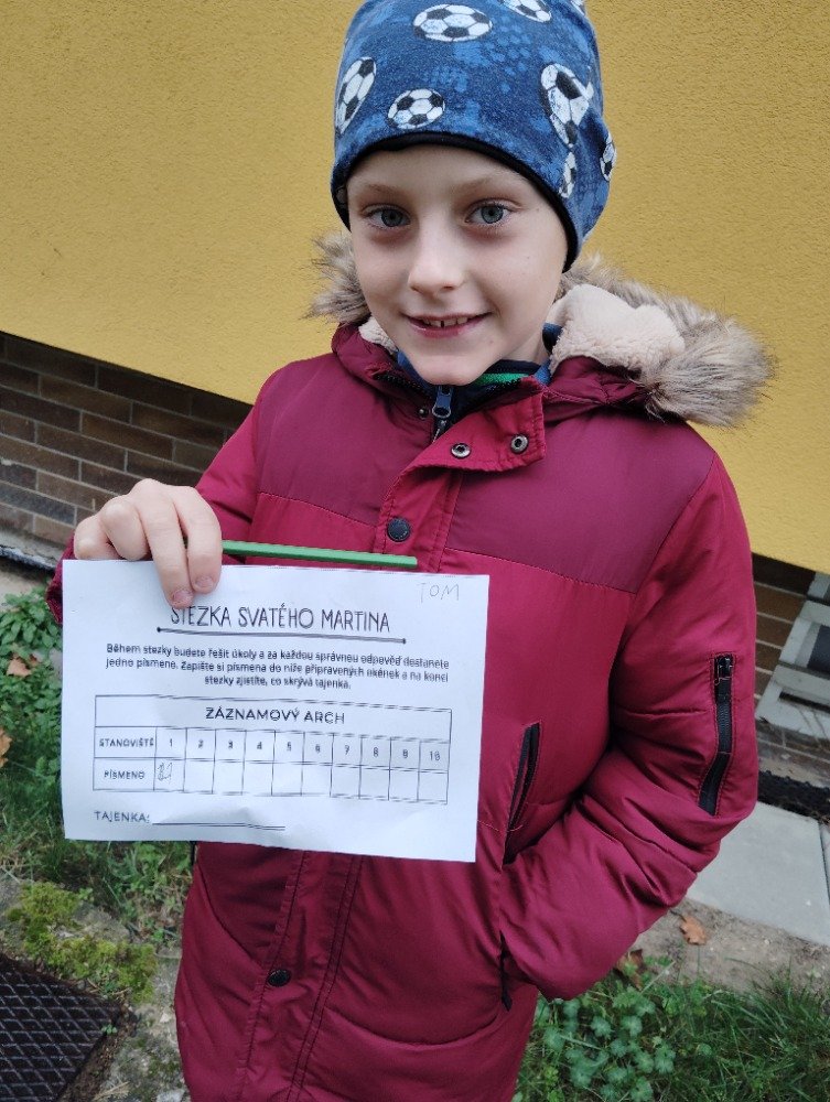 V pondělí a úterý se děti zábavnou formou seznámily se vším, co je spojené se svátkem svatého Martina. Nejprve jsme si společně poslechli legendu, poté děti vytvořily svatomartinské obrázky. Na závěr si děti prošly připravenou stezku svatého Martina, jejímž cílem bylo vyplnit tajenku, kterou musely složit z jednotlivých úkolů během stezky.