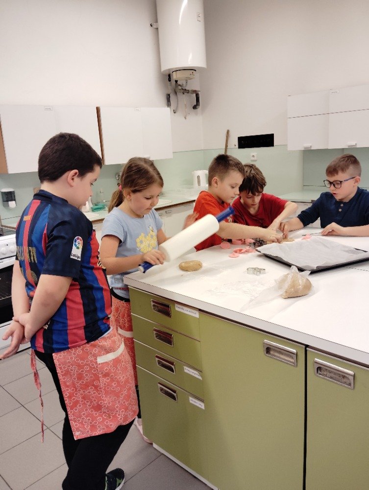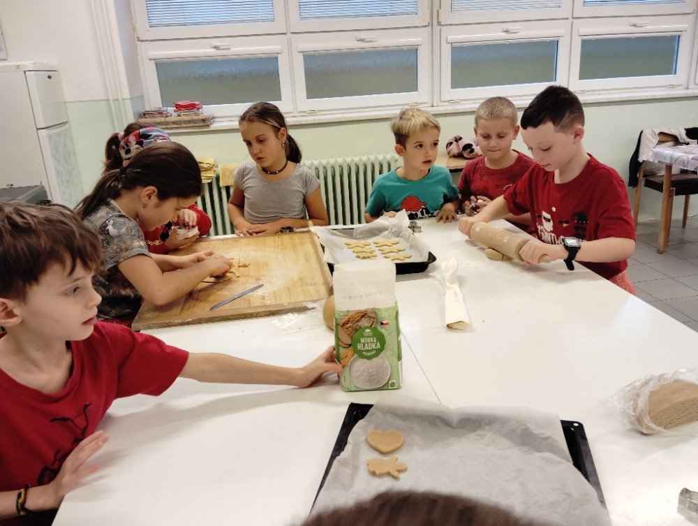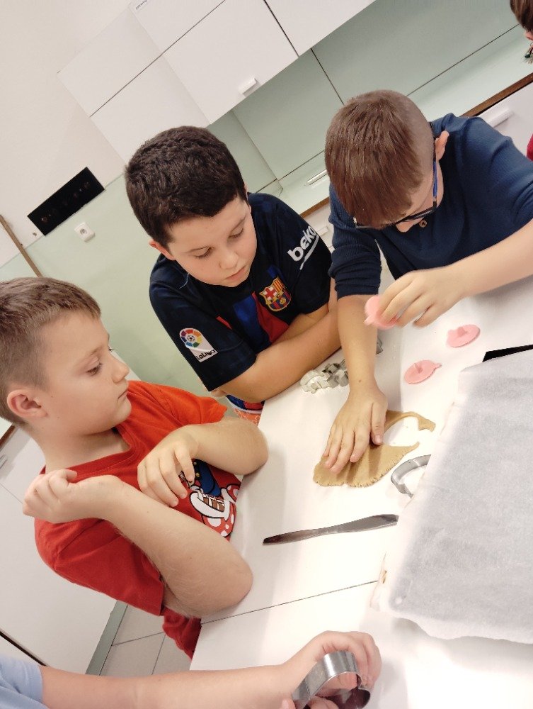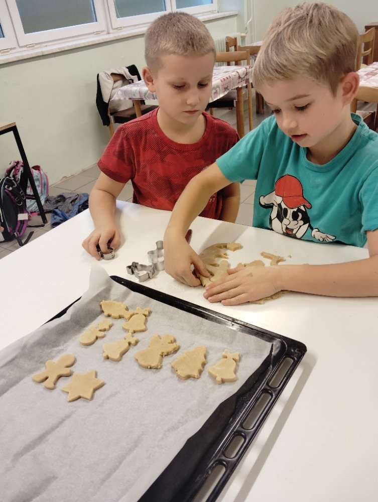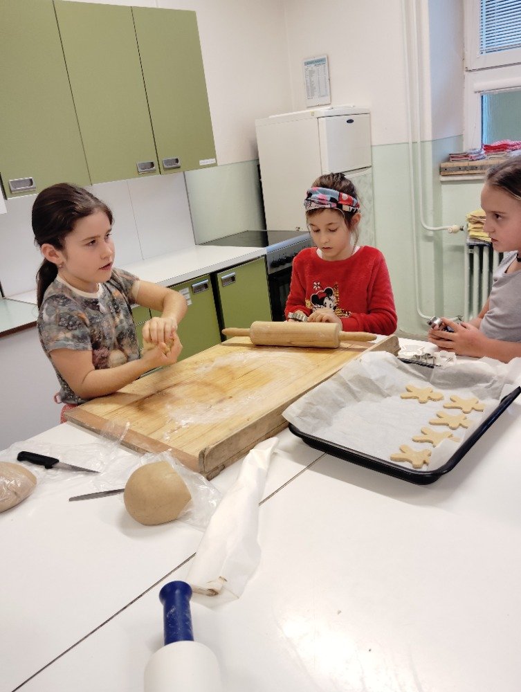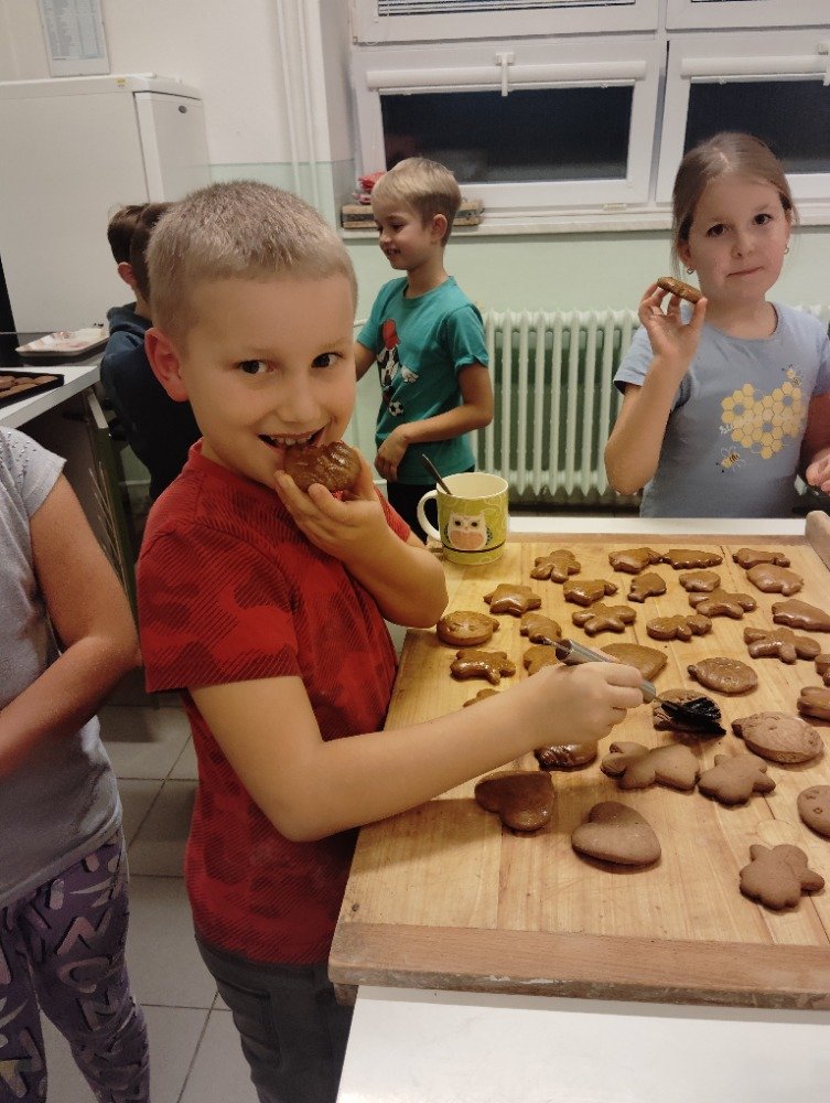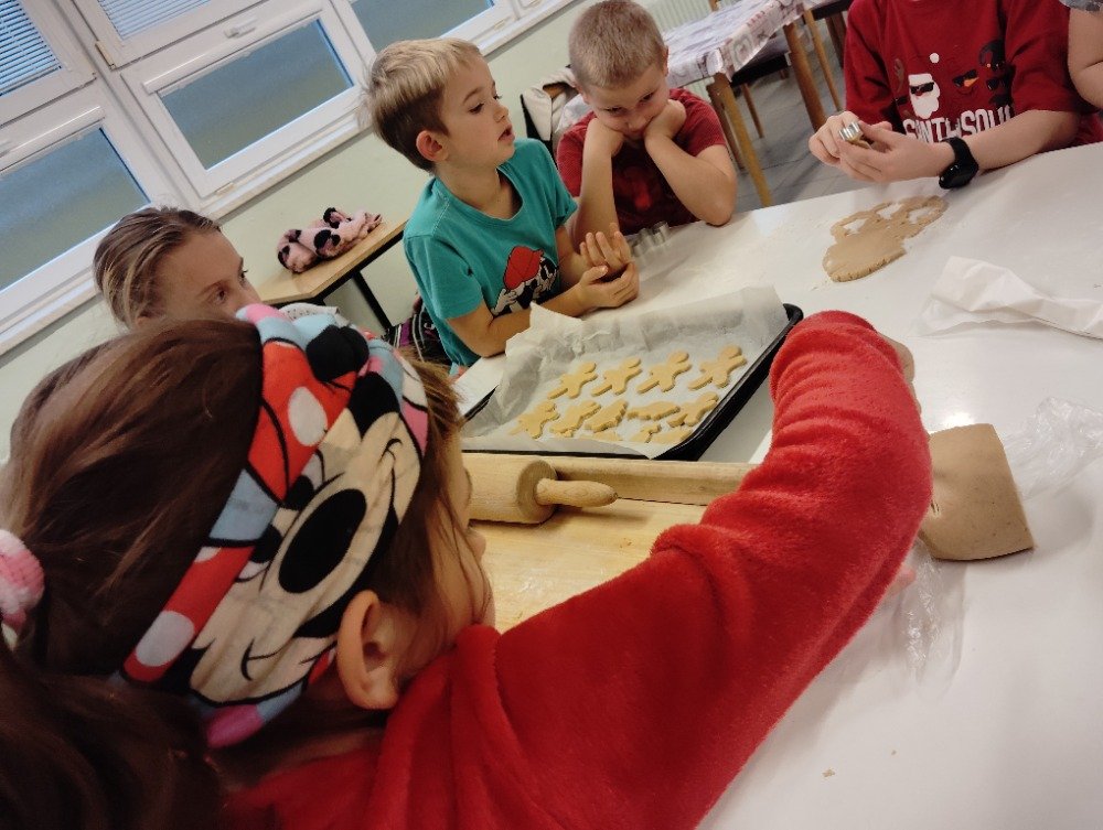 Dnes 3.12. jsme si vyzkoušeli jeden z adventních zvyků a to pečení vánočních perníčků. Děti si z připraveného těsta vyválely a vykrajovaly motivy s vánoční tématikou. Potom jsme společně tyto perníčky upekli a děti dostaly za družinkový úkol doma si společně s rodiči perníčky ozdobit.
