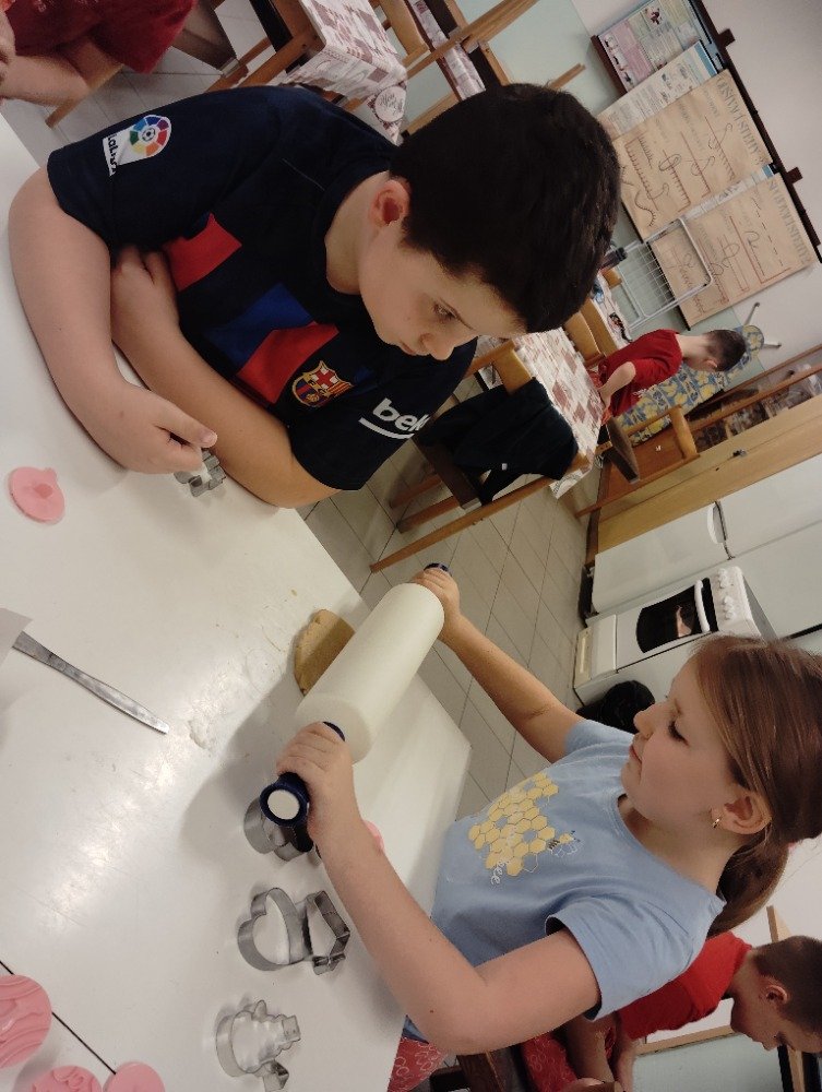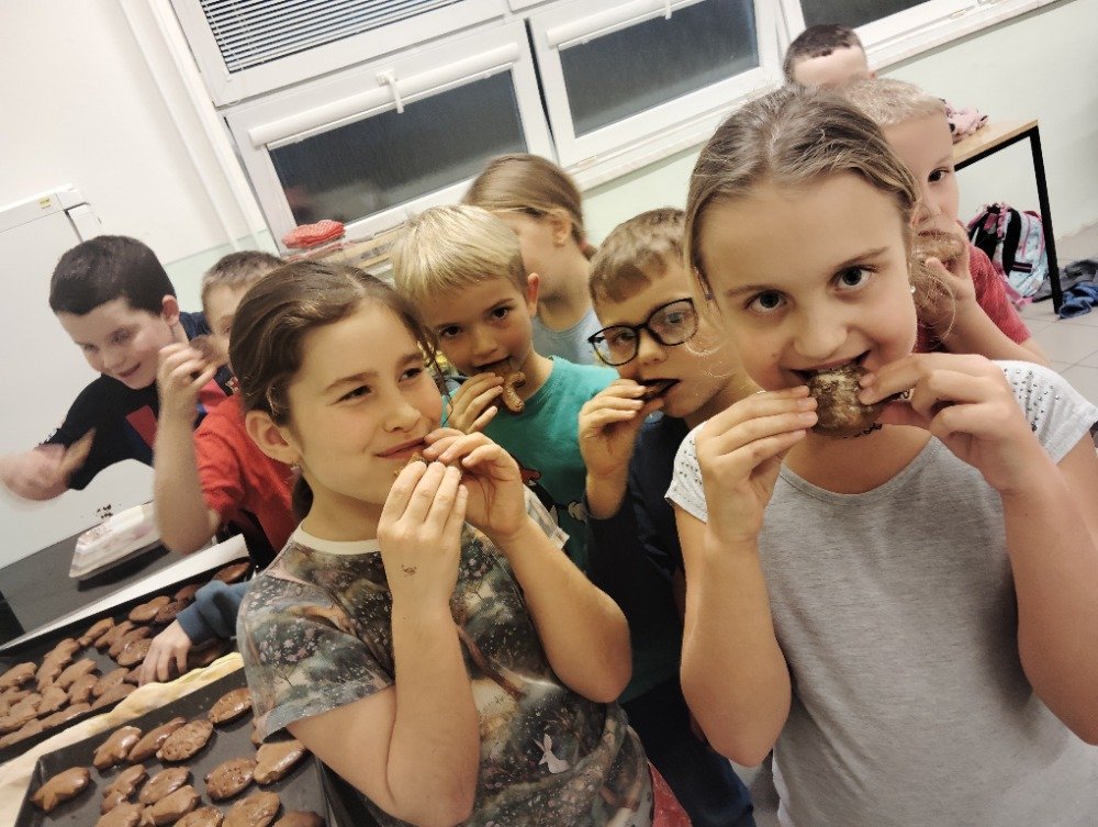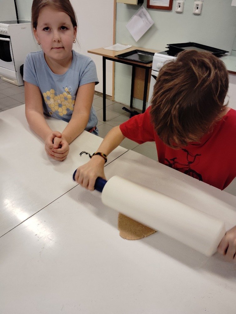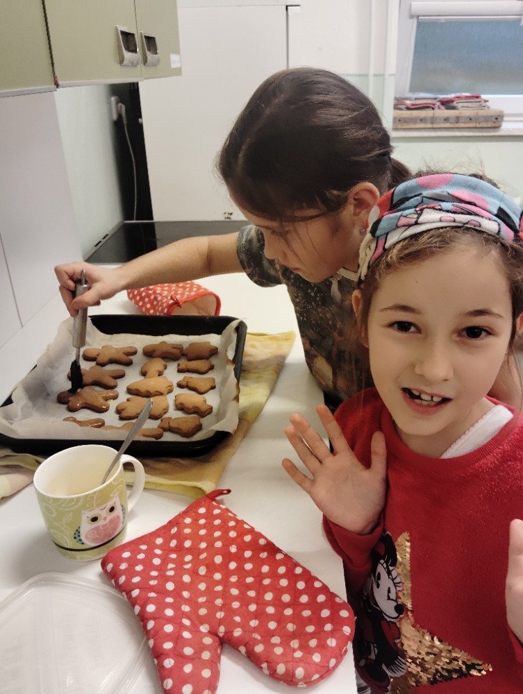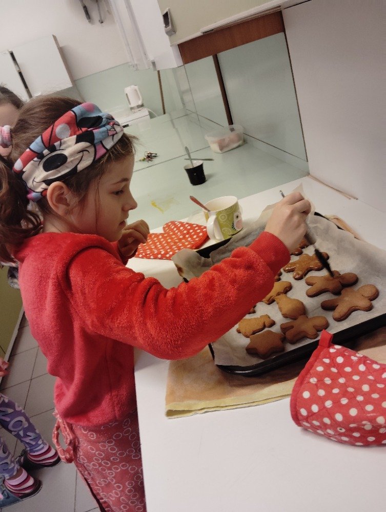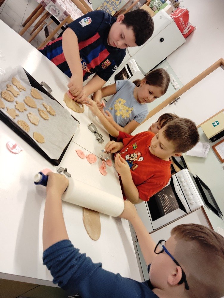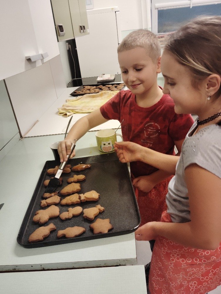 Dnes 3.12. jsme si vyzkoušeli jeden z adventních zvyků a to pečení vánočních perníčků. Děti si z připraveného těsta vyválely a vykrajovaly motivy s vánoční tématikou. Potom jsme společně tyto perníčky upekli a děti dostaly za družinkový úkol doma si společně s rodiči perníčky ozdobit.