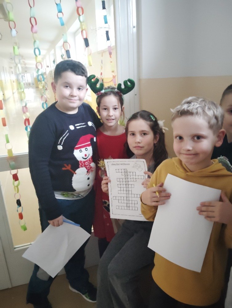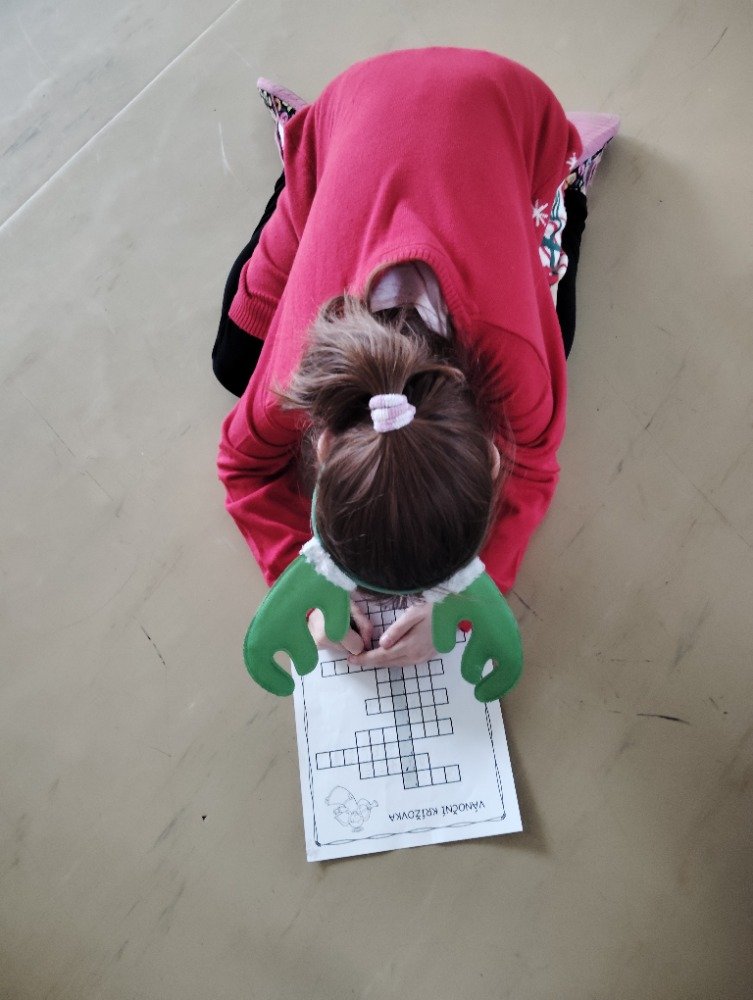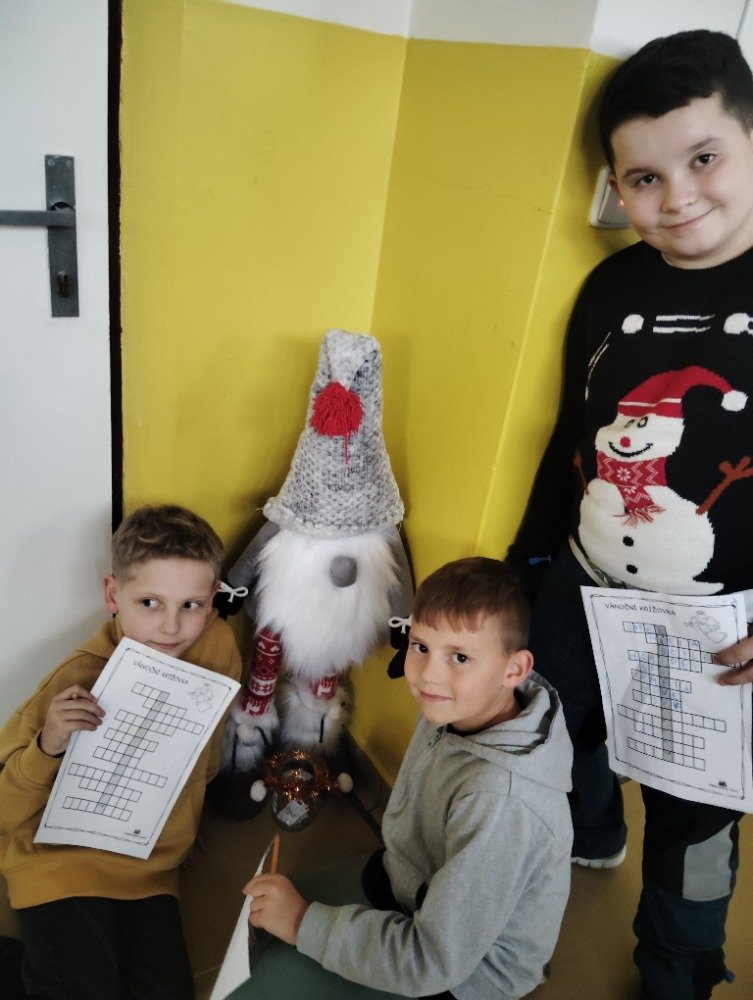 Předvánoční dny a čekání na Ježíška jsme si zkrátili vánoční povídkou a zajímavou hádankovou hrou v naší škole. Společně s dětmi jsme si přečetli povídku. Návazně na to měly děti za úkol najít po škole poschovávané otázky vztahující se k povídce. Uhodnutou hádanku měly za úkol zapsat do tajenky, kde jim na závěr vyšlo Vánoce se blíží.