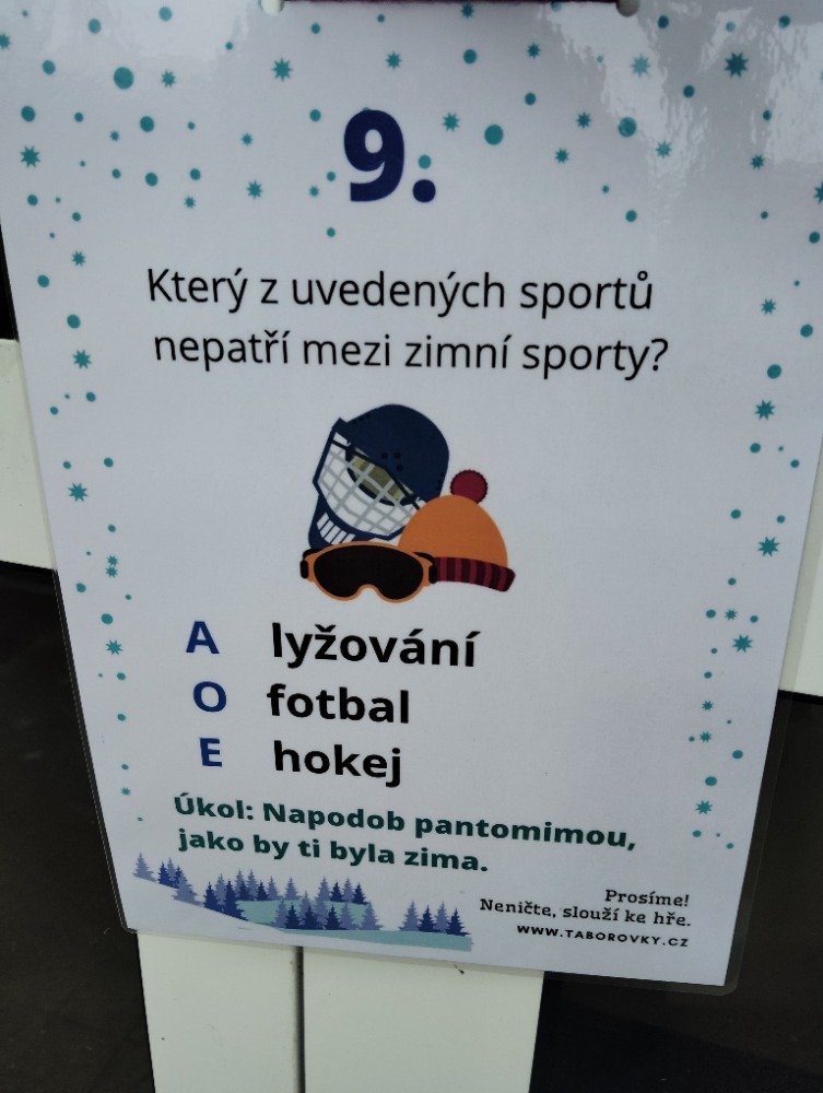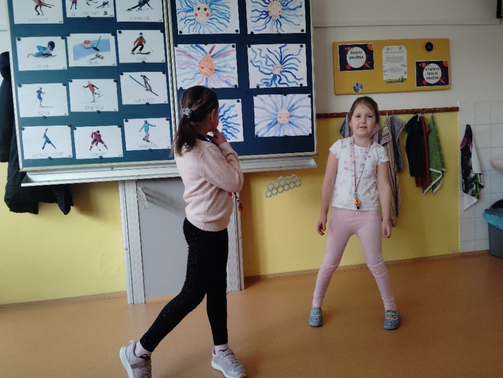 Tento lednový týden jsme v naší družince věnovali seznámení se se zimními sporty. Nejprve děti pomocí pantomimy společně hádaly zimní sporty. Po té děti výtvarně ztvárnily 3D obrázky zimních sportů. Po aktivitách v družině jsme si šli společně užít zimní radovánky a zimní olympiádu na kopci u naučné stezky. Vyvrcholením týdne byla naučná stezka týkající se zimního sportovního vybavení a správné uhodnutí sportovních disciplín.