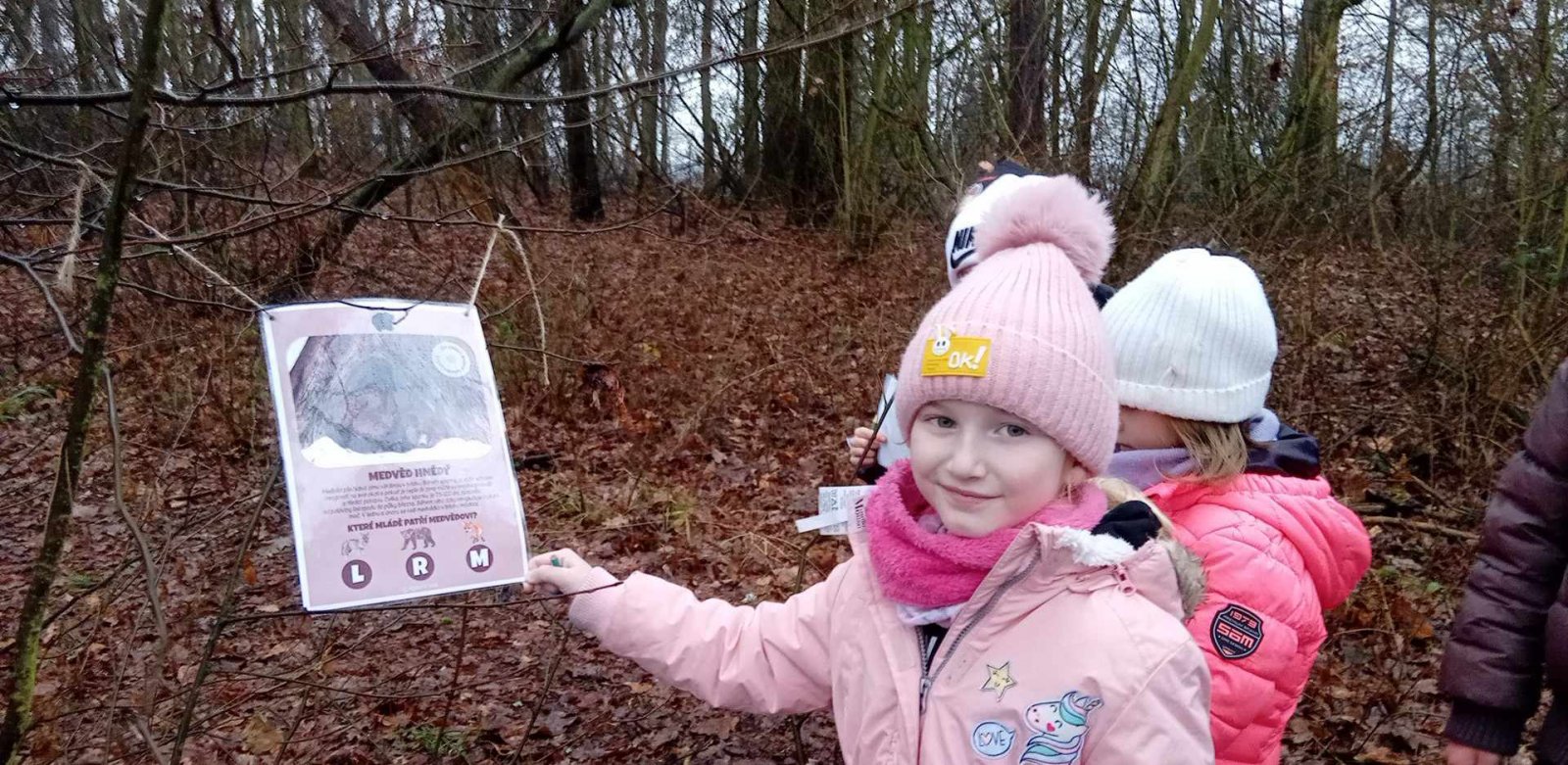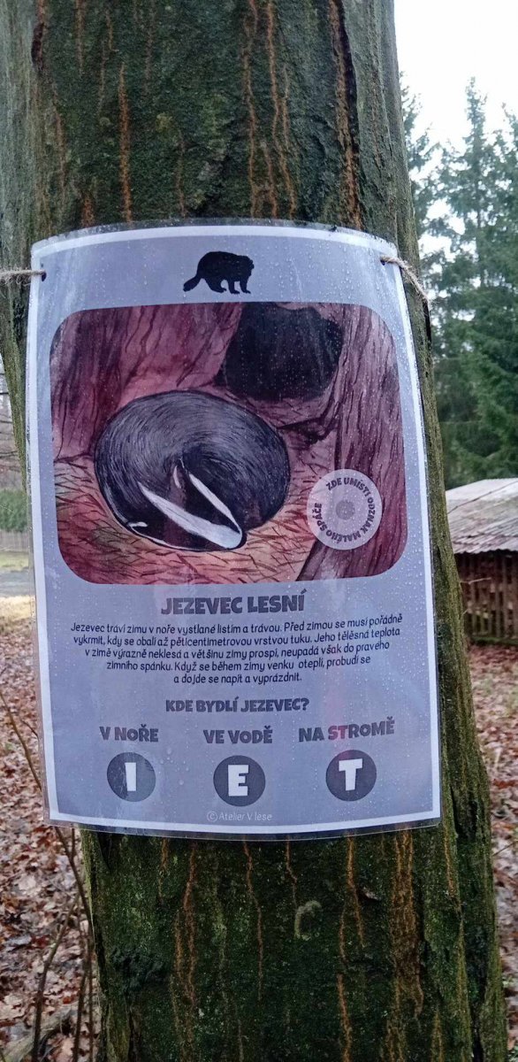 Po delší době nás v lese čekala STEZKA ZA ZVÍŘÁTKY V ZIMĚ.Počasí nám vůbec nepřálo,venko pošmourno,poprchávalo,no zkrátka nic moc...Jenže...my...nejsme z cukru!!! A tak jsme se vydali za dobrodružstvím.Cestou jsme sbírali písmenka a zároveň jsme se dozvěděli o tom,jak některá zvířátka přezimují.Akce se přes překážky moc povedla a na děti čekala malá sladká odměna.