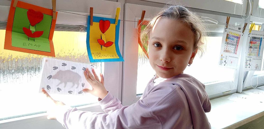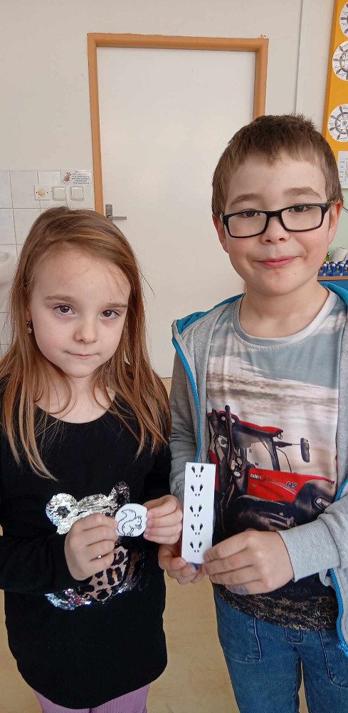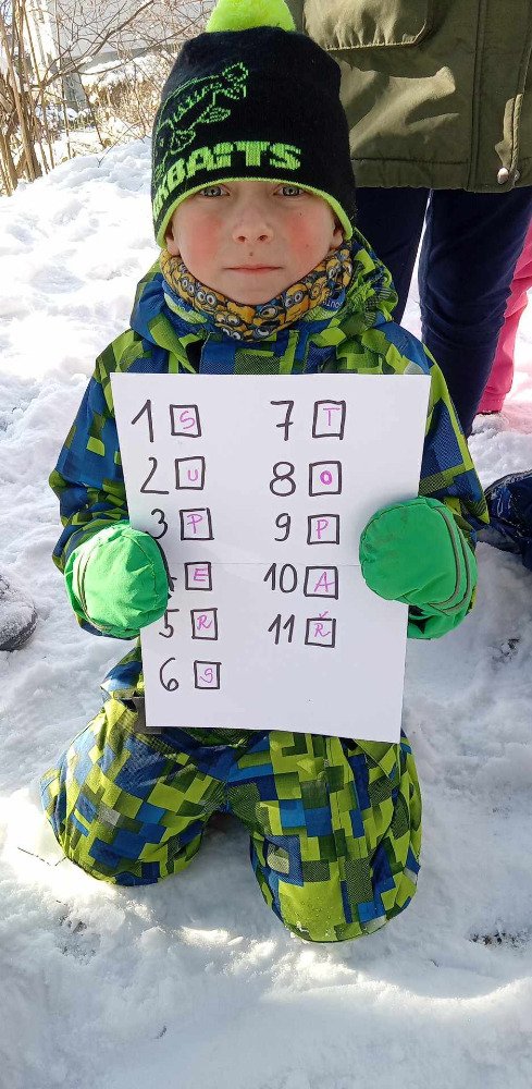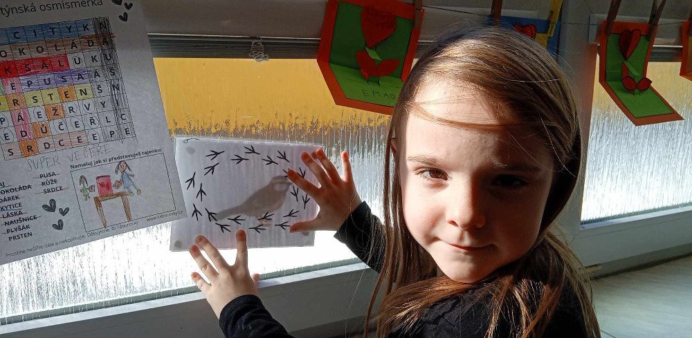 V týdnu od 17.2. do 21.2. jsme se v družince snažili využít co nejvíce zímní mrazivé počasí.A tak jsme se,kromě bobování a hrátek na sněhu,učili poznávat stopy zvířat.Nejprve jsme měli průpravu v družince ,kde jsme přiřazovali stopy k obrázkům a také jsme na oknech prosvěcovali obrázky zvířátek.Luštili jsme křížovky ,kde jsme také hledali stopy.Stopy jsme pak zkoumali i v lese,kde nás pak čekala naučná stezka s tajenkou SUPER STOPAŘ.