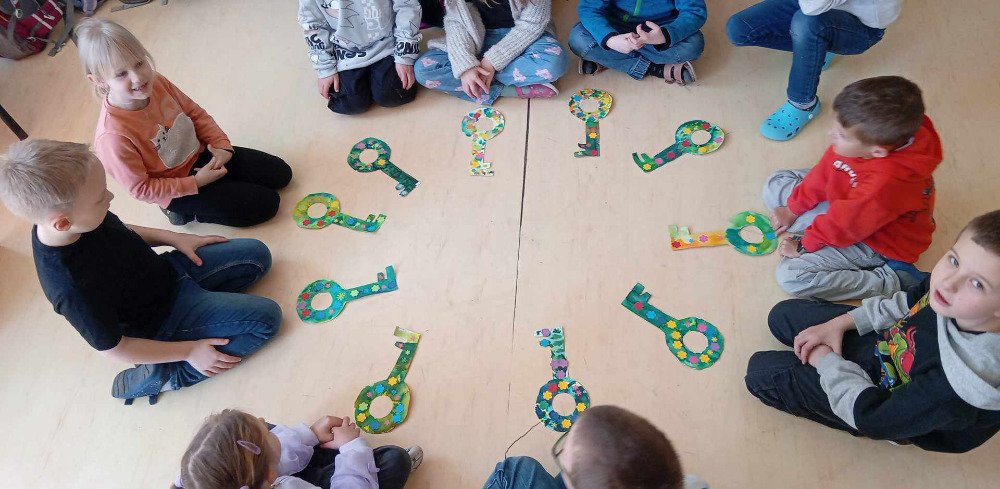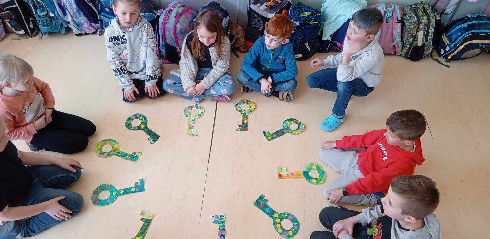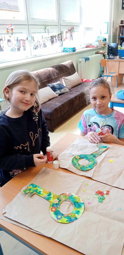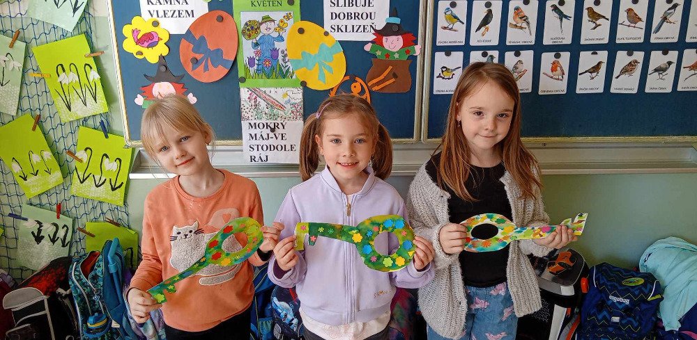Všichni se těšíme na jaro-a stejně tak i děti v družince...Rozhodli jsme se,že Jaro odemkneme,aby Zima již ztratila svou vládu...Proto si děti v družince nejprve vyrobily klíč k jaru a potom si užily společnou bojovku,kdy v lesíku plnily úkoly a hledaly klíče k truhle,kde bylo Jaro uvězněno.Vše se pomocí indícií podařilo a Jaro bylo vypuštěno.