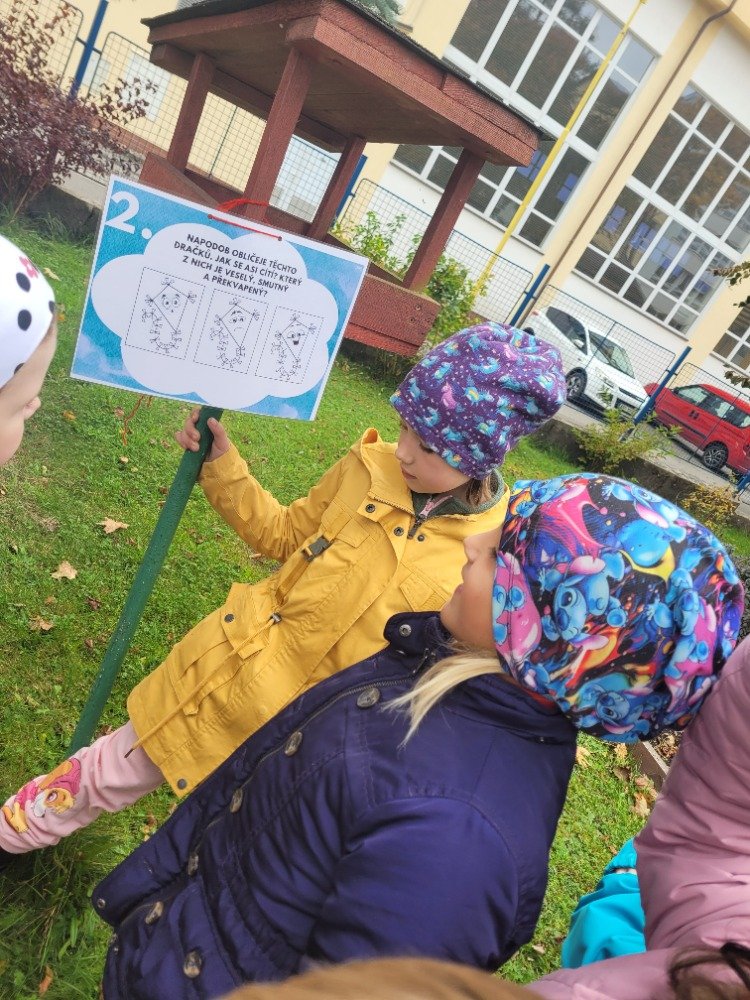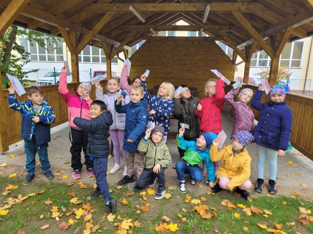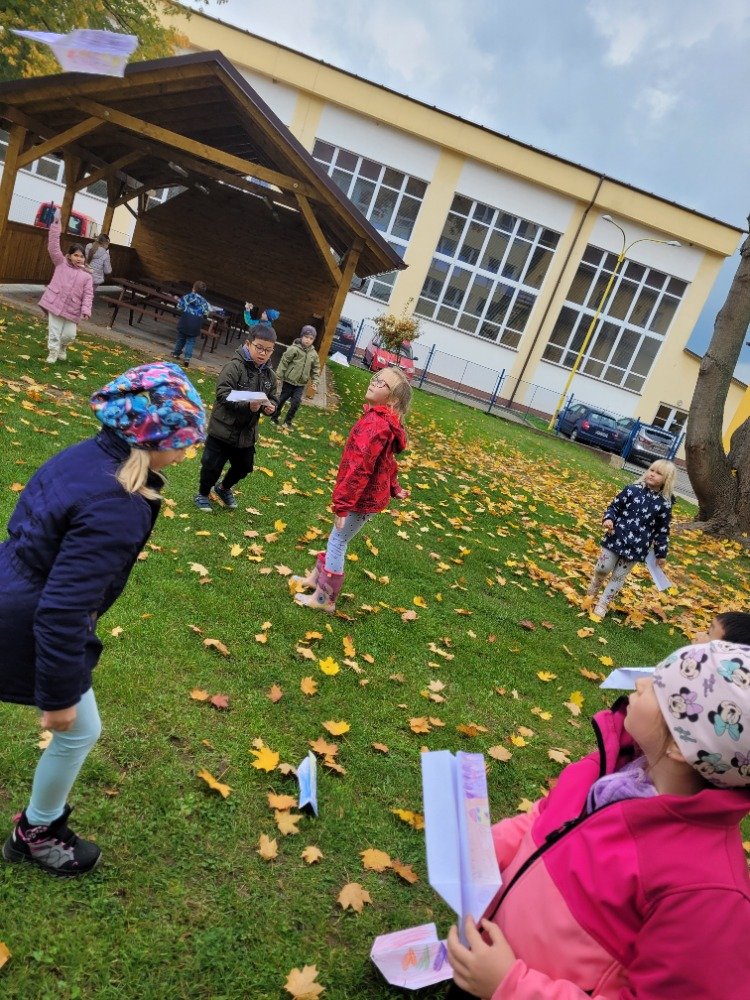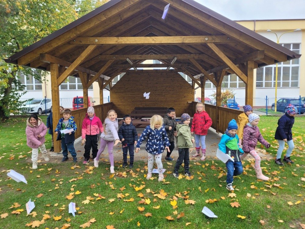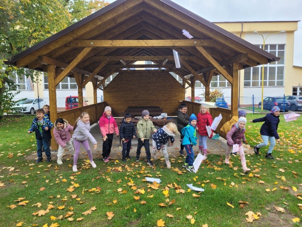 Další říjnový týden provázel děti dráček Papíráček. Děti si poslechly pohádky o Papíráčkovi, naučily se básničku. Vyráběly si svého dráčka z barevných papírů. Skládaly si papírové vlaštovky. Na školní zahradě si užily vlaštovkiádu a dračí stezku.