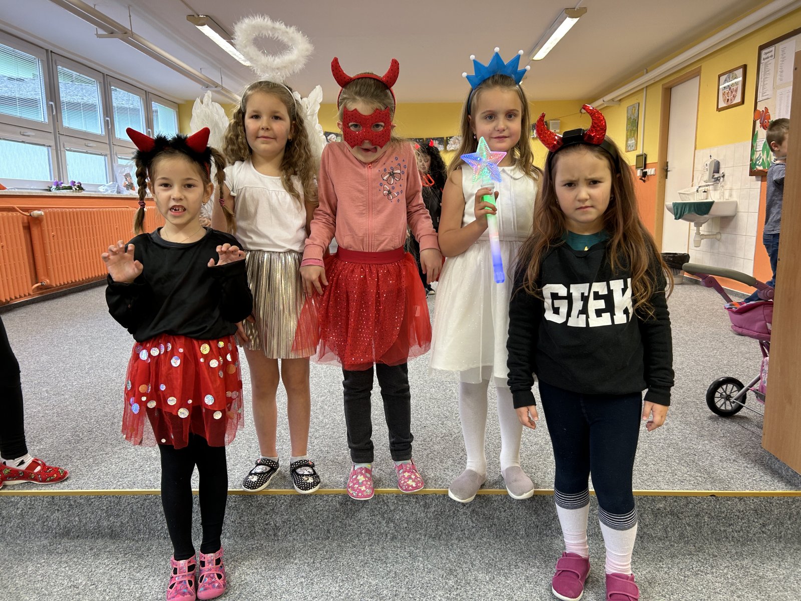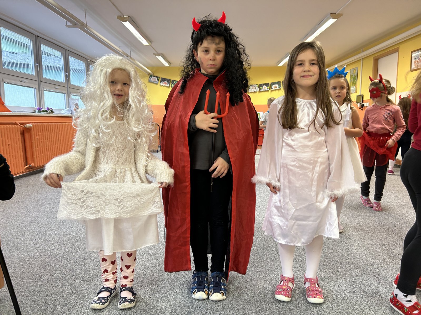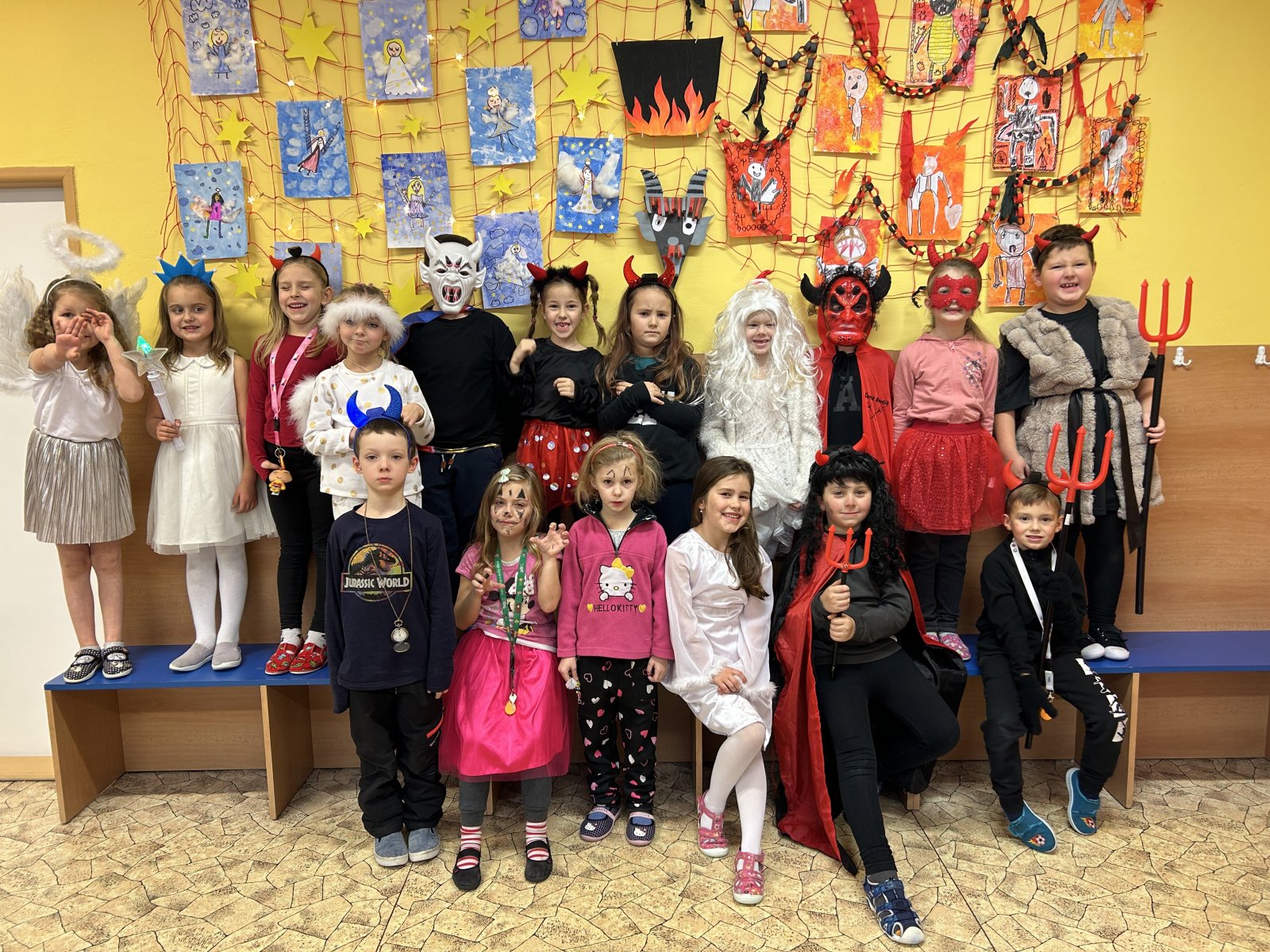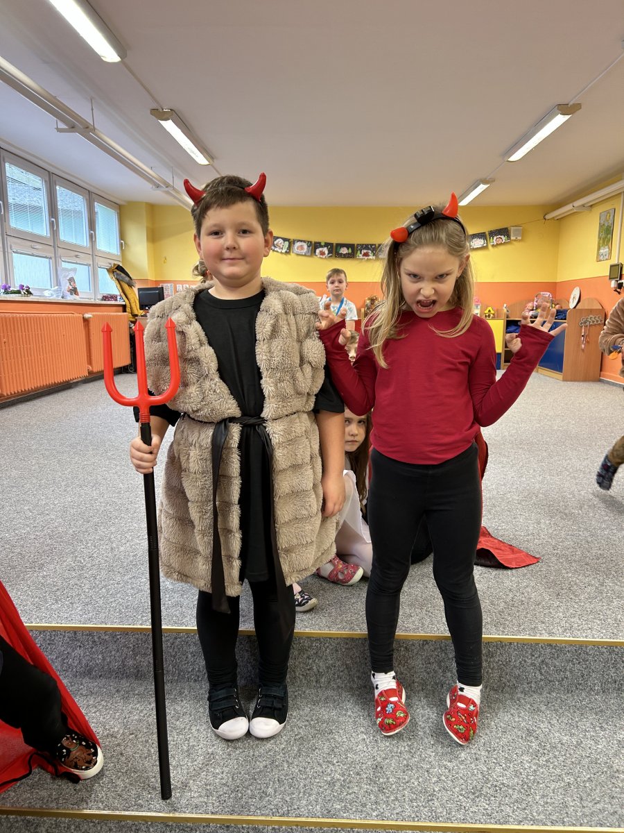 Dne 5.12. se v družince uskutečnila mikulášská besídka. Děti se proměnily v čerty, čertice a anděly. Společně jsme hráli hry, poslouchali čertovské písničky a tančili čertí tance. Dále děti vytvořily čerty a anděly, kterými jsme si ozdobili nástěnku, a na závěr dostaly sladkou odměnu.