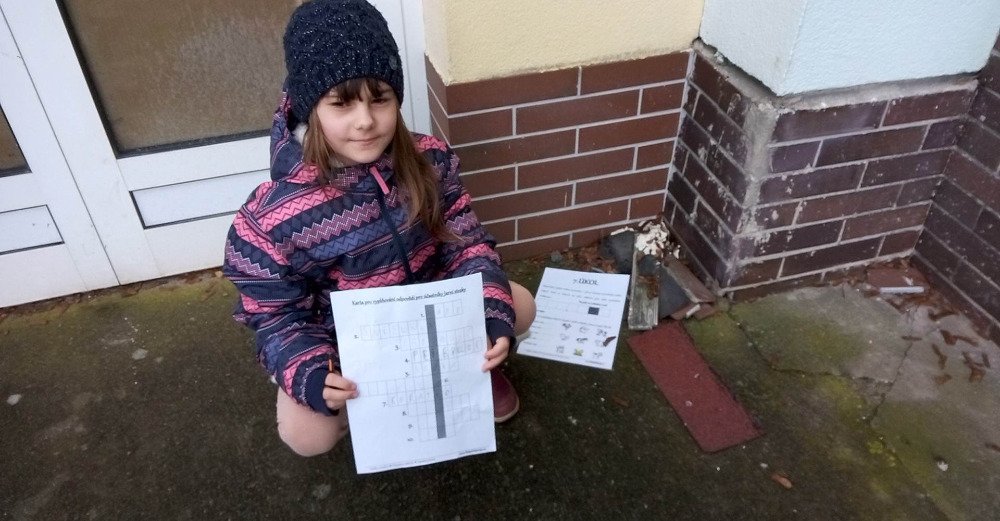 Bylo nás šest....a i tak to bylo prima a užili jsme si..... Paní vychovatelka nám v areálu školní zahrady nachystala v pátek 10.3. první JARNÍ STEZKU s křížovkou. Ano, JARO JE TADY... za pár dní oficiálně.