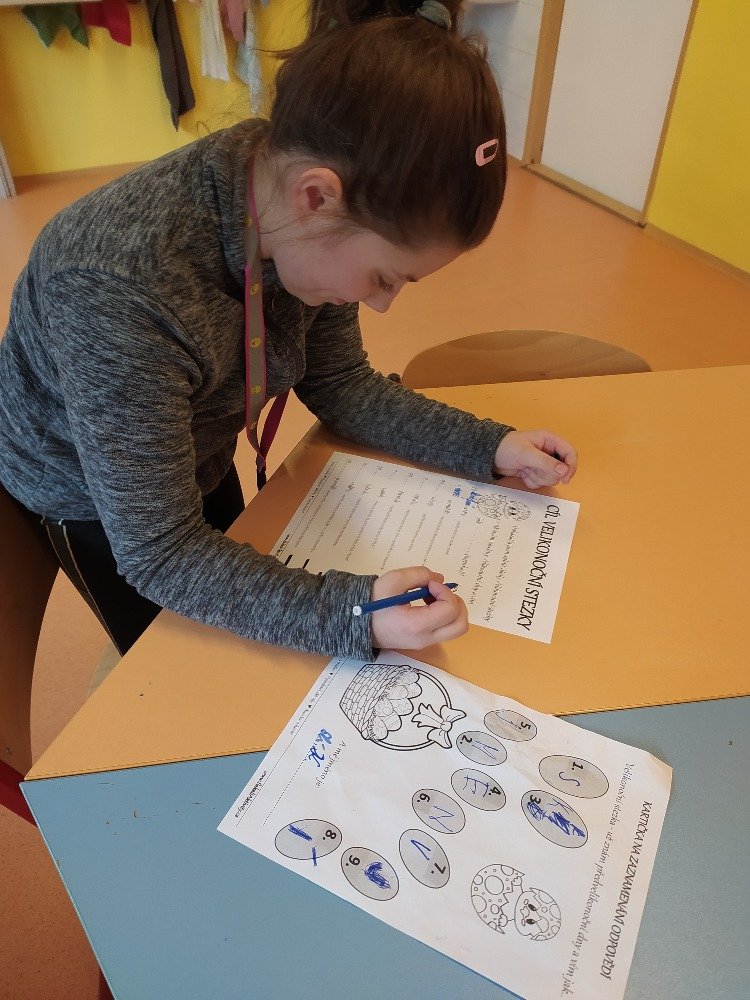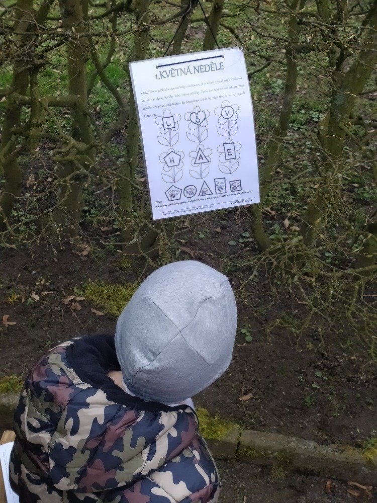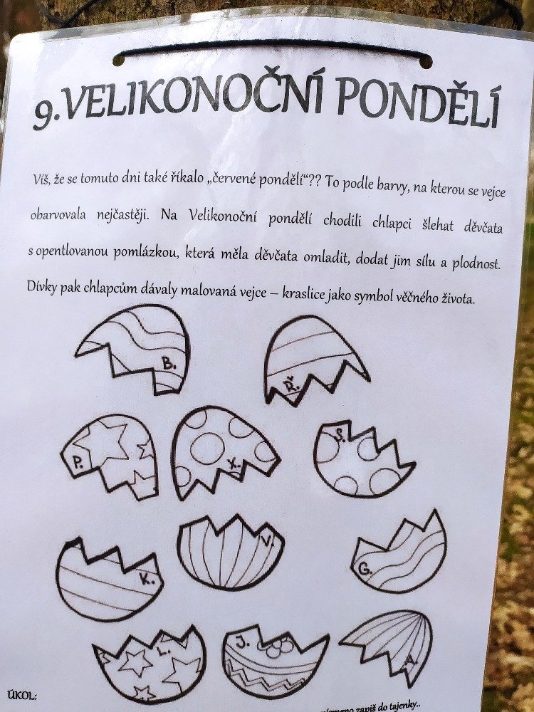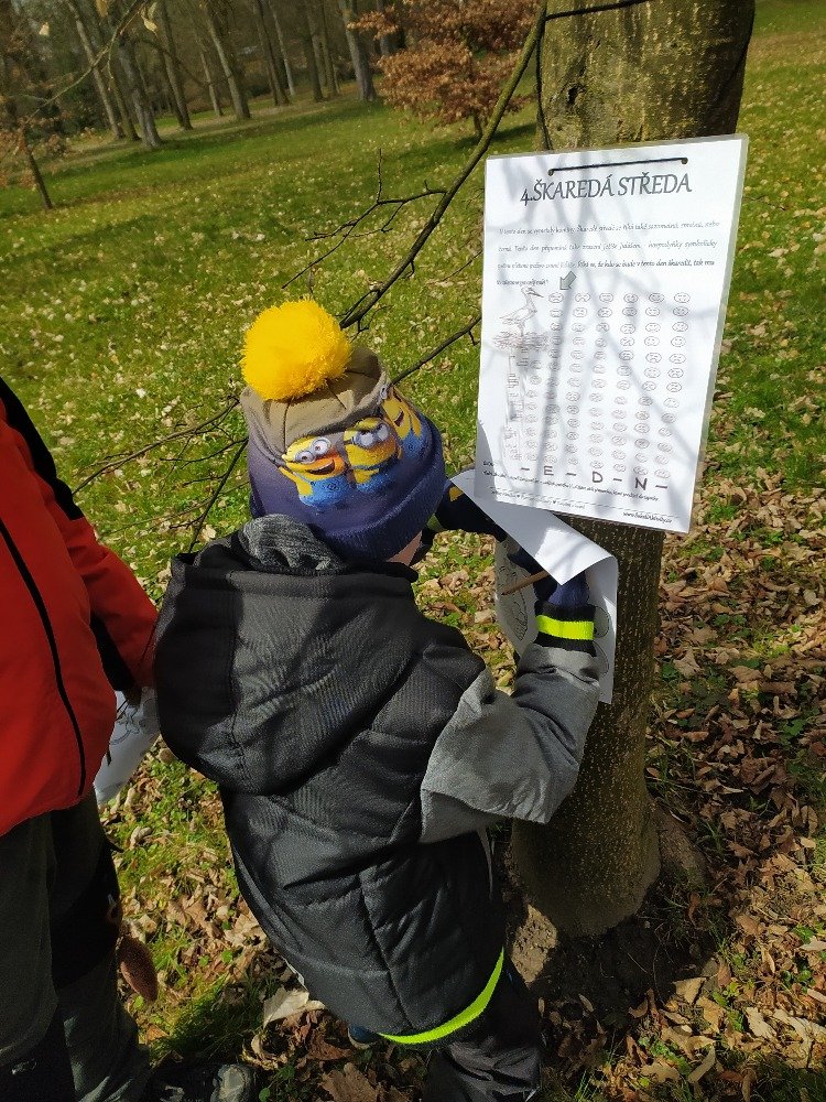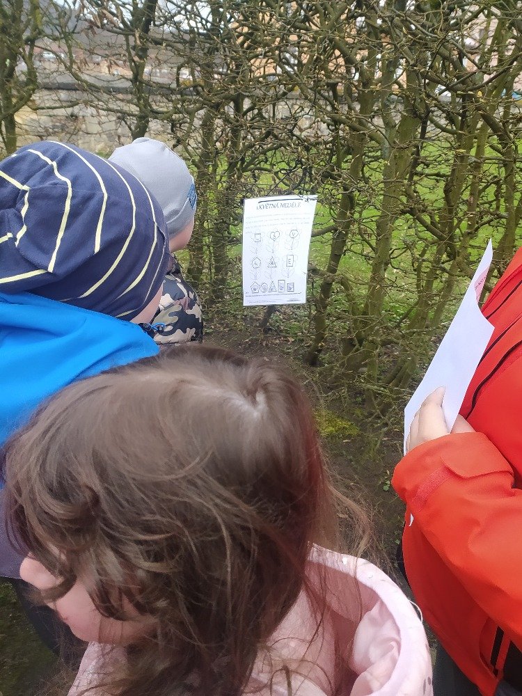 Měsíc duben jsme v naší družině začali Naučnou velikonoční stezkou v zámeckém parku. Velikonoční stezka byla situována tak, aby děti seznámila hravým způsobem s předvelikonočním časem. Děti procházely jednotlivá stanoviště a plnily úkoly tematicky zpracované podle názvu dní (Květná neděle, Šedivé úterý, Zelený čtvrtek, Modré pondělí, Škaredá středa, Velký pátek, Bílá sobota, Velikonoční neděle, Velikonoční pondělí).