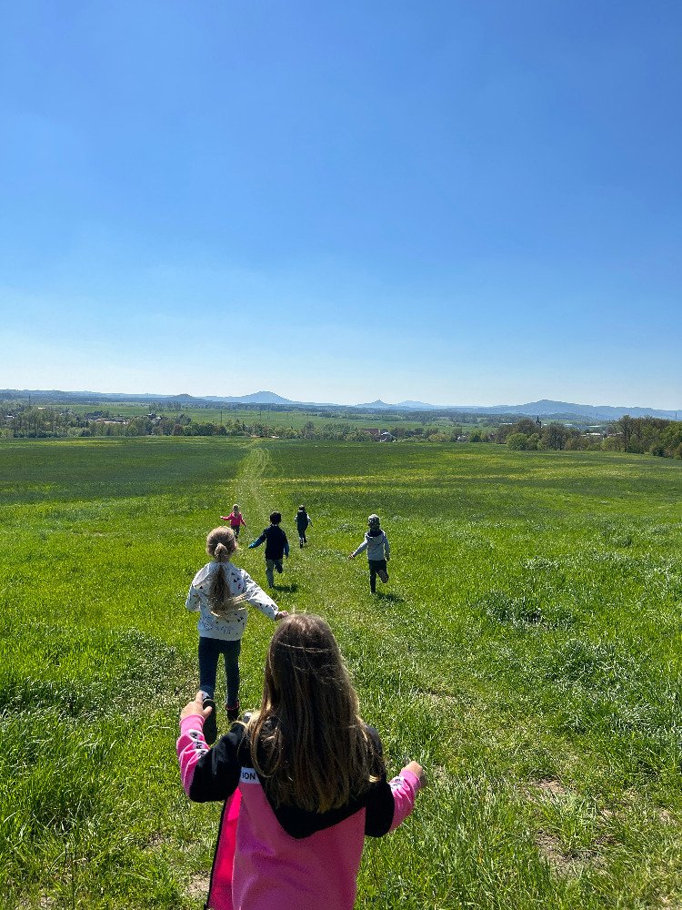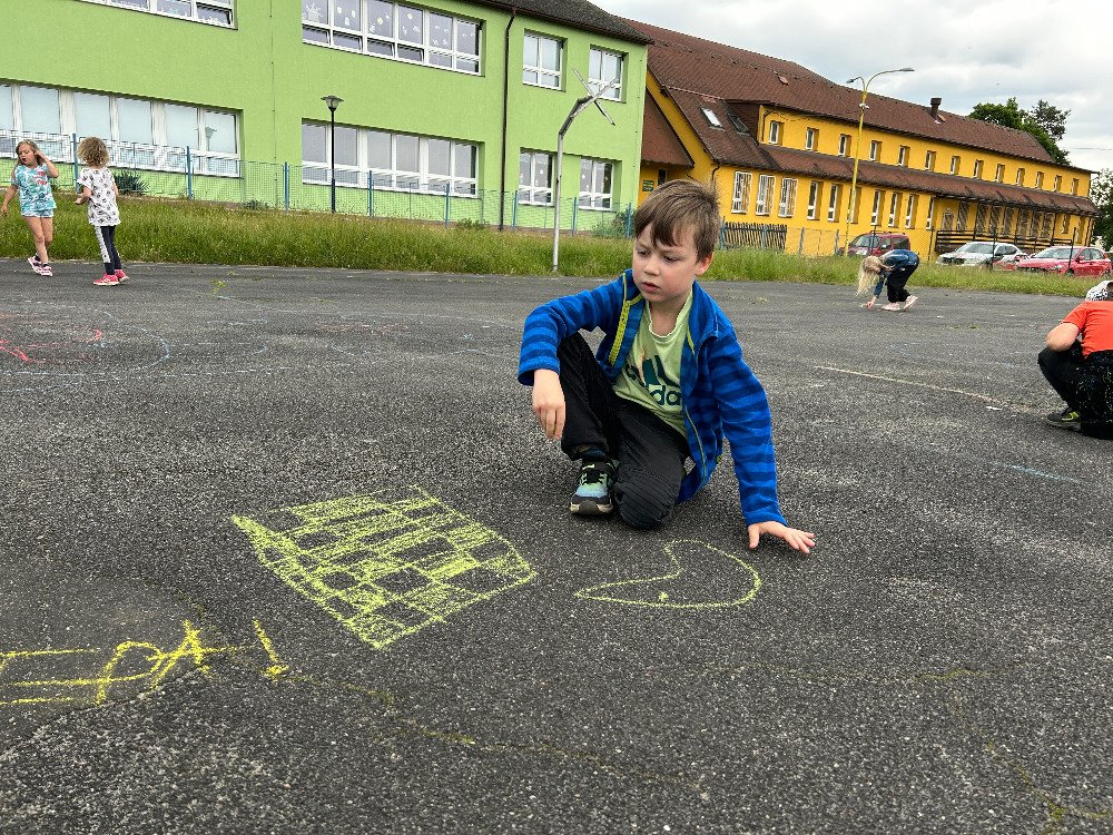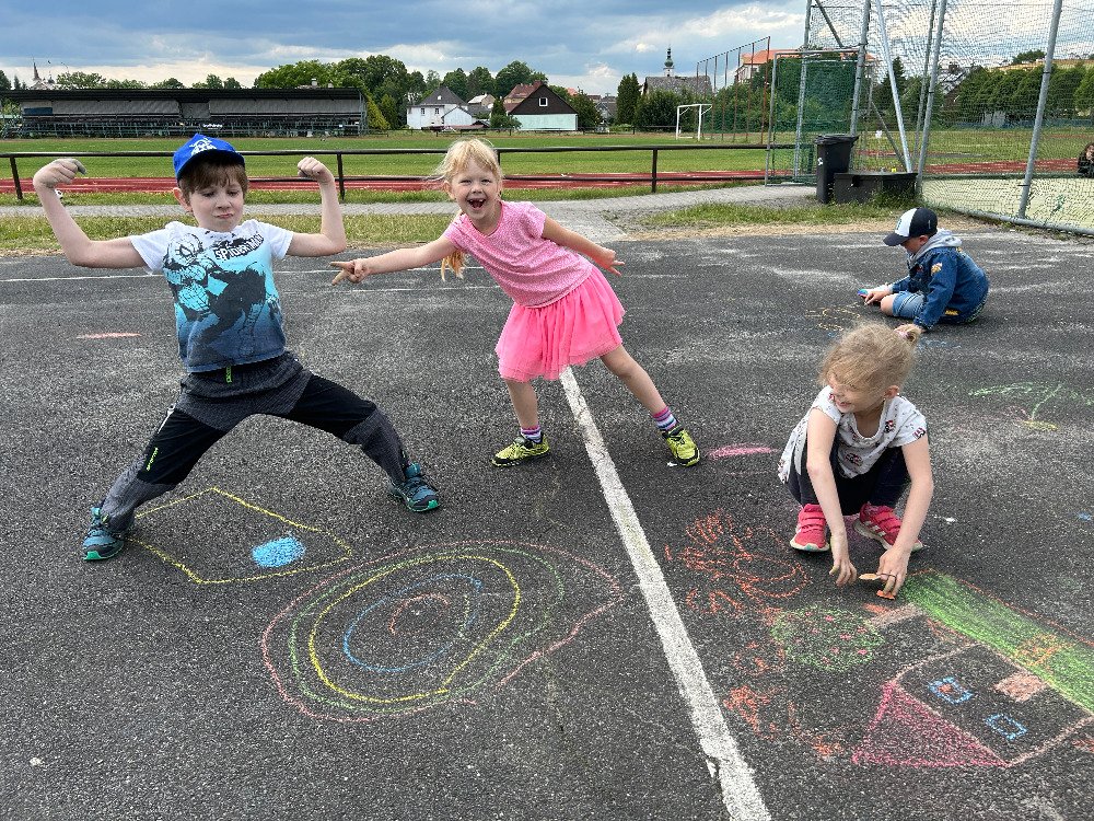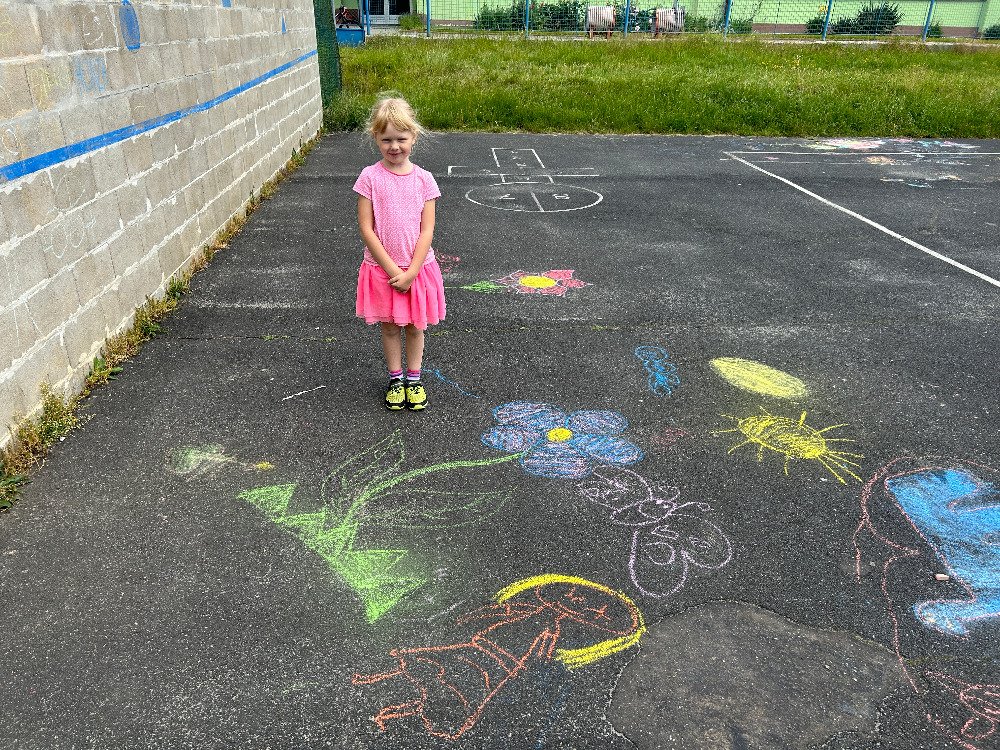Slunečné dny jsme s dětmi strávili nejraději venku v přírodě, kde jsme hráli různé hry, malovali křídami, hledali jarní květiny, aj. To co viděly děti venku v přírodě, následně přenesly v družince na papír, zapojily svojí fantazii a kreativitu a vytvořily krásné obrázky.
