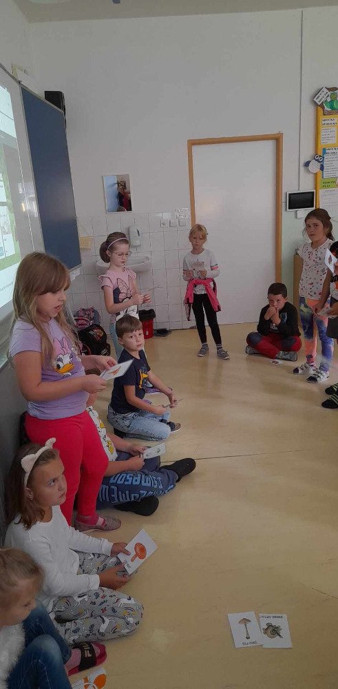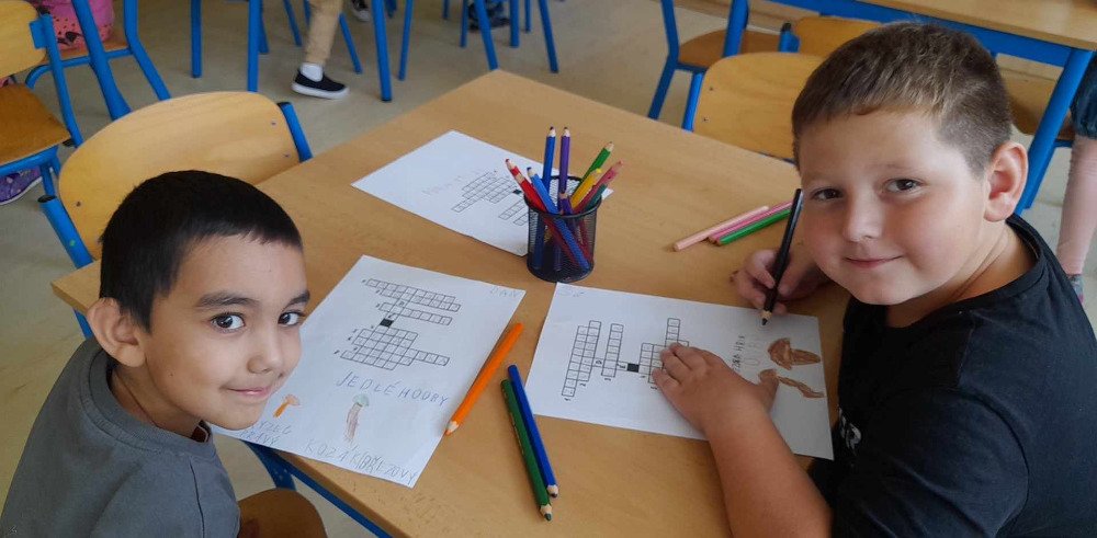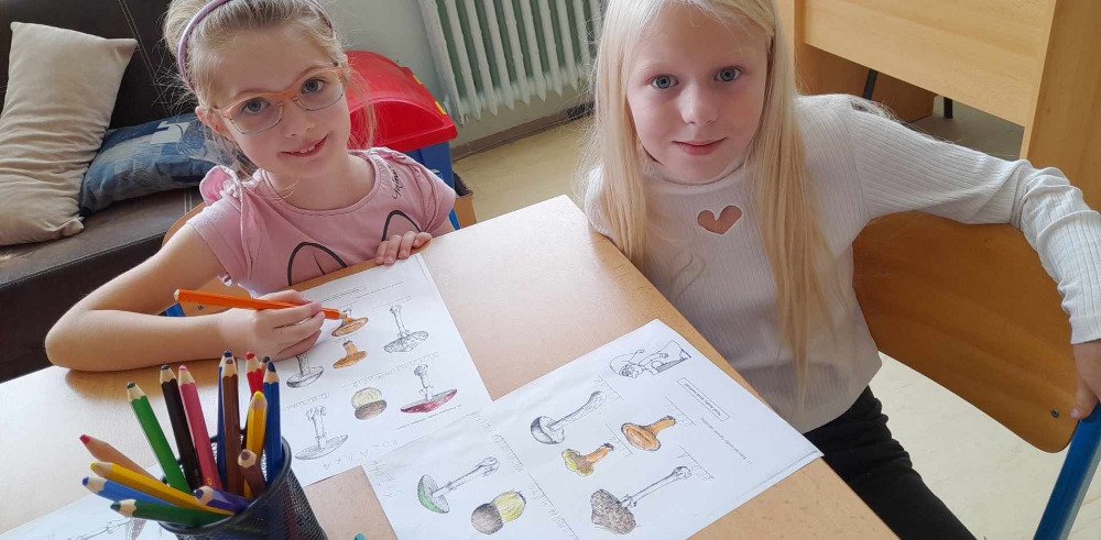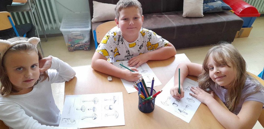 V týdnu od 2.10. - 6.10. poznávaly děti v družince houby. Nejprve jsme si pustili na interaktivní tabuli krátké povídání o tomto tématu. Potom děti vyplňovaly pracovní list, kde dle atlasu a kartiček dopisovaly názvy hub. Děti také luštily "houbovou křížovku" a poté pracovaly dál podle pokynů v tajence. V lese si potom vyzkoušely co se naučily, přiřazovaly názvy a třídily obrázky hub. Ač jsme se snažili, nepodařilo se nám žádné opravdové houby najít. Zkusíme to někdy příště. Na závěr děti získaly medaili houbaře a malou sladkou odměnu .