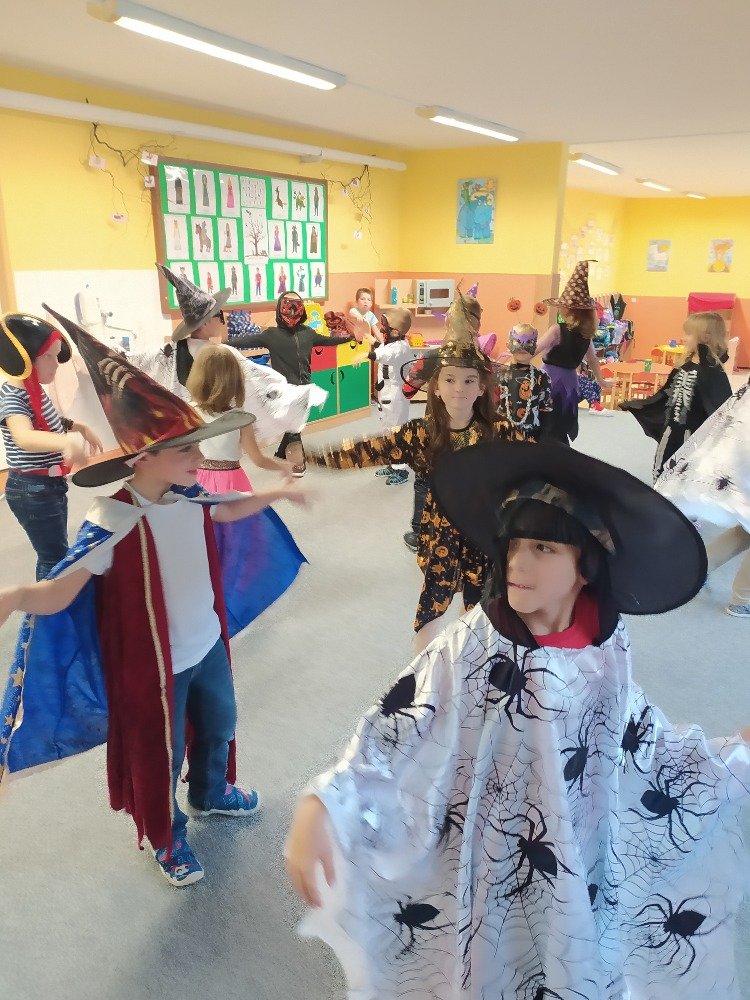 V týdnu od 30.10.2023 do 3.11.2023 byl pro děti v družince připraven Halloweenský týden. Děti se naučily básničku Duch, říkanku s pohybem Strašidla, poslouchaly pohádky o dušičkových postavách, vyrobily si z vaty "'ducháčka"'. Také si po škole prošly halloweenskou stezku, na které plnily zábavné naučné úkoly. Vyvrcholením celého týdne bylo halloweenské odpoledne. Děti si vyrobily lucerničku a zápich dýně do květináče. V tomto odpoledni si děti v převlecích zatancovaly a účastnily se zábavných soutěží. Děti za odměnu dostaly diplom, medaili a halloweenský bonbón.