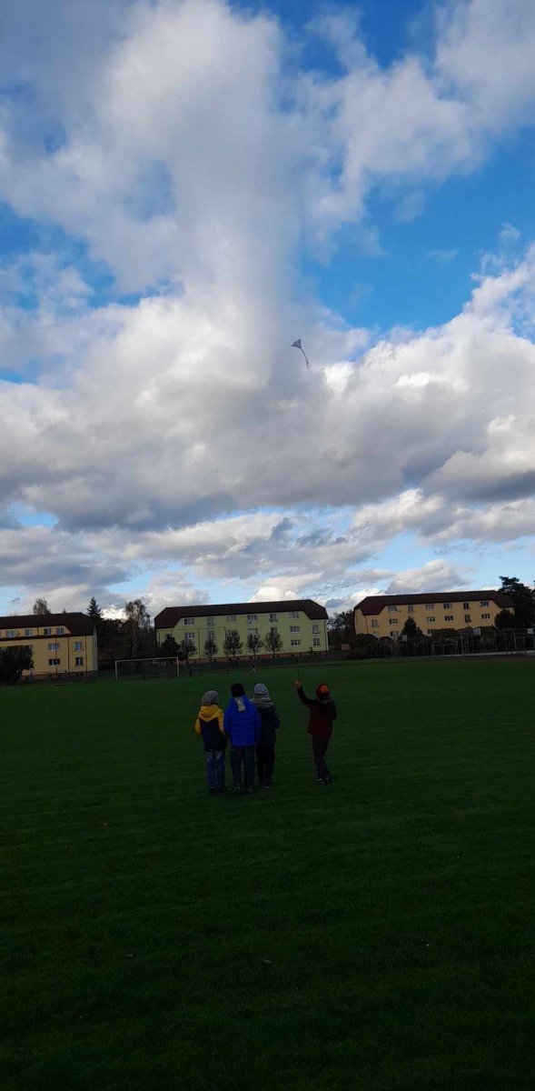 K podzimu patří draci a draci patří k družince...tedy pokud je to správné počasí...a vítr hezky fouká...nejlépe když k tomu ještě svítí sluníčko.Ale to bychom toho chtěli hodně...Děti v družince byly rády,že se podařilo vychytat několi dní a dráčky pouštět a užít si tak toho krásného pocitu,když se dráček vznáší nad hlavou...