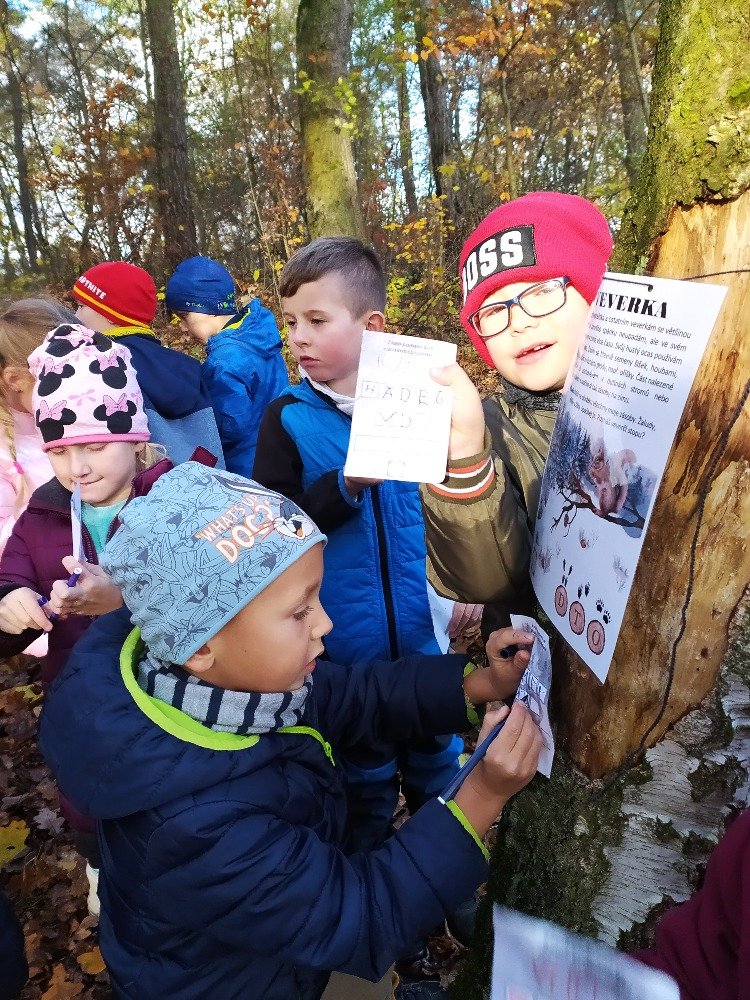 Ve čtvrtek 16.11.2023 se děti z naší družinky vydaly do Heldova lesíka na lesní stezku, na které se dozvěděly spoustu zajímavých informací o zvířátkách, ale také měly za úkol přiřazovat ke zvířatům jejich stopy. Všem dětem se velice dařilo a za odměnu dostaly diplom ,,stopař lesní zvěře ".