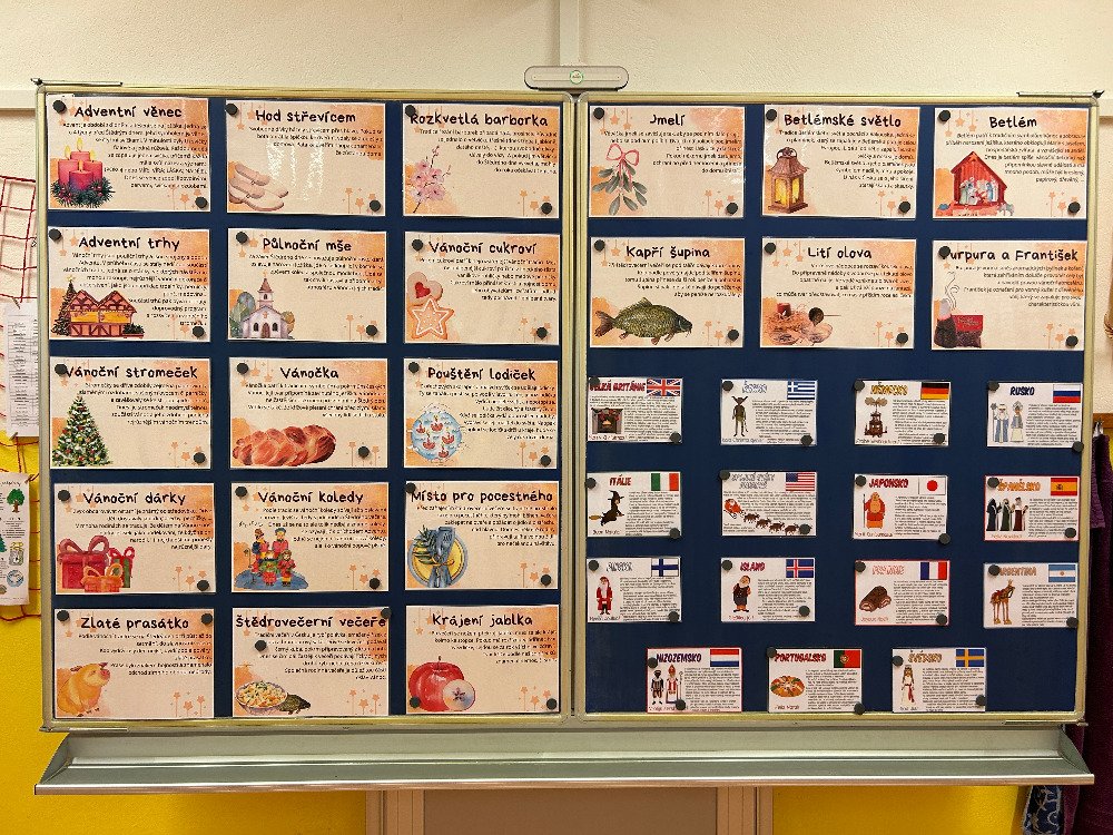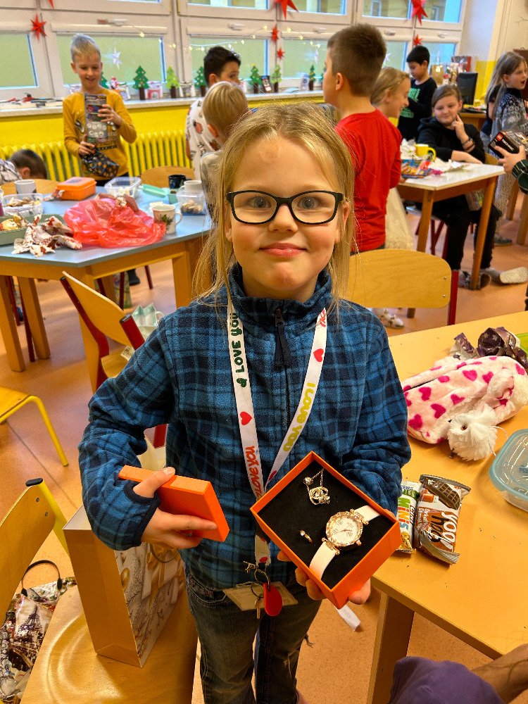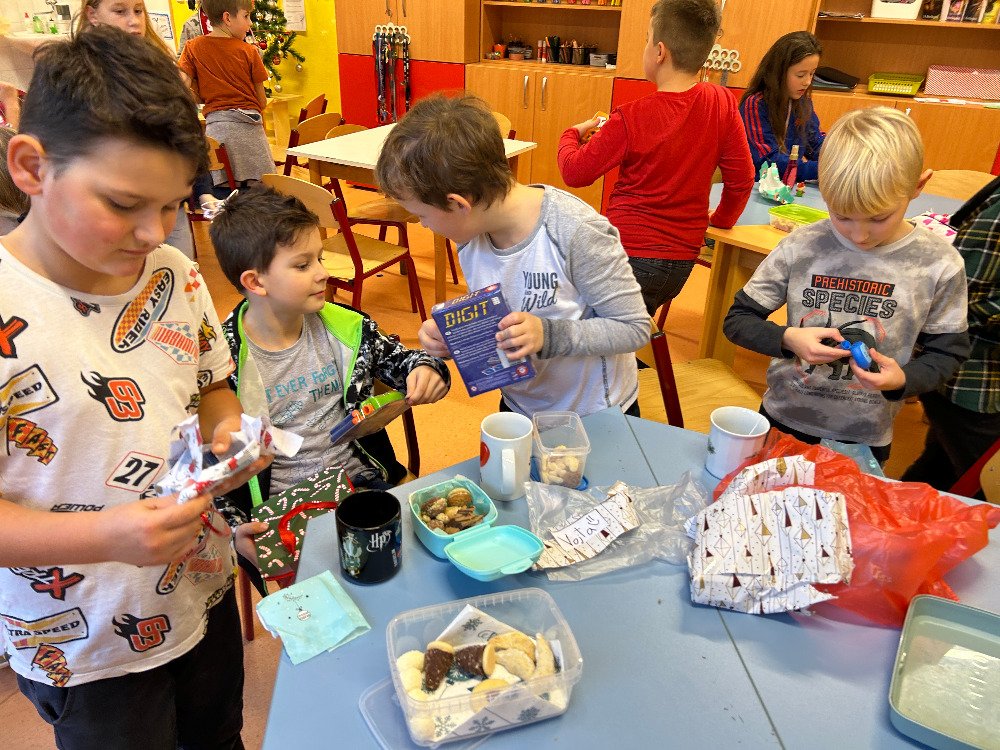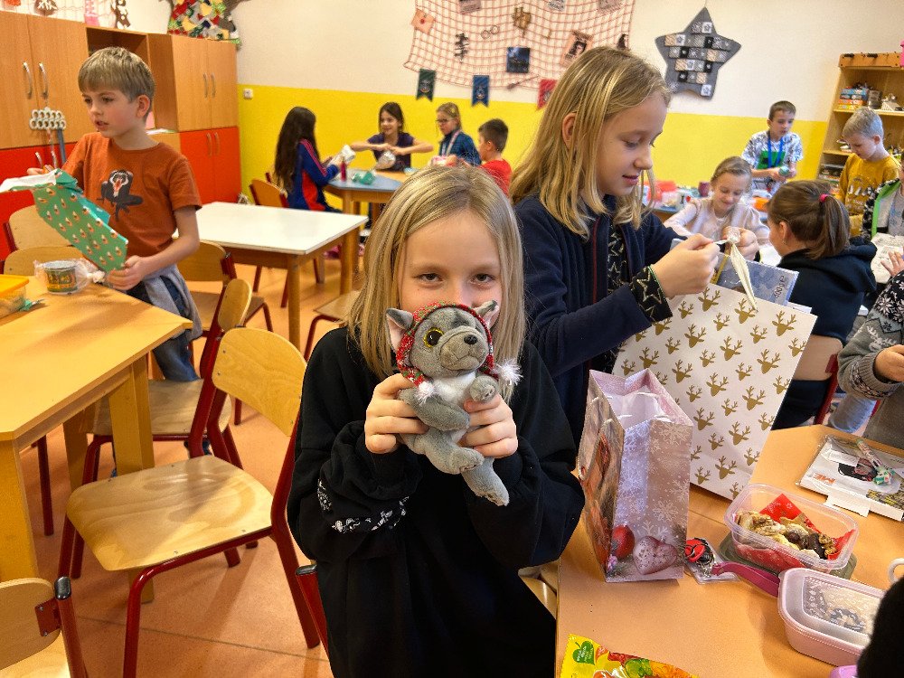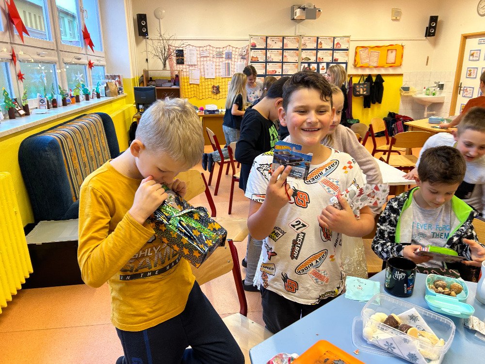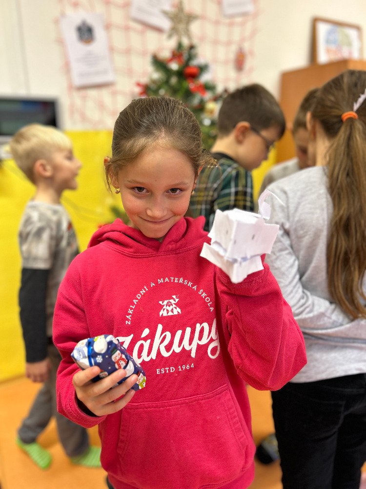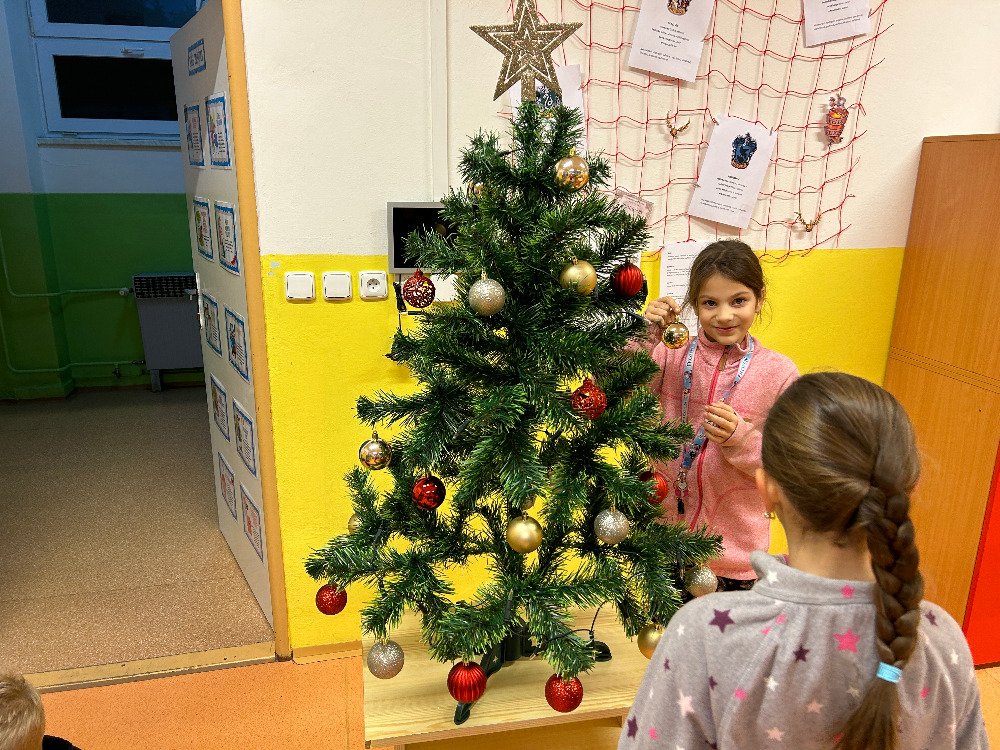 V prosinci jsme se s dětmi v družině věnovali přípravám na Vánoce. Vyzdobili jsme družinu, ozdobili stromeček a společně si užívali předvánoční čas. Vyráběli jsme vánoční dekorace a obrázky, luštili kvízy. Dále jsme si připomněli vánoční tradice a zvyky, které se dodržují u nás a ve světě. Dne 21. 12. se uskutečnila vánoční besídka. Pod stromečkem na děti čekaly dárečky, které si navzájem přinesly. Po družině se rozléhal smích a nadšení z dárků. Po rozbalení dárečků jsme si pochutnali na cukroví, přiťukli si čajem a zazpívali si koledy.