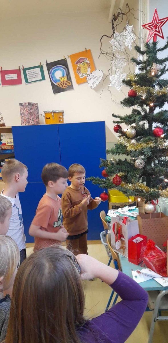 VÁNOČNÍ BESÍDKA U SOVIČEK proběhla 21.12.Děti si užily nabitý program,běhací šifrovačku,vánoční hádanky,zpěv a poslech koled,vánoční literární pásmo.Také si vyzkoušely štědrovečerní zvyky a poslechly si pohádku O vánocích,které nechtěly být....Záhrály si vánoční bingo a vyrobily si vánoční záložku.Nakonec na děti čekal malý dáreček,který charakterizuje naši družinku a bude jim ji připomínat.Radostné vánoce všem lidem dobré vůle!.