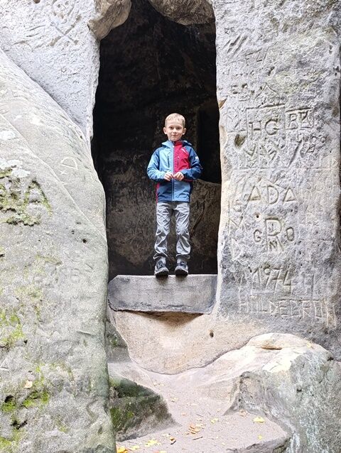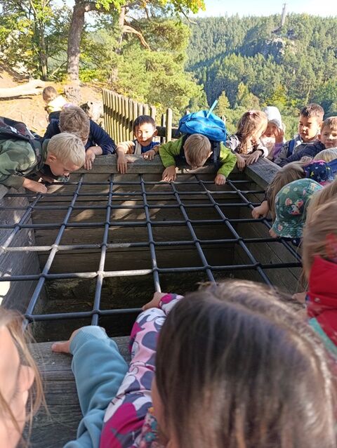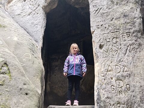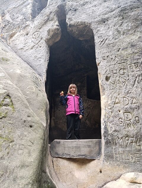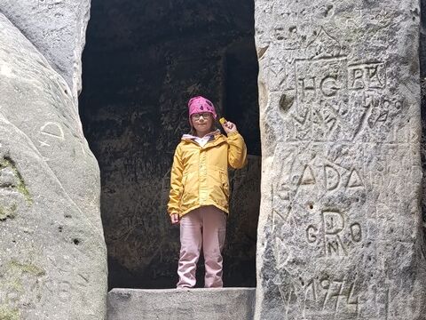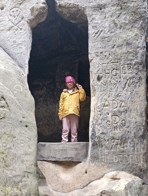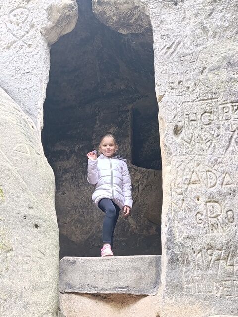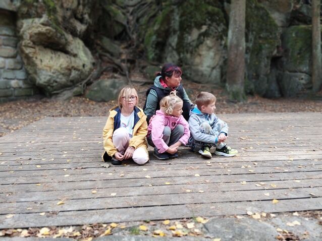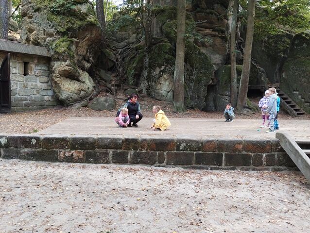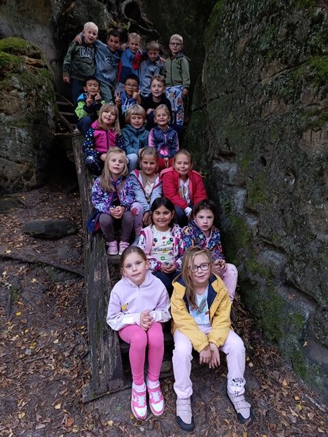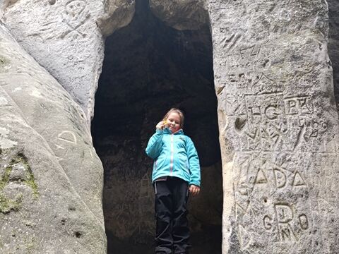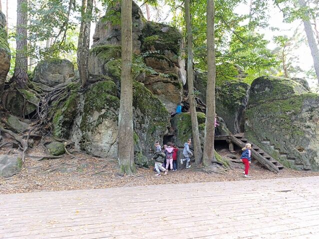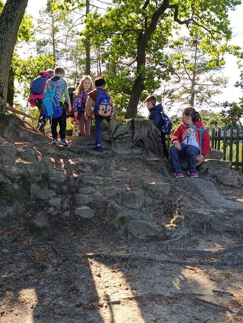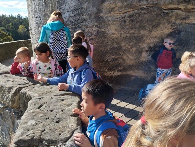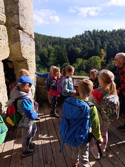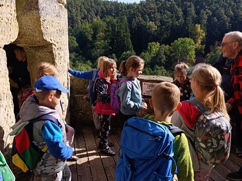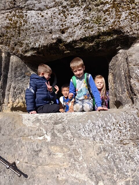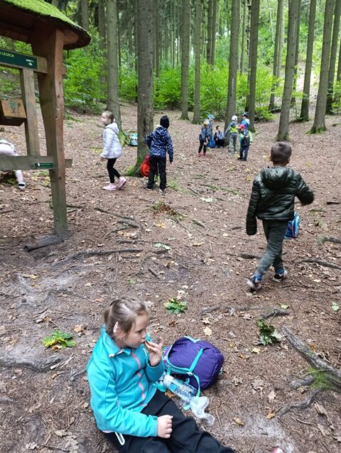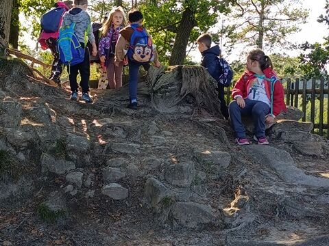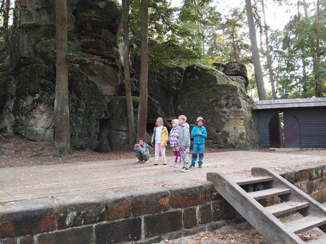 Zažili jsme toho spoustu – v Samuelově jeskyni jsme hledali korálky od princezny, skládali jsme puzzle draka, který princeznu unesl, byli jsme na výletě na skalním hradě, kde to bylo moc pěkné a zajímavé, ve skalním divadle jsme si zahráli pohádku „Domeček“, měli jsme večerní stezku odvahy, kterou jsme všichni statečně zvládli a našli poklad, soutěžili jsme ve sportovních disciplínách ( skákání v pytli, přetahování lanem, štafetový skok,…, ale i v tvorbě (výroba papírových draků) a také jsme se trochu učili. Mnoho z nás si vyzkoušelo, jaké to je, být téměř 3 dny a 2 noci bez maminky. Všichni jsme byli stateční a zvládli jsme to téměř bez slziček.