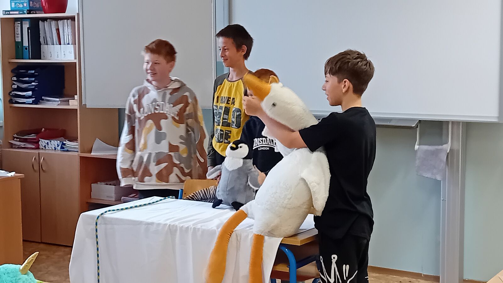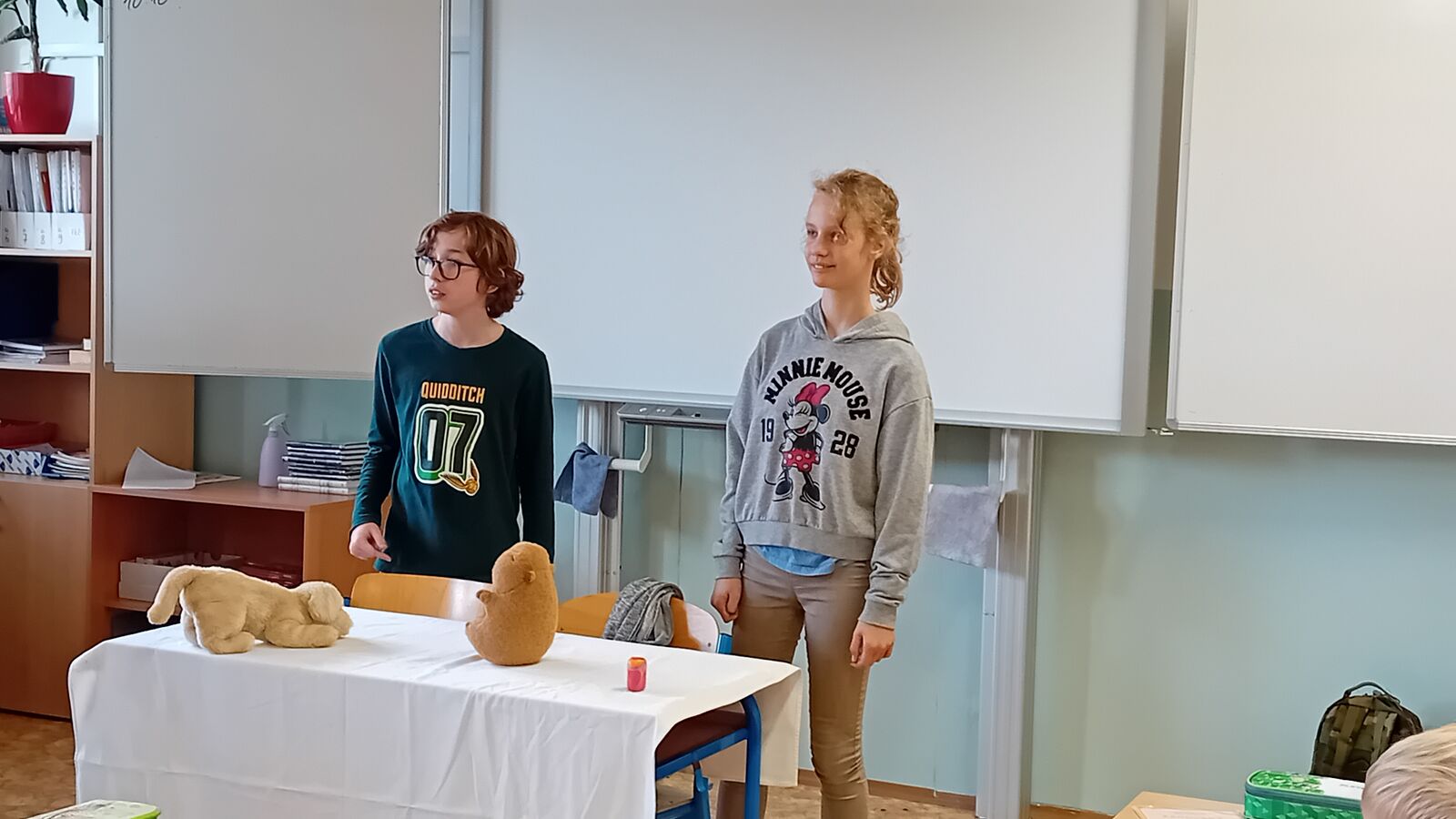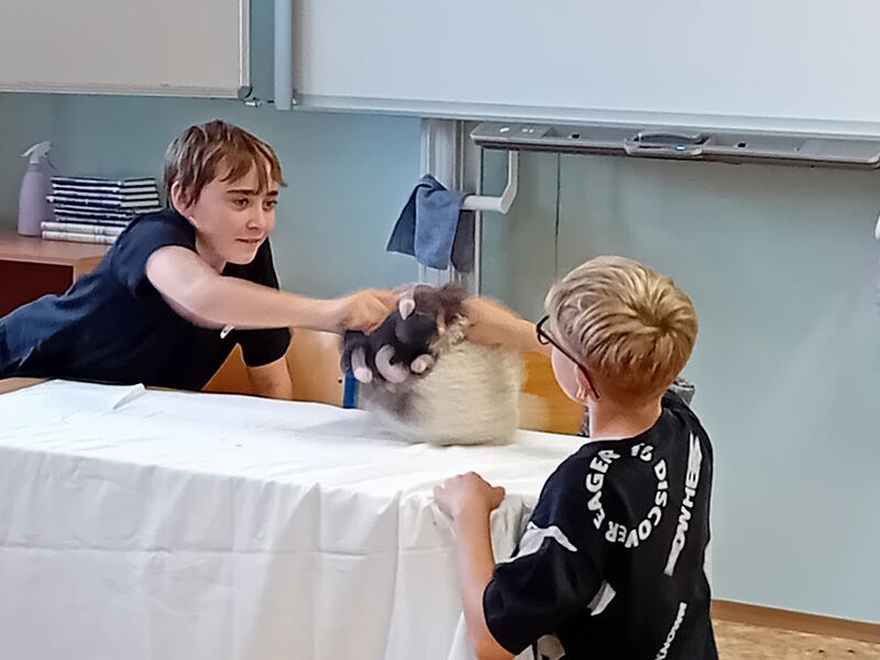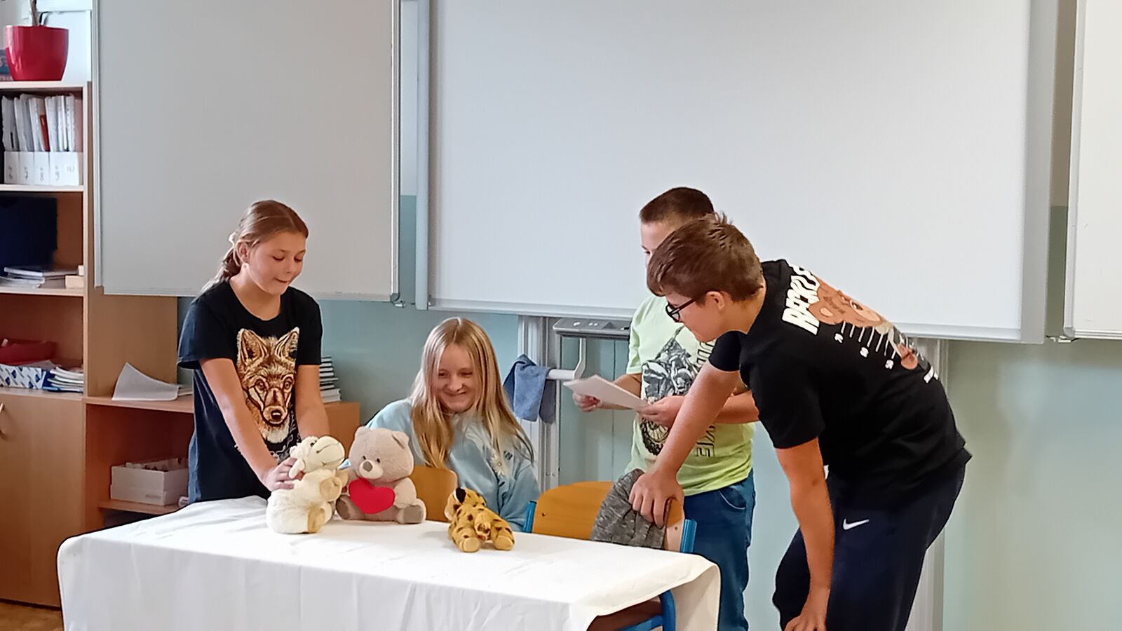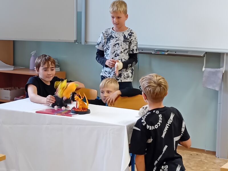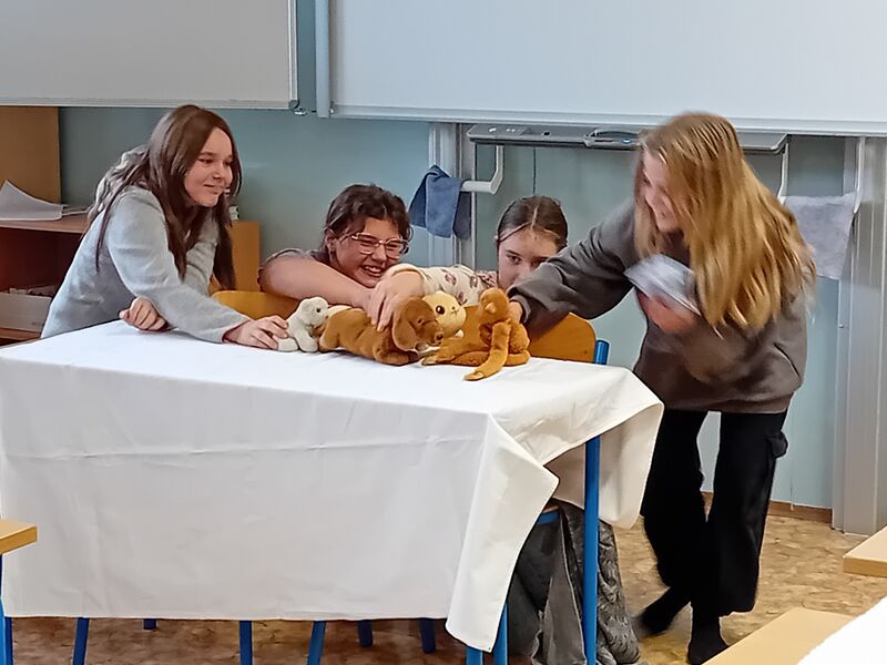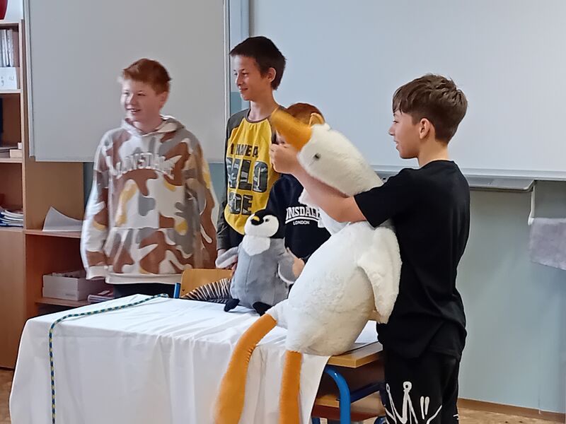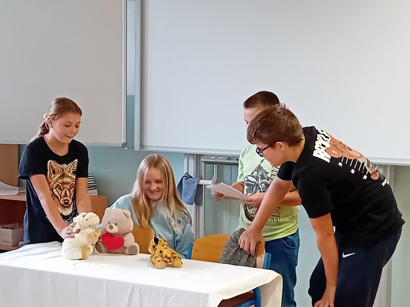 Na závěr učiva v literatuře - pohádka - si žáci ve skupinách připravili dramatizaci pohádky s plyšáky.