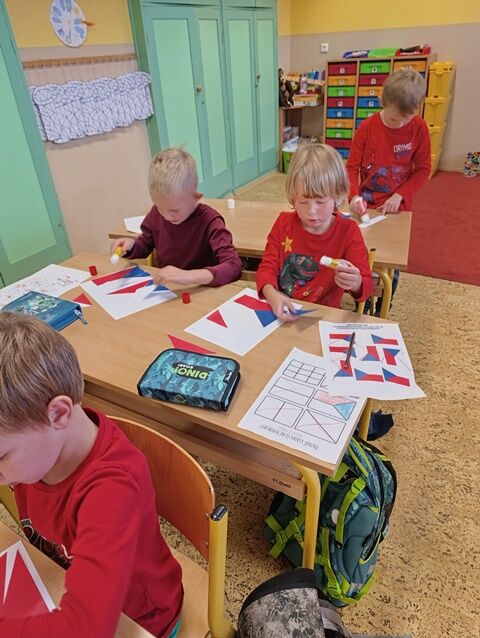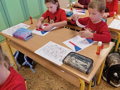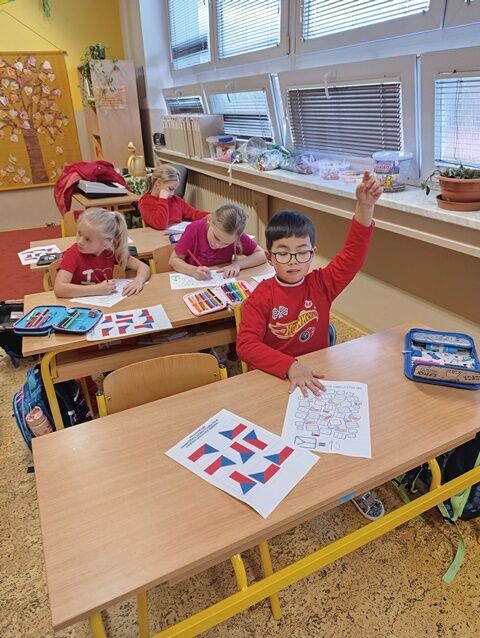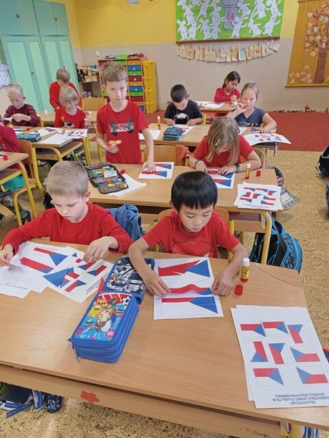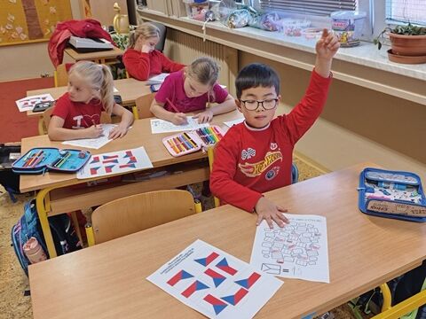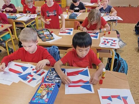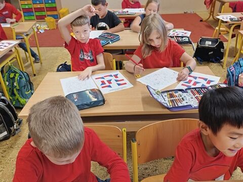 V 1. třídě jsme se zaměřili především na naši státní vlajku. Seznámili jsme se i s dalšími státními symboly. Řekli jsme si, jak naše republika vznikla a poznali osobnost našeho prvního prezidenta T. G. Masaryka. Také jsme plnili různé úkoly týkající se naší vlajky. Poslechli jsme si naši státní hymnu a naučili se při ní správně chovat.