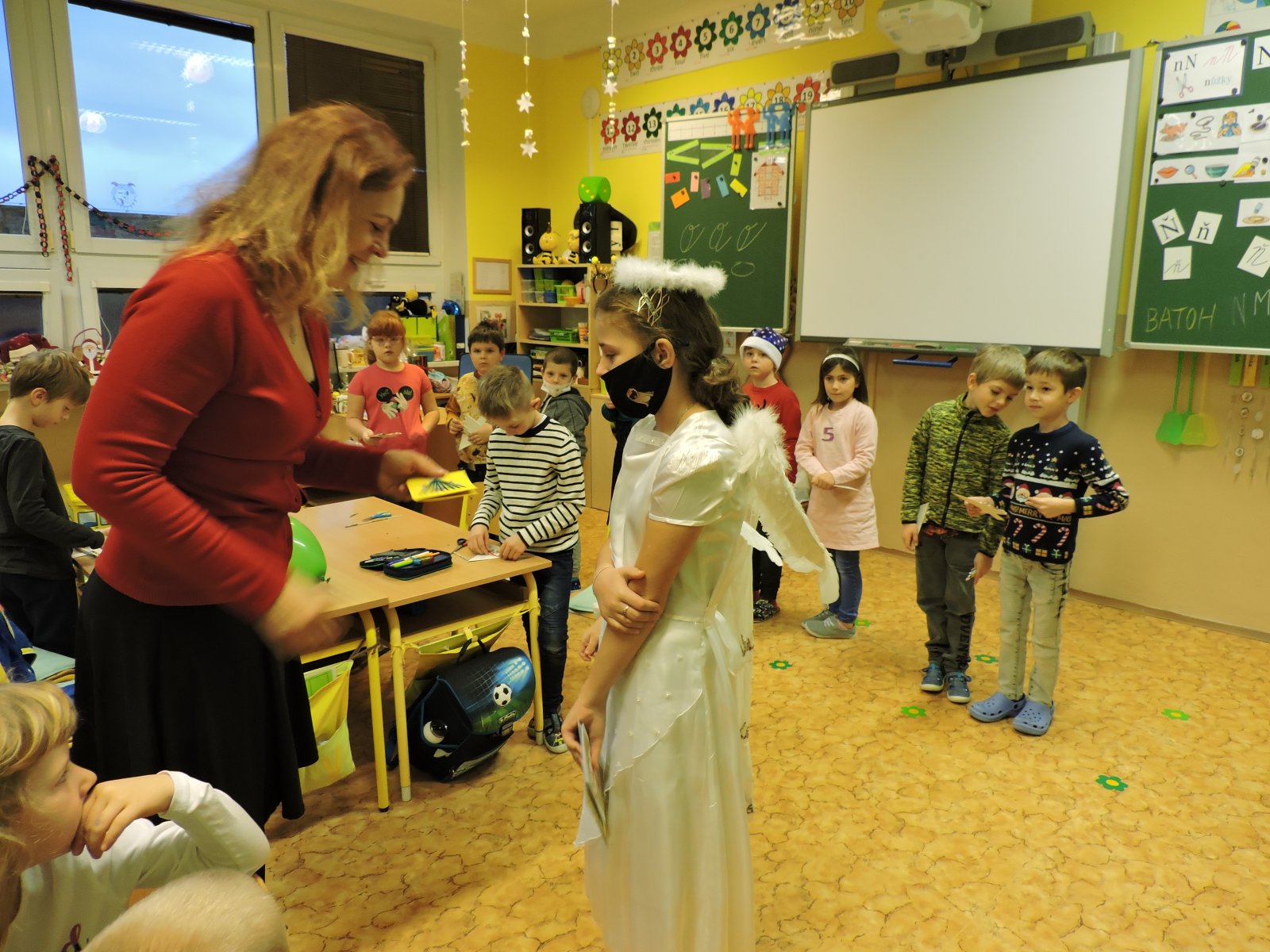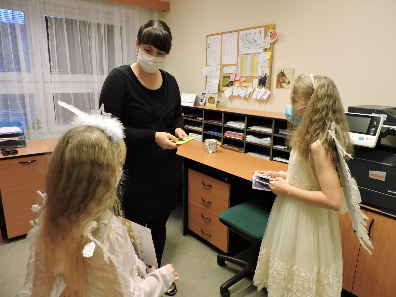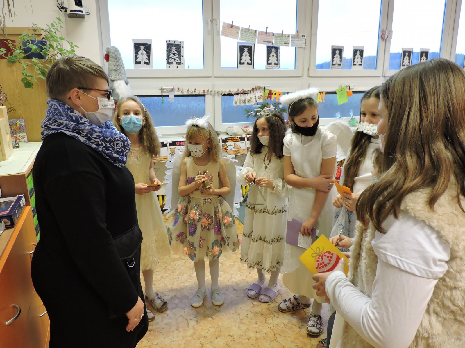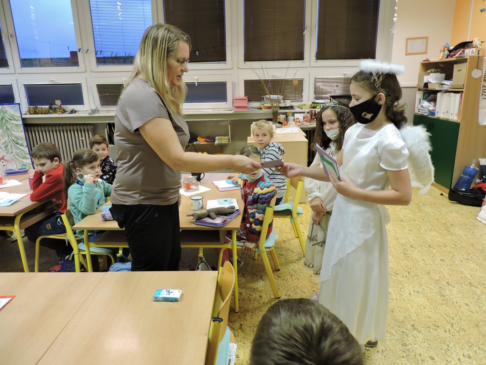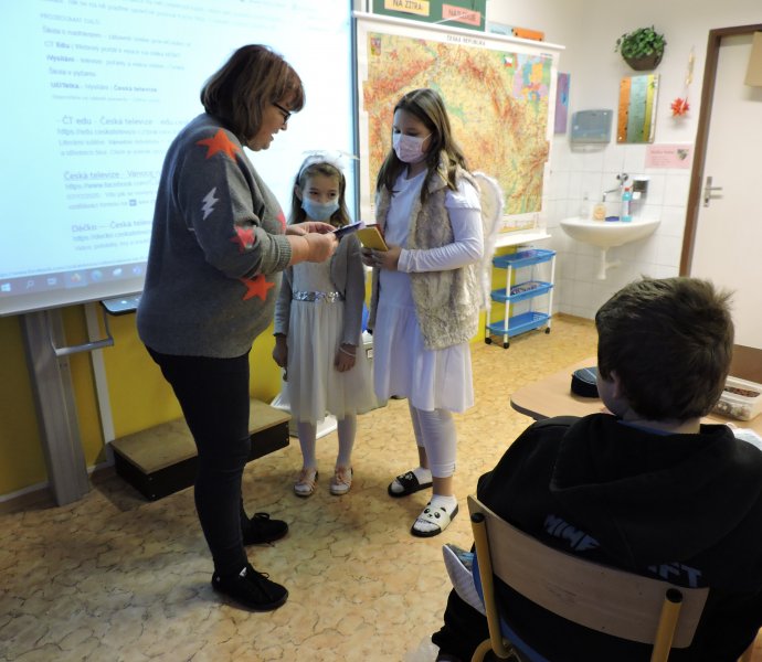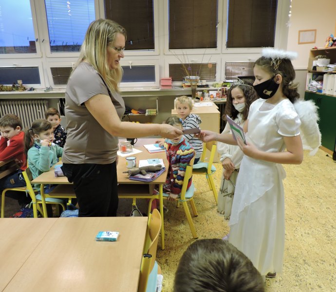 V pátek 17.12. se k nám do naší školy slétli andělé. Ti obešli zaměstnance školy. Všem předali přání krásných a požehnaných Vánoc a popřáli hodně sil do nového roku 2022. Přání tajně a andělsky vyrobili žáci školy. Učitelé a i ostatní zaměstnanci byli touto andělskou poštou příjemně zaskočeni a dojati. A tak se nám v covidové době povedlo potěšit a na chvíli zapomenout.