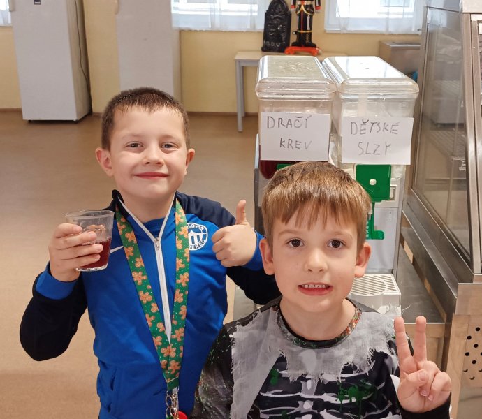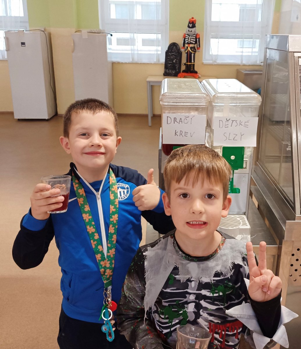 V pondělí jsme si tak mohli dát polévku staré čarodějnice z vydlabané hlavy, vychutnat si strašidelné těstoviny s krvavou omáčkou, sypané červíky, jako dezert si dát Hejkalův perníček a vše zapít dračí krví či dětskými slzami.