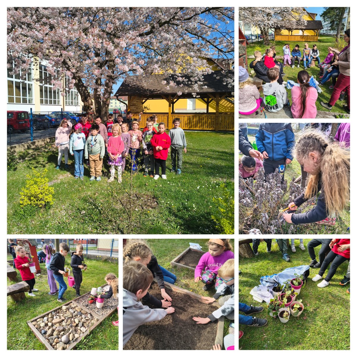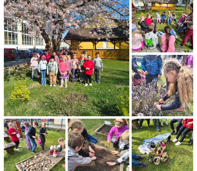 První jarní paprsky nás nenechaly v klidu a vylákaly nás ze tříd ven. Žáci 2. ročníku se s chutí pustili do práce a proměnili se v malé zahradníky. Společně jsme: