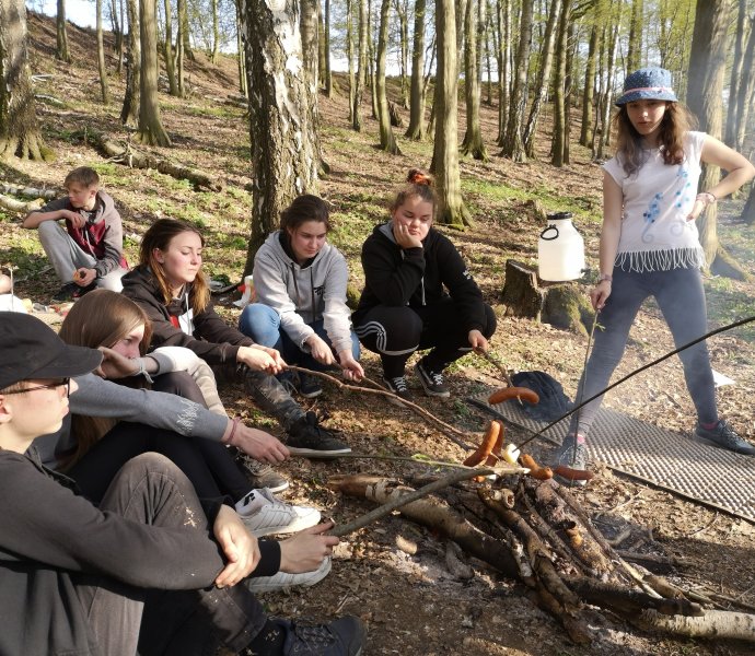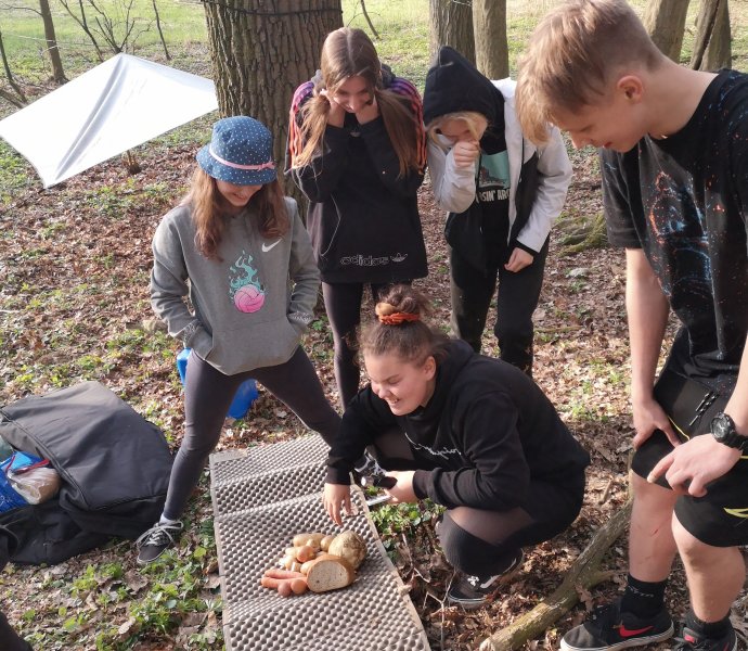 Opravdový kurz přežití poslední dubnový víkend zorganizovala pro nejstatečnější z našich deváťáků paní učitelka Kucová.