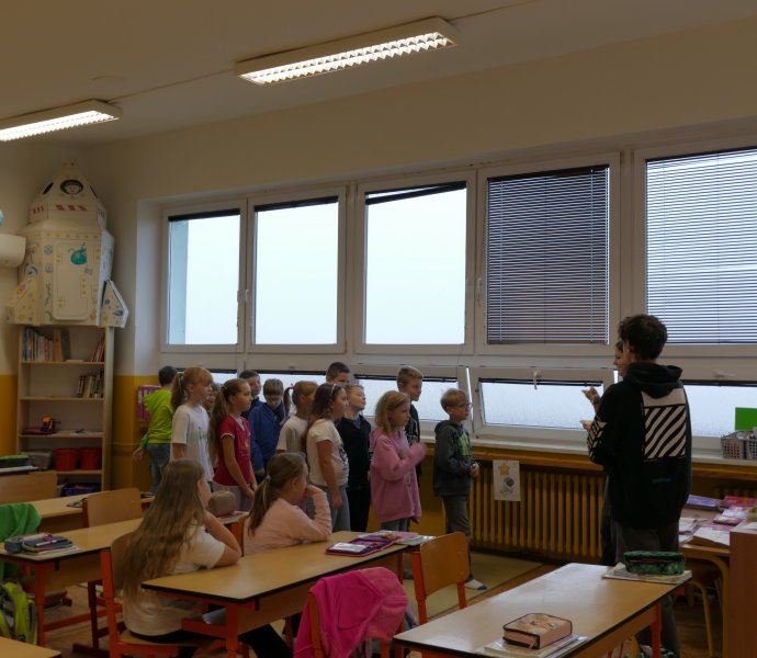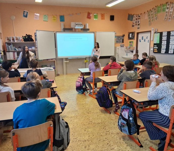 V letošním roce se do projektového dne zapojili i žáci 9. tříd, kteří si pro žáky I. stupně připravili prezentace o zdravé výživě, ale i soutěže s úkoly.