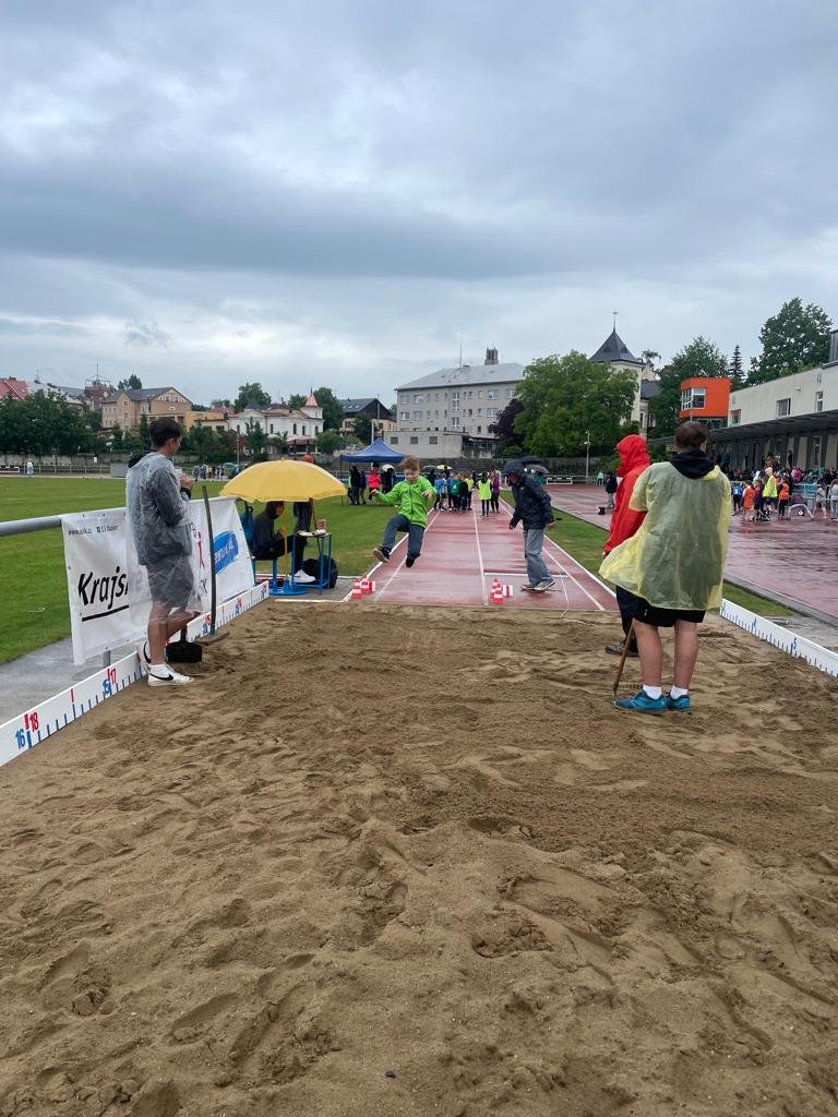 Krajské finále se konalo už v úterý 6. června na atletickém stadionu v Turnově. Přestože se závody uskutečnily za deštivého počasí, naši žáci podali velmi pěkné atletické výkony a dokonce měli možnost se setkat s českým reprezentantem Adamem Sebastianem Helceletem, po kterém se celý závod jmenuje.