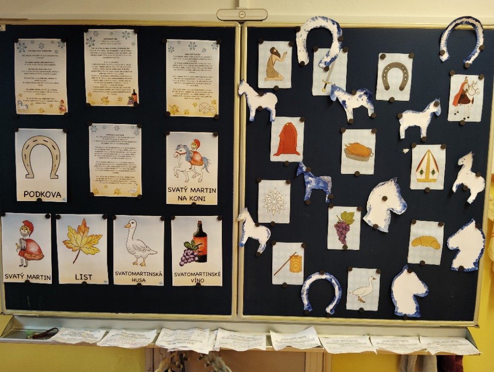 V pondělí a úterý se děti zábavnou formou seznámily se vším, co je spojené se svátkem svatého Martina. Nejprve jsme si společně poslechli legendu, poté děti vytvořily svatomartinské obrázky. Na závěr si děti prošly připravenou stezku svatého Martina, jejímž cílem bylo vyplnit tajenku, kterou musely složit z jednotlivých úkolů během stezky.