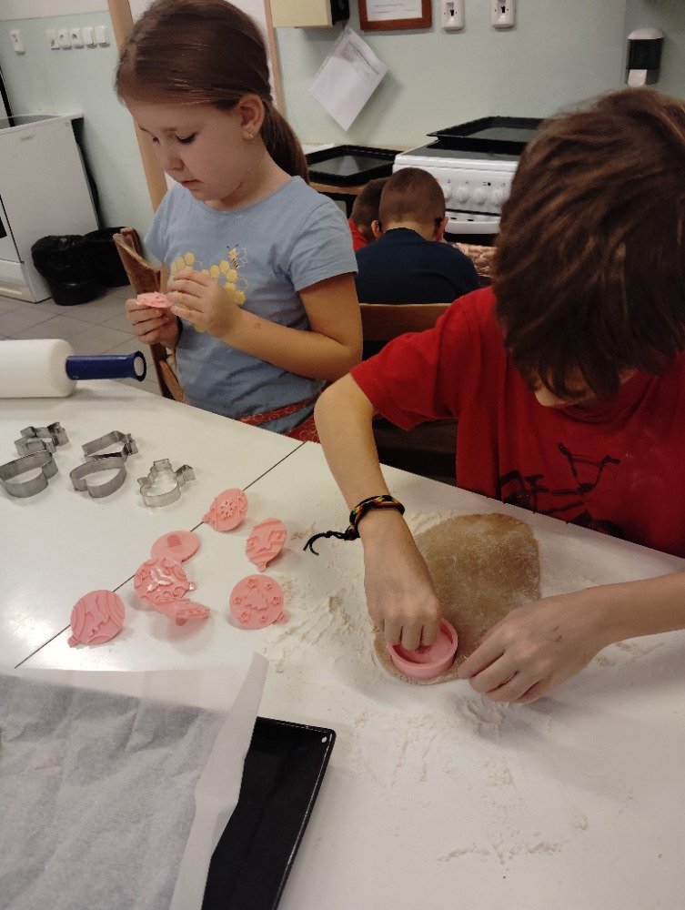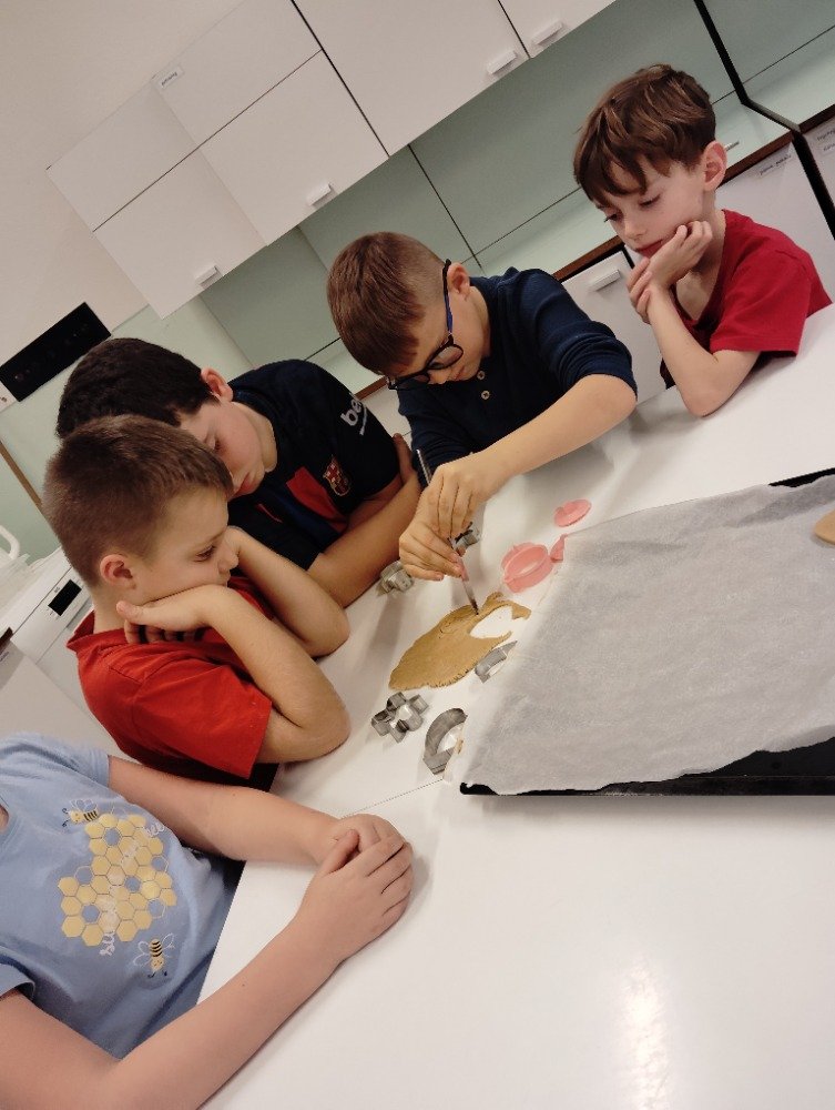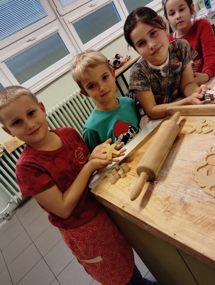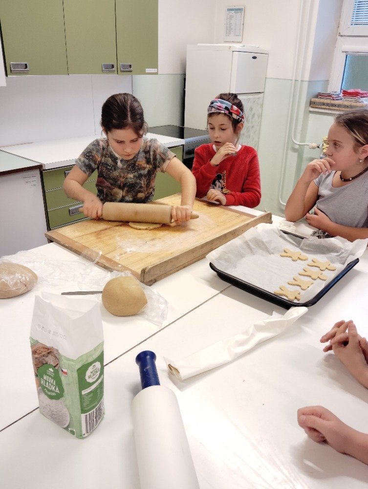 Dnes 3.12. jsme si vyzkoušeli jeden z adventních zvyků a to pečení vánočních perníčků. Děti si z připraveného těsta vyválely a vykrajovaly motivy s vánoční tématikou. Potom jsme společně tyto perníčky upekli a děti dostaly za družinkový úkol doma si společně s rodiči perníčky ozdobit.