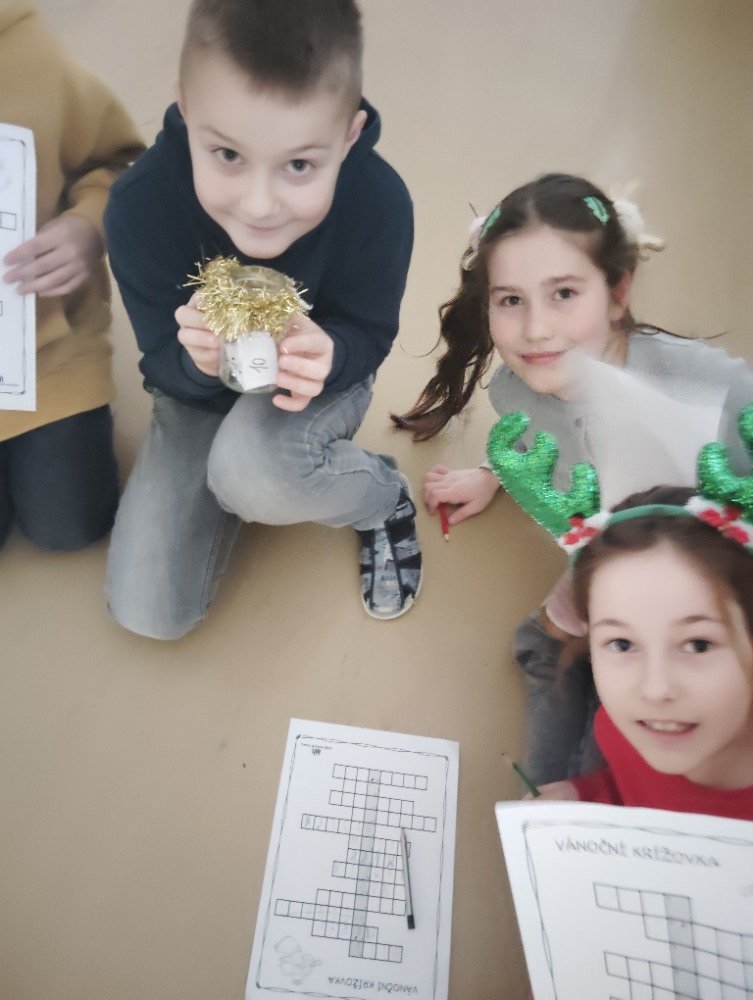 Předvánoční dny a čekání na Ježíška jsme si zkrátili vánoční povídkou a zajímavou hádankovou hrou v naší škole. Společně s dětmi jsme si přečetli povídku. Návazně na to měly děti za úkol najít po škole poschovávané otázky vztahující se k povídce. Uhodnutou hádanku měly za úkol zapsat do tajenky, kde jim na závěr vyšlo Vánoce se blíží.