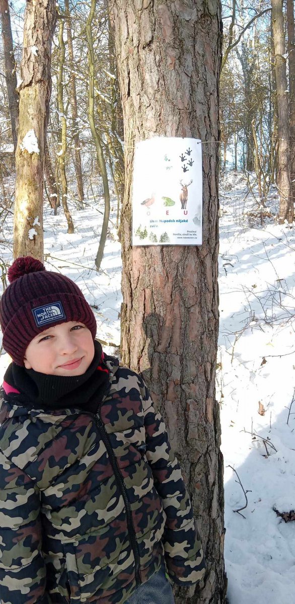 V týdnu od 17.2. do 21.2. jsme se v družince snažili využít co nejvíce zímní mrazivé počasí.A tak jsme se,kromě bobování a hrátek na sněhu,učili poznávat stopy zvířat.Nejprve jsme měli průpravu v družince ,kde jsme přiřazovali stopy k obrázkům a také jsme na oknech prosvěcovali obrázky zvířátek.Luštili jsme křížovky ,kde jsme také hledali stopy.Stopy jsme pak zkoumali i v lese,kde nás pak čekala naučná stezka s tajenkou SUPER STOPAŘ.