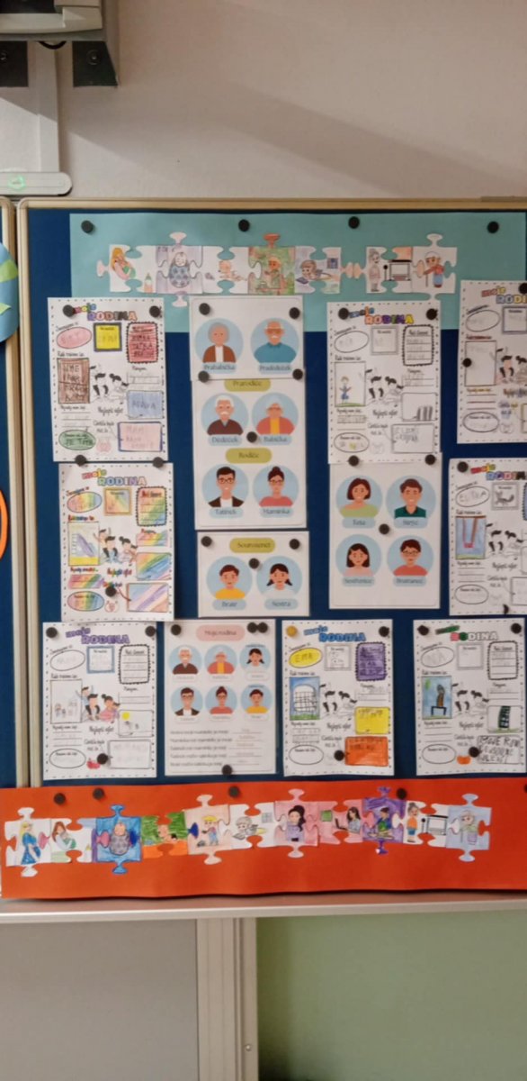 V týdnu od 12.-16.5. jsme si v družince povídali na téma MOJE RODINA. Děti vyprávěly o svých rodinkách,naučily se pojmenovávat členy rodiny,poznávaly vztahy mezi členy.K tomu jim pomohly různé aktivity jako např. doplňovačka,obrázky, rodokmen atd..Ve skupinkách děti tvořily puzzle na téma etapy života v rodině.Děti si vyrobily také domečky z lékařských špachtliček a v závěru týdne je ještě čekala stezka v lesíku-zvířecí rodinky-mláďata.