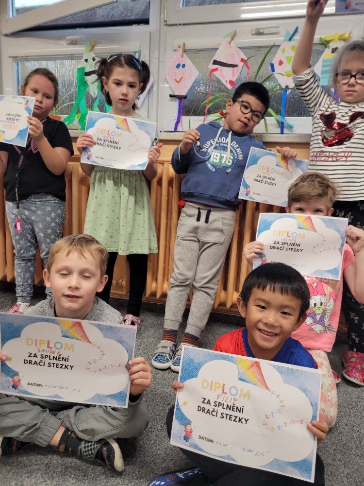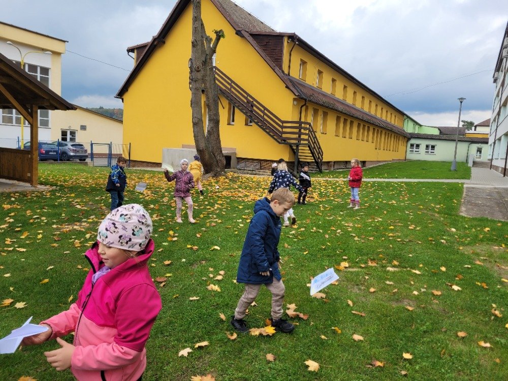 Další říjnový týden provázel děti dráček Papíráček. Děti si poslechly pohádky o Papíráčkovi, naučily se básničku. Vyráběly si svého dráčka z barevných papírů. Skládaly si papírové vlaštovky. Na školní zahradě si užily vlaštovkiádu a dračí stezku.