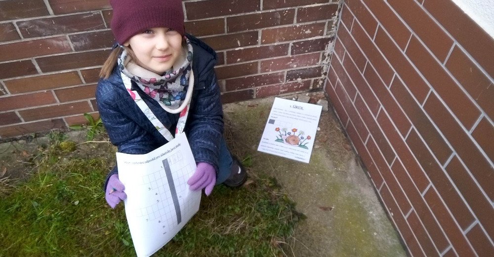 Bylo nás šest....a i tak to bylo prima a užili jsme si..... Paní vychovatelka nám v areálu školní zahrady nachystala v pátek 10.3. první JARNÍ STEZKU s křížovkou. Ano, JARO JE TADY... za pár dní oficiálně.