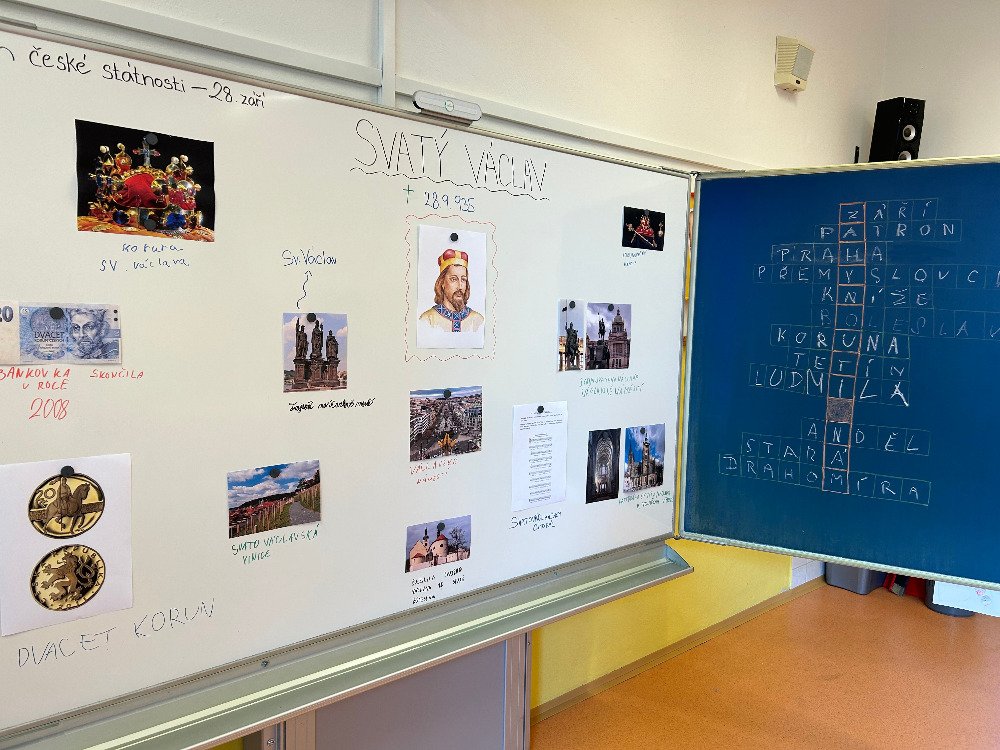 S dětmi jsme si v družince připomněli významný den, 28. září – Den české státnosti. Děti si rozšířily znalosti o svatém Václavovi. Společně jsme četli naučné texty, plnili kvízy a pracovní listy. Na tabuli jsme si vytvořili "lapbook". V závěru týdne si děti prověřily své nasbírané znalosti na vědomostní stezce, která měla 15 stanovišť.