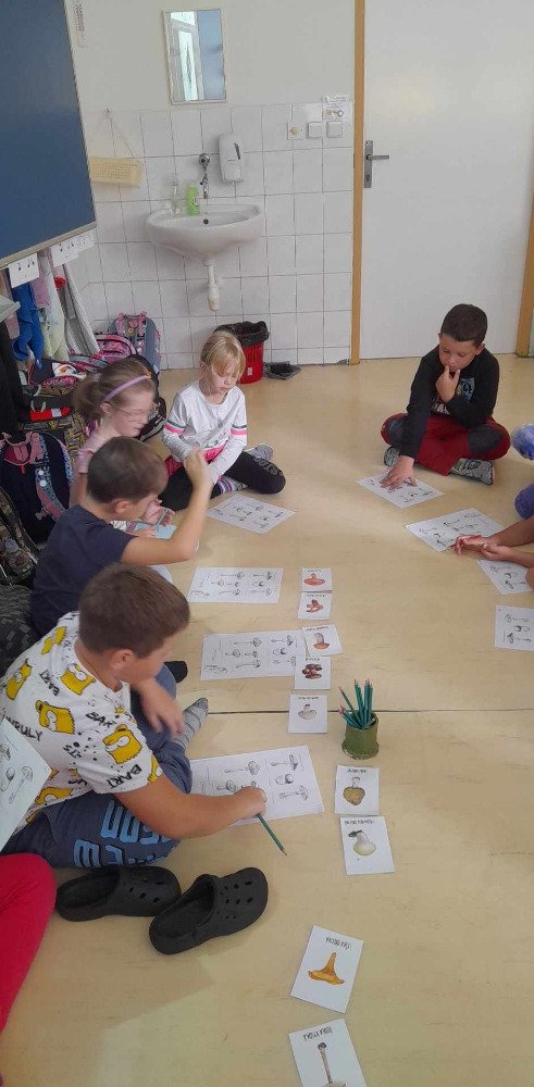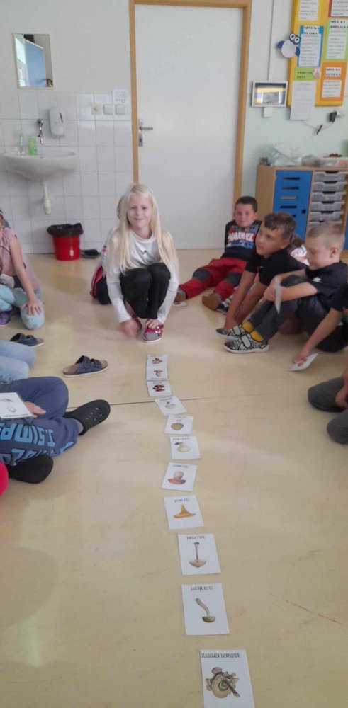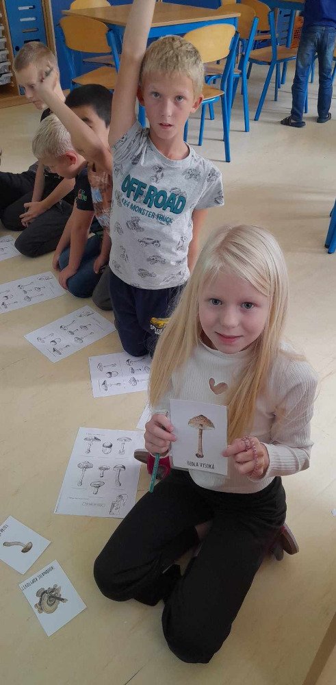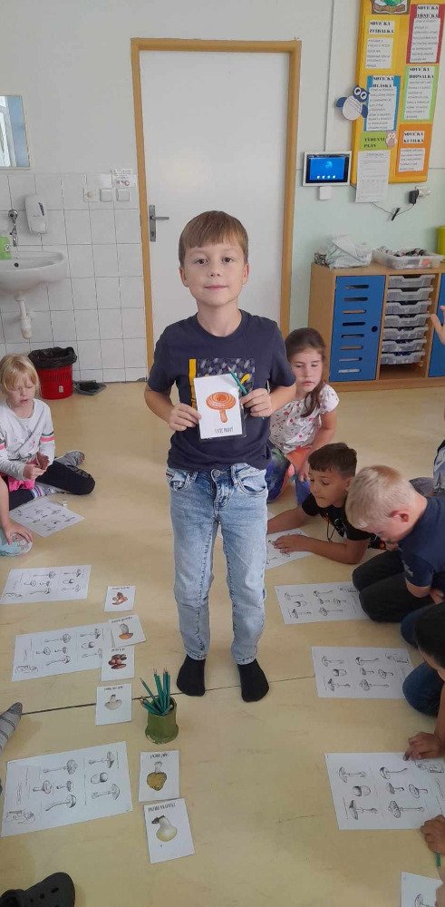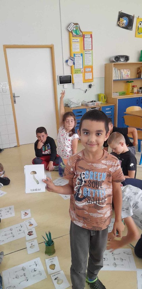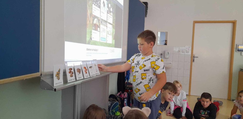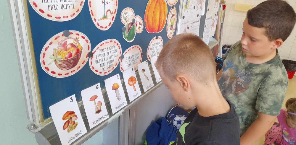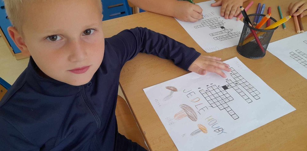 V týdnu od 2.10. - 6.10. poznávaly děti v družince houby. Nejprve jsme si pustili na interaktivní tabuli krátké povídání o tomto tématu. Potom děti vyplňovaly pracovní list, kde dle atlasu a kartiček dopisovaly názvy hub. Děti také luštily "houbovou křížovku" a poté pracovaly dál podle pokynů v tajence. V lese si potom vyzkoušely co se naučily, přiřazovaly názvy a třídily obrázky hub. Ač jsme se snažili, nepodařilo se nám žádné opravdové houby najít. Zkusíme to někdy příště. Na závěr děti získaly medaili houbaře a malou sladkou odměnu .