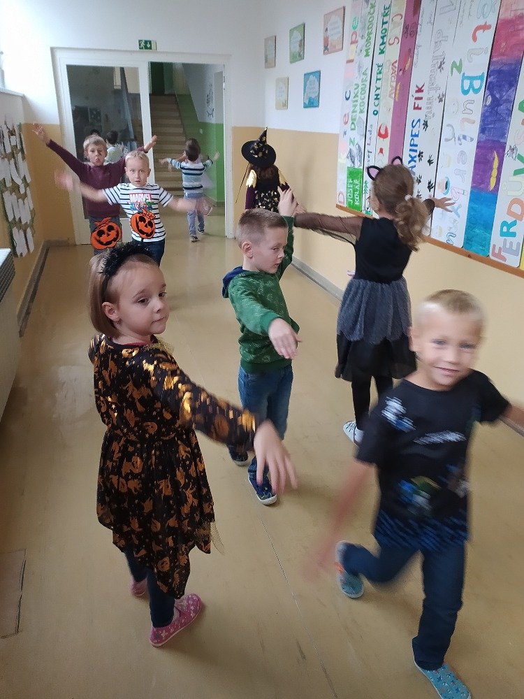 V týdnu od 30.10.2023 do 3.11.2023 byl pro děti v družince připraven Halloweenský týden. Děti se naučily básničku Duch, říkanku s pohybem Strašidla, poslouchaly pohádky o dušičkových postavách, vyrobily si z vaty "'ducháčka"'. Také si po škole prošly halloweenskou stezku, na které plnily zábavné naučné úkoly. Vyvrcholením celého týdne bylo halloweenské odpoledne. Děti si vyrobily lucerničku a zápich dýně do květináče. V tomto odpoledni si děti v převlecích zatancovaly a účastnily se zábavných soutěží. Děti za odměnu dostaly diplom, medaili a halloweenský bonbón.