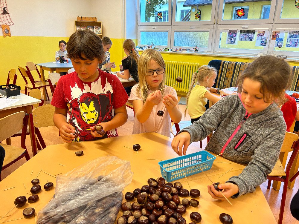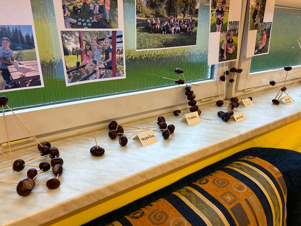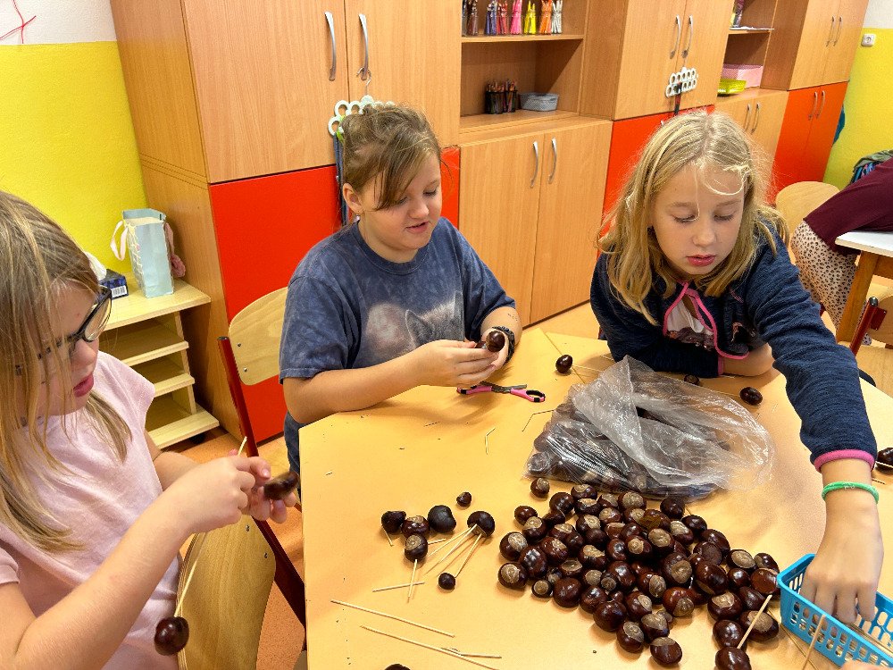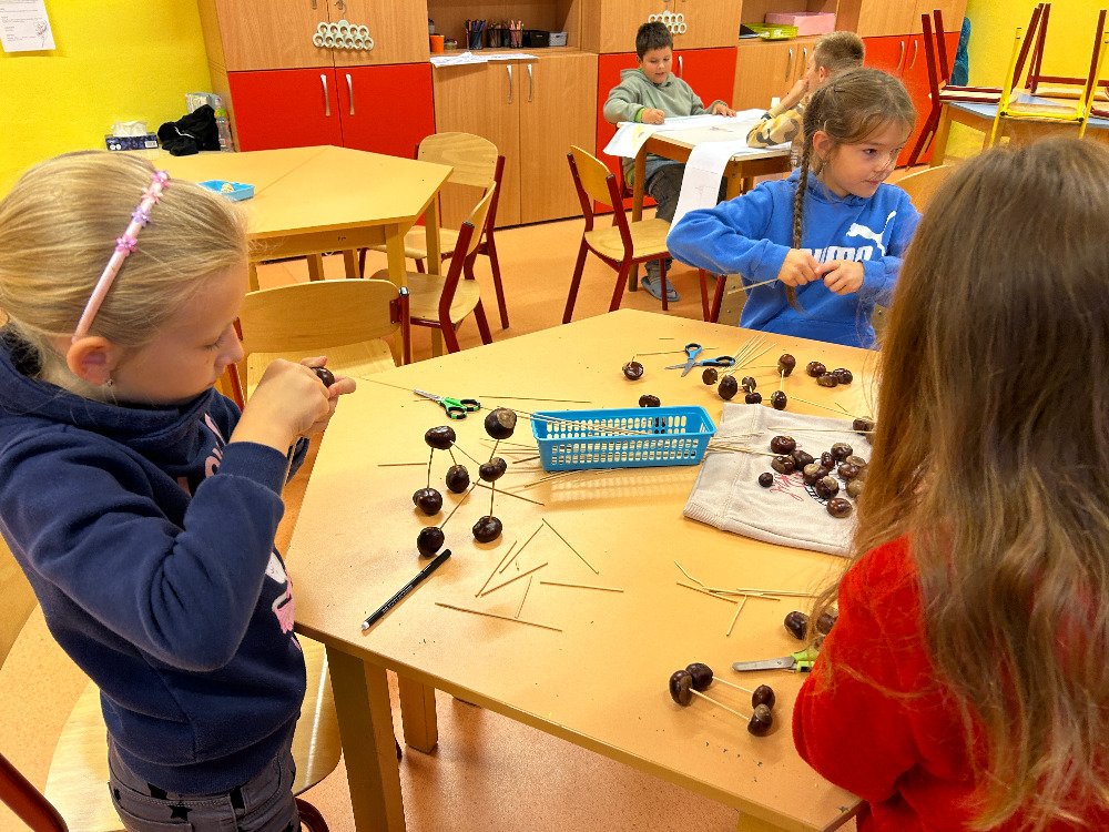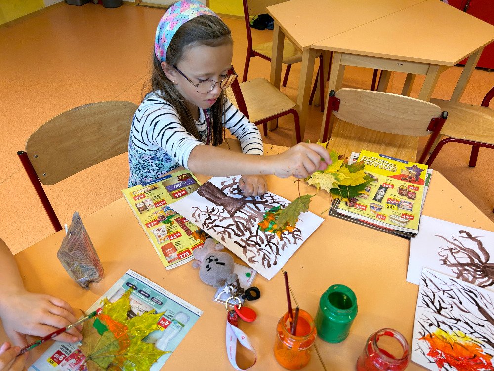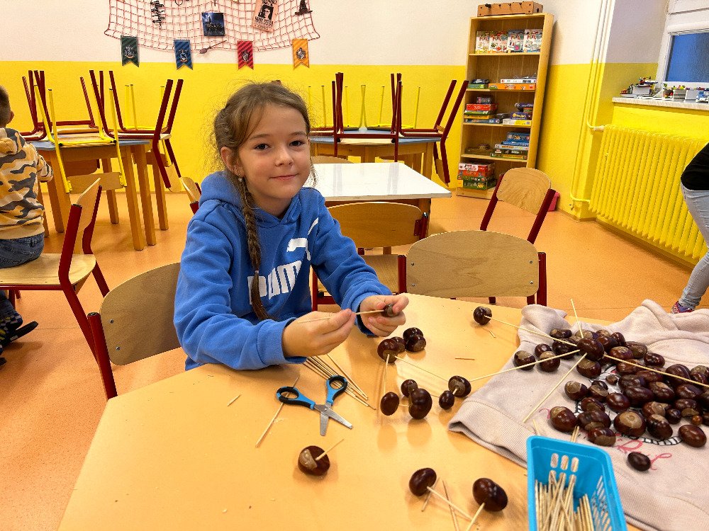 V týdnu od 16. 10. – 20. 10. jsme s dětmi poznávali stromy a jejich plody. Povídali jsme si o tom, jaké druhy stromů u nás rostou, k čemu člověk využívá dřevo, jak se stromy mění v rámci ročních období. K tomuto tématu nám posloužily obrázky stromů a plodů. Děti třídily stromy na listnaté a jehličnaté. Také přiřazovaly k jednotlivým stromům jejich plody. Znalosti o stromech jsme uplatnili při vycházkách, kde jsme si jednotlivé stromy ukazovali a sbírali jejich plody. Kaštany děti použily k tvoření a nasbírané javorové listy obtiskovaly a malovaly strom. V pracovním listě psaly názvy stromů a plodů, které i vybarvovaly. Tematický týden o stromech a plodech jsme zakončili stezkou v lese, kterou děti úspěšně zvládly.