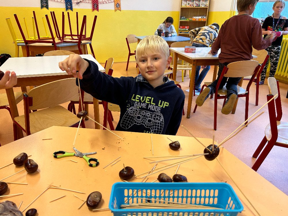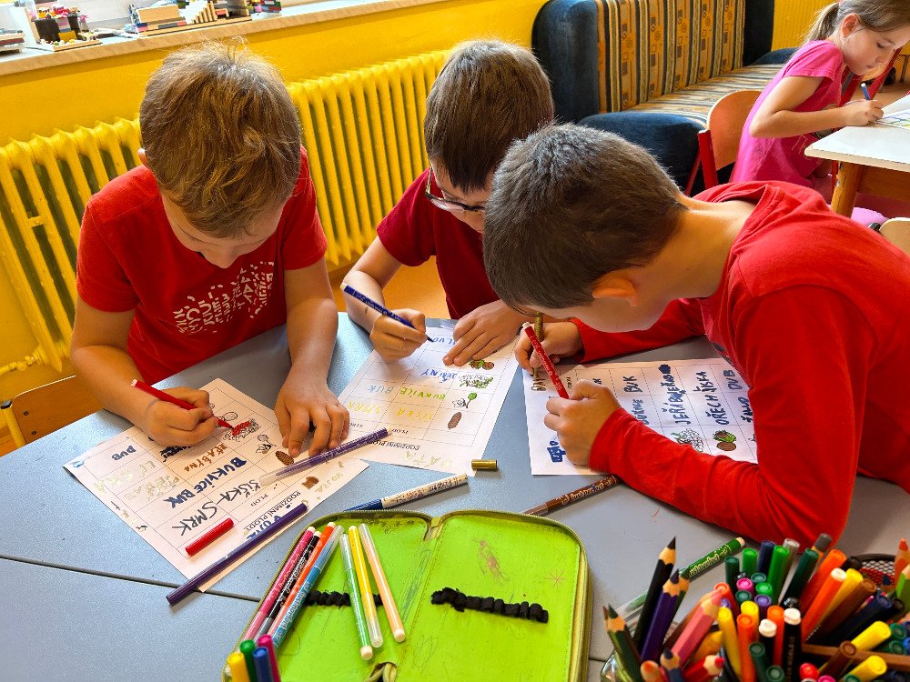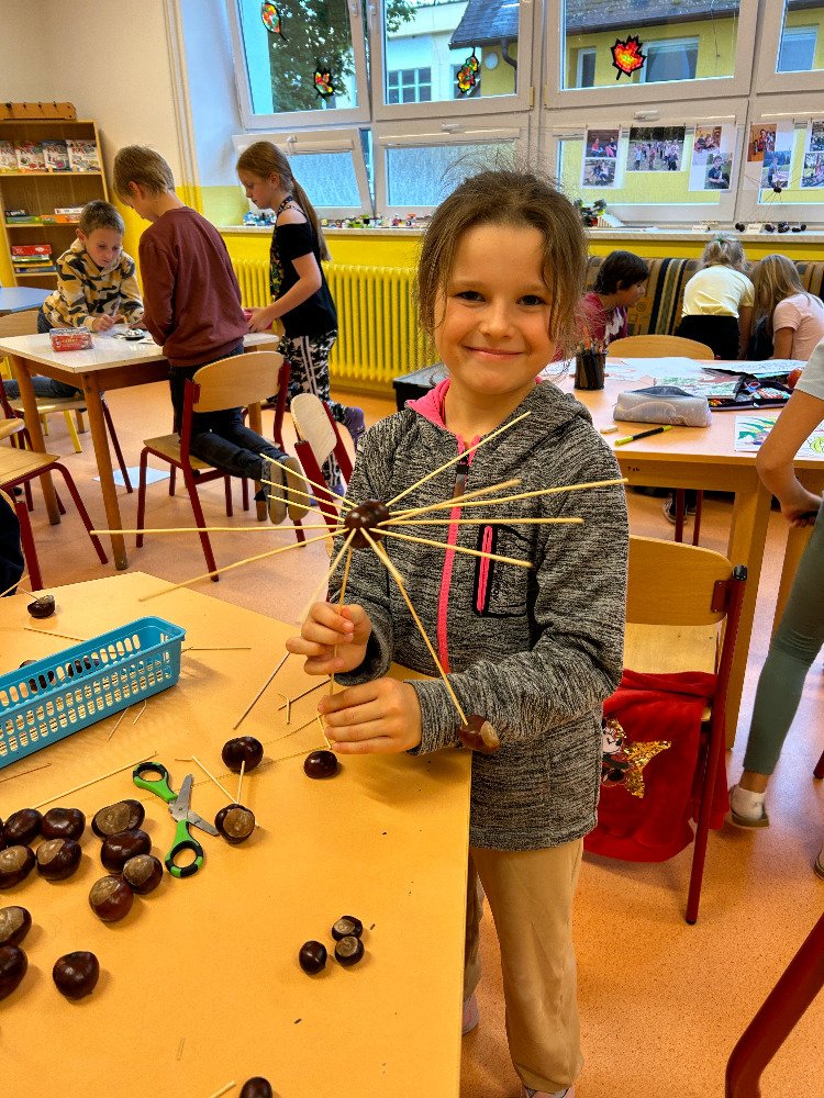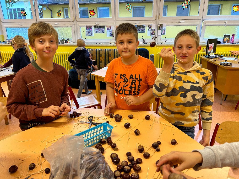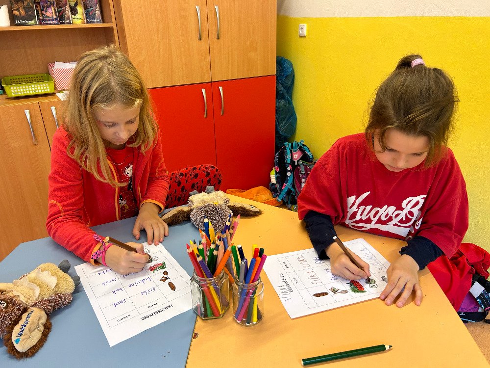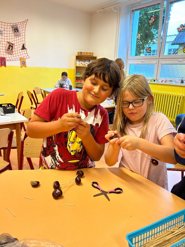 V týdnu od 16. 10. – 20. 10. jsme s dětmi poznávali stromy a jejich plody. Povídali jsme si o tom, jaké druhy stromů u nás rostou, k čemu člověk využívá dřevo, jak se stromy mění v rámci ročních období. K tomuto tématu nám posloužily obrázky stromů a plodů. Děti třídily stromy na listnaté a jehličnaté. Také přiřazovaly k jednotlivým stromům jejich plody. Znalosti o stromech jsme uplatnili při vycházkách, kde jsme si jednotlivé stromy ukazovali a sbírali jejich plody. Kaštany děti použily k tvoření a nasbírané javorové listy obtiskovaly a malovaly strom. V pracovním listě psaly názvy stromů a plodů, které i vybarvovaly. Tematický týden o stromech a plodech jsme zakončili stezkou v lese, kterou děti úspěšně zvládly.